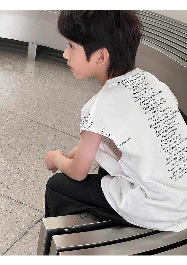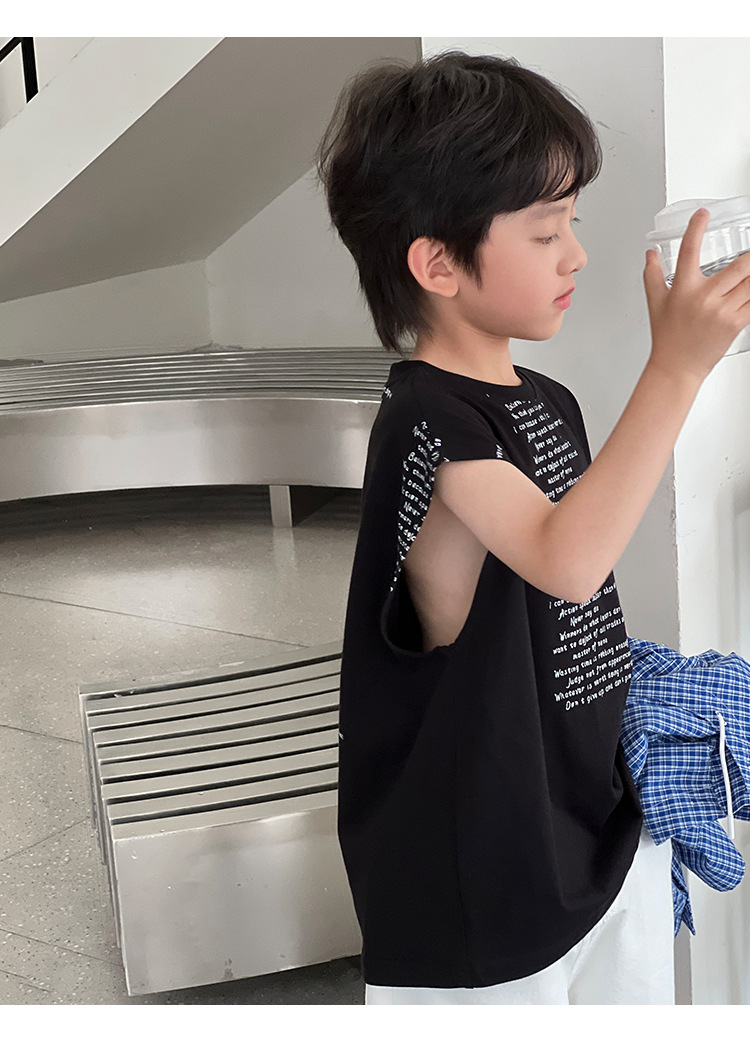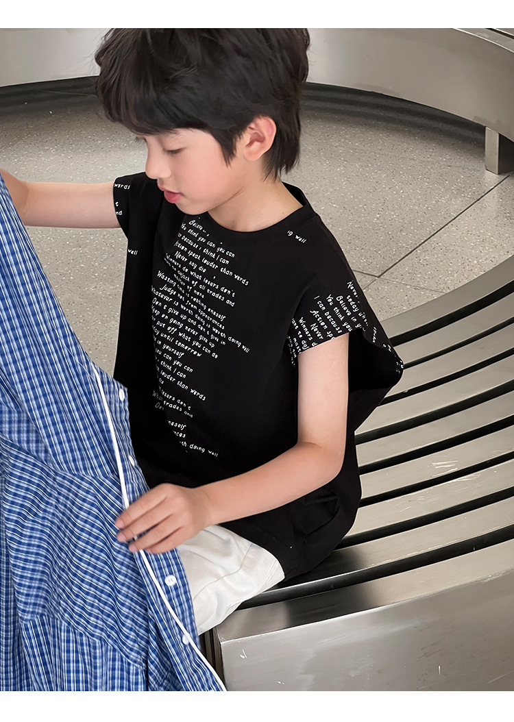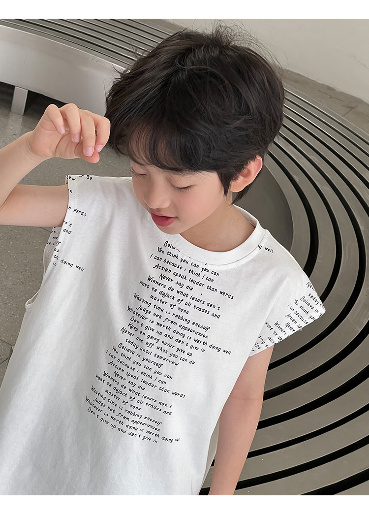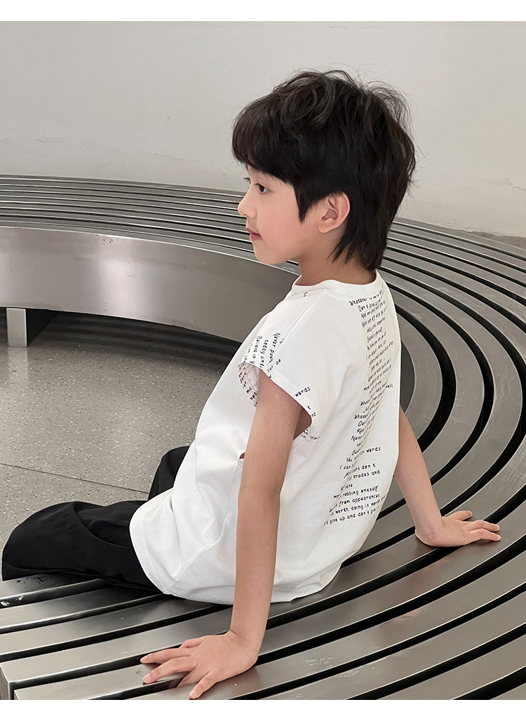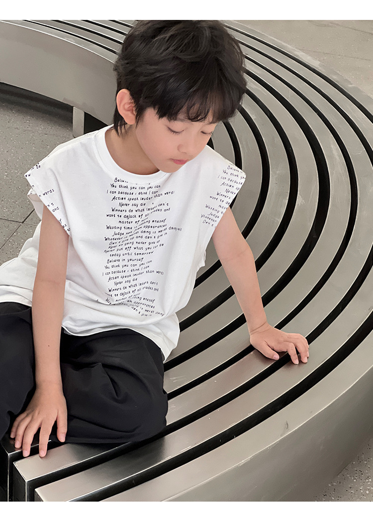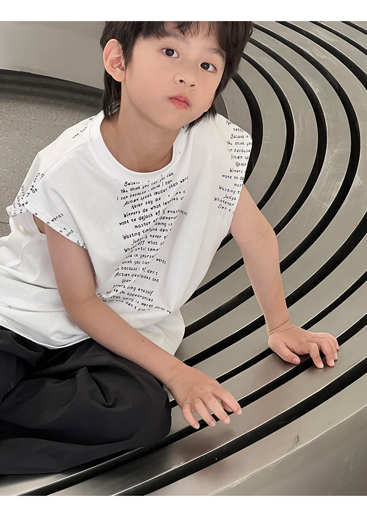 2025 여름 어린이 새로운 독특한 편지 인쇄 디자인 캐주얼 루즈 조끼 매일 라운드 넥 탑
