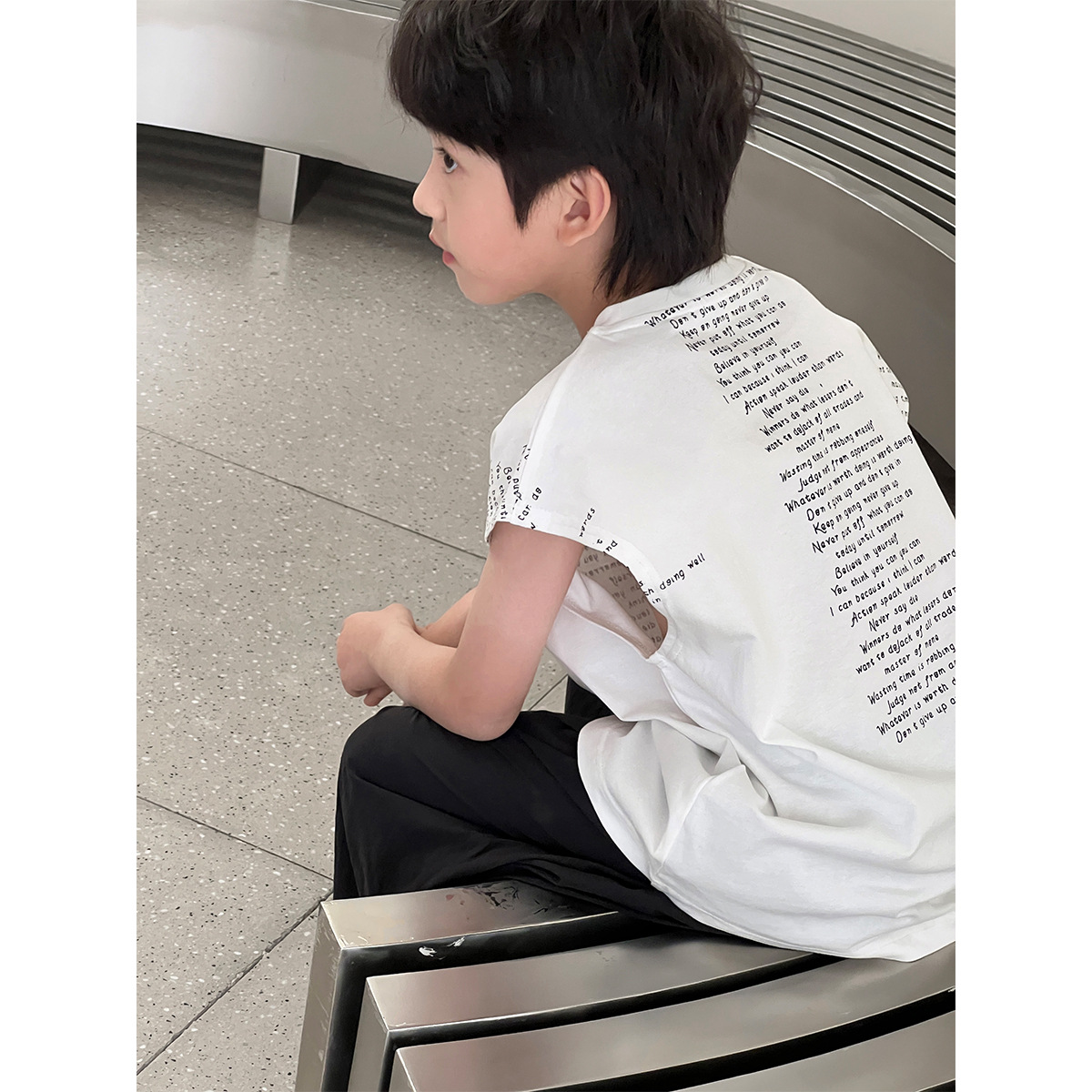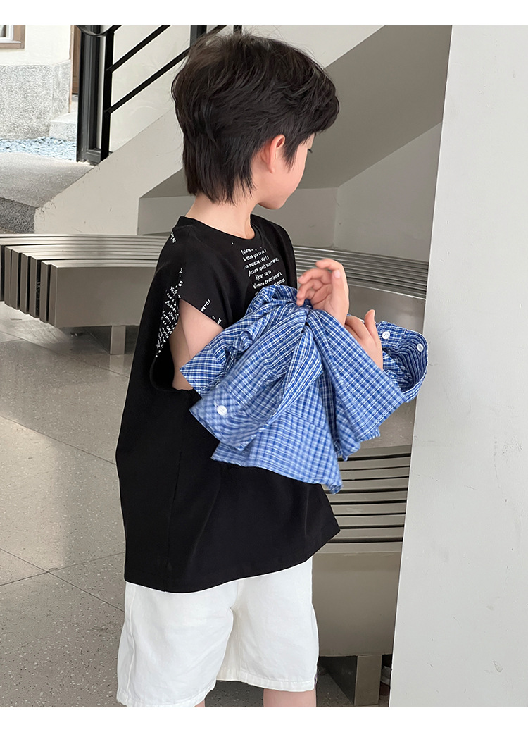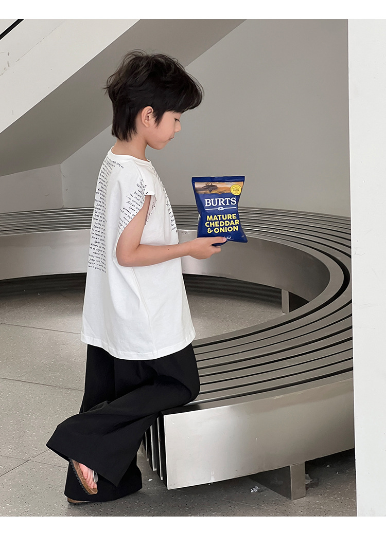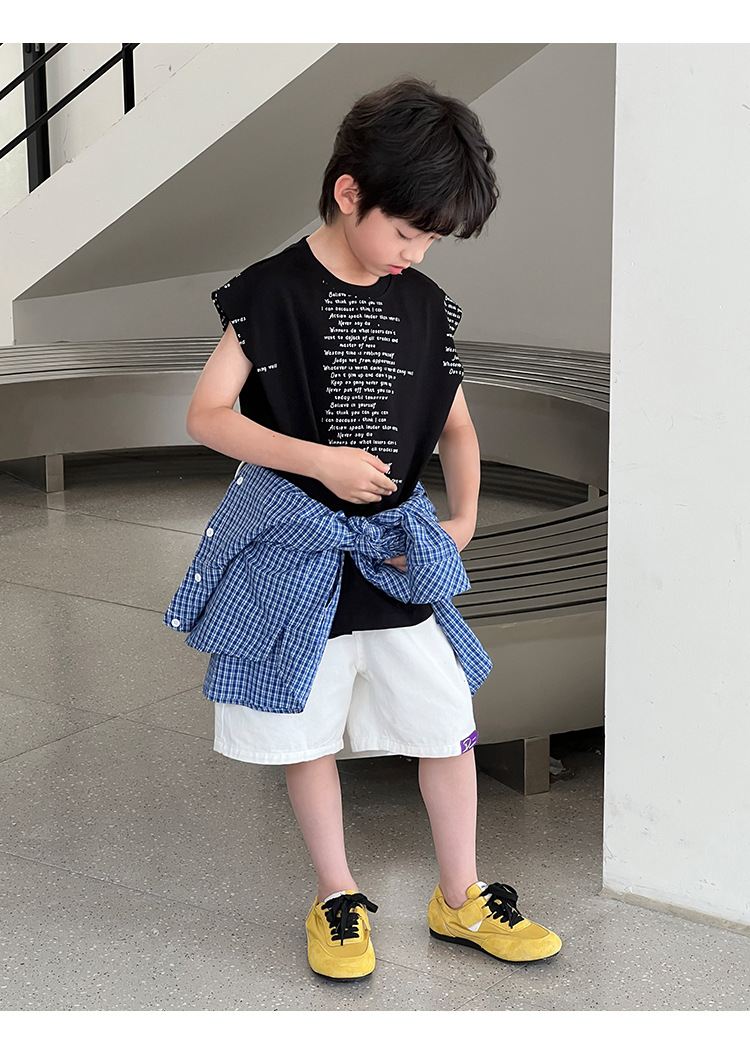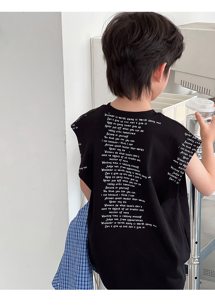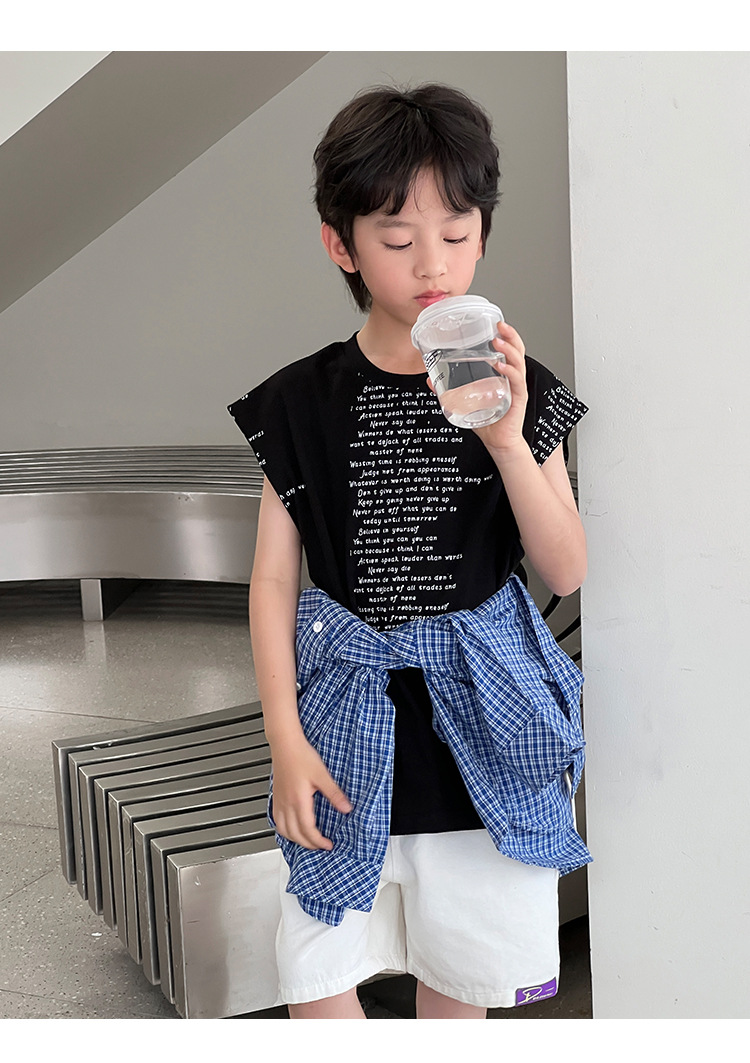 2025 여름 어린이 새로운 독특한 편지 인쇄 디자인 캐주얼 루즈 조끼 매일 라운드 넥 탑