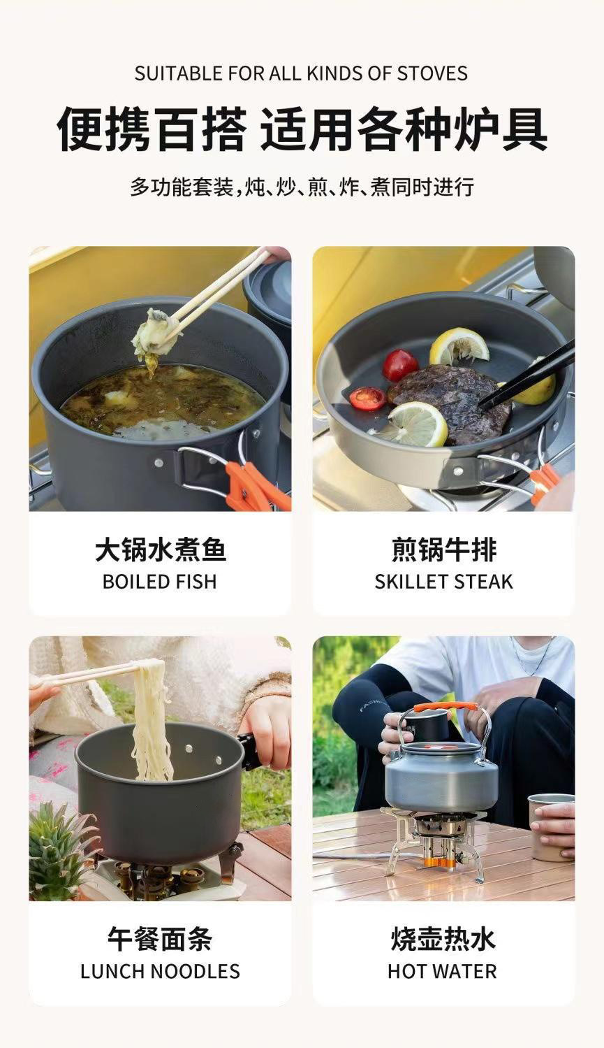 야외 조리기구 세트 조리기구 식기 세트 냄비 주전자 프라이팬 휴대용 야외 캠핑 카드 스토브 특수 냄비스토어 가기