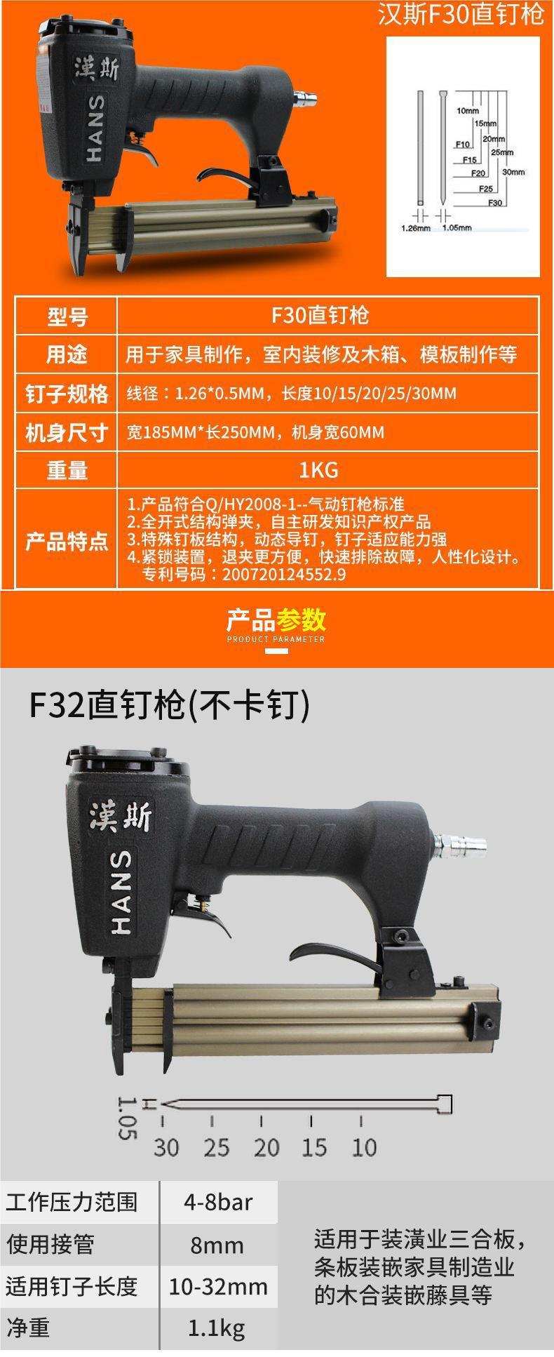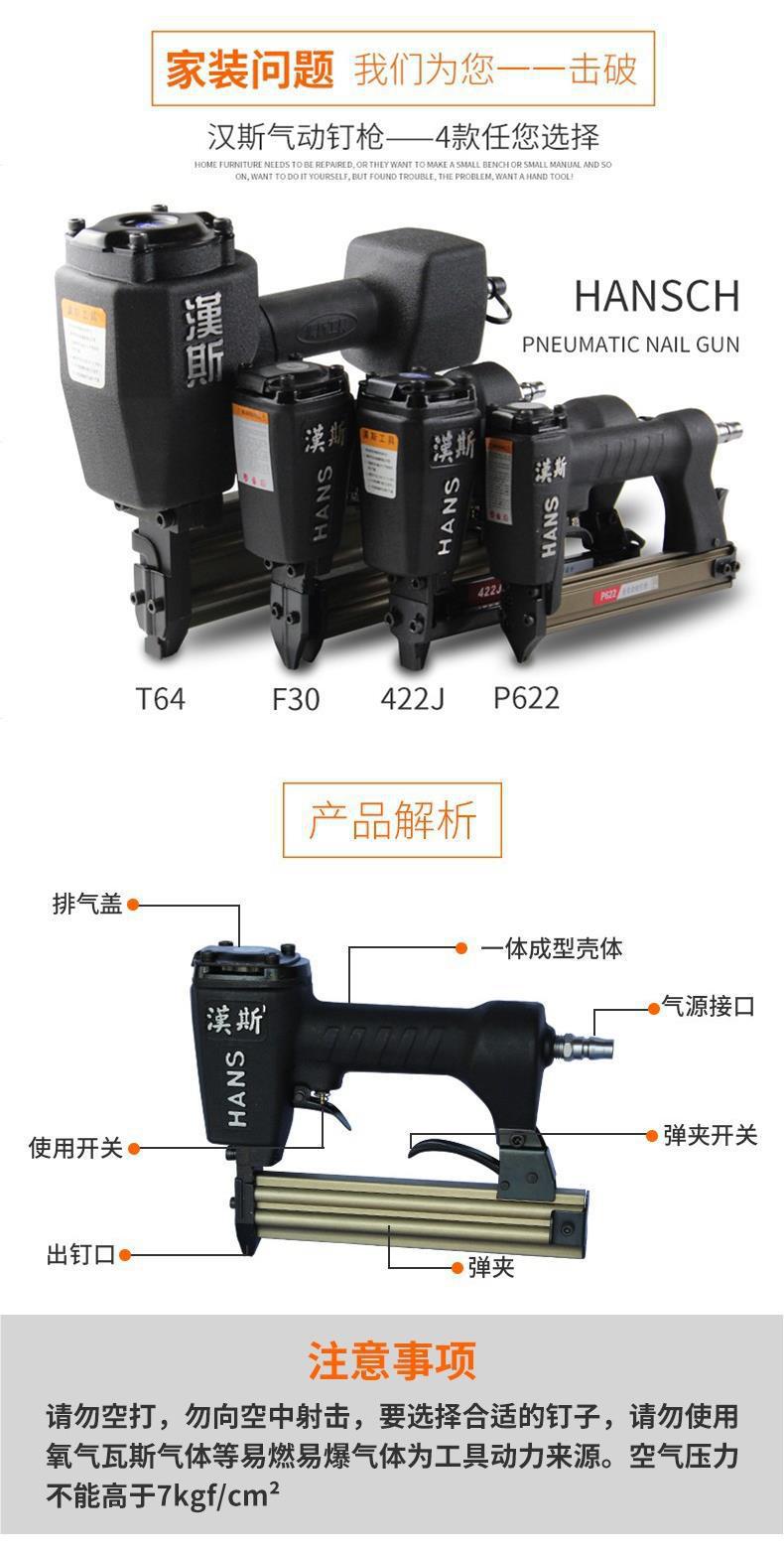Hans F30 공압 네일건, 끈적임 없는 직선 네일건, 목공 1013 야드 네일건, 422 에어 네일건, ST64 스틸 네일건