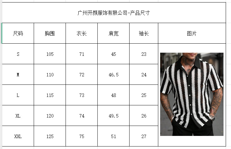 2025 크로스 보더 핫 세일 남성 흑백 스트라이프 할로우 짧은 소매 셔츠 매일 캐주얼 탑스토어 가기