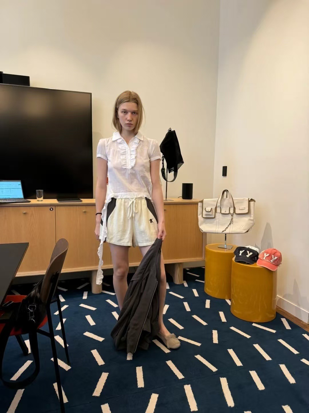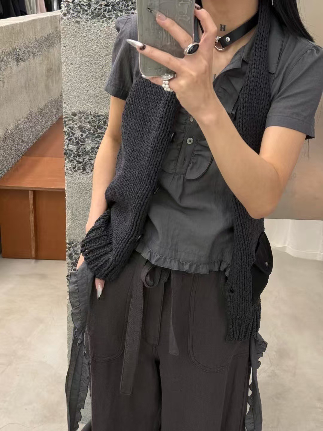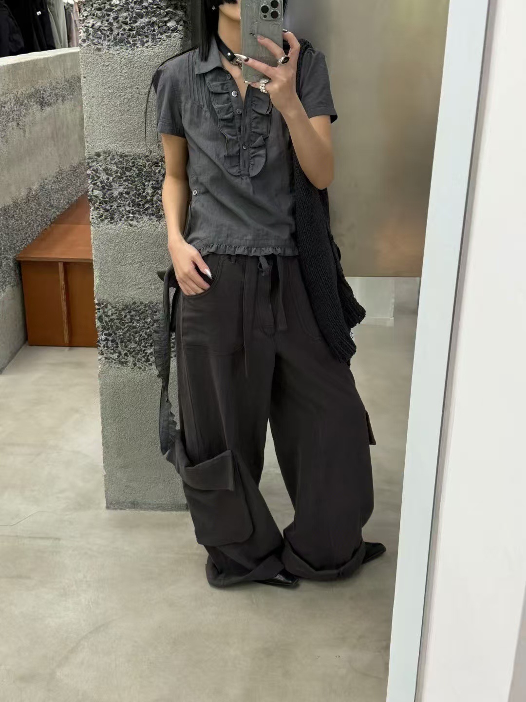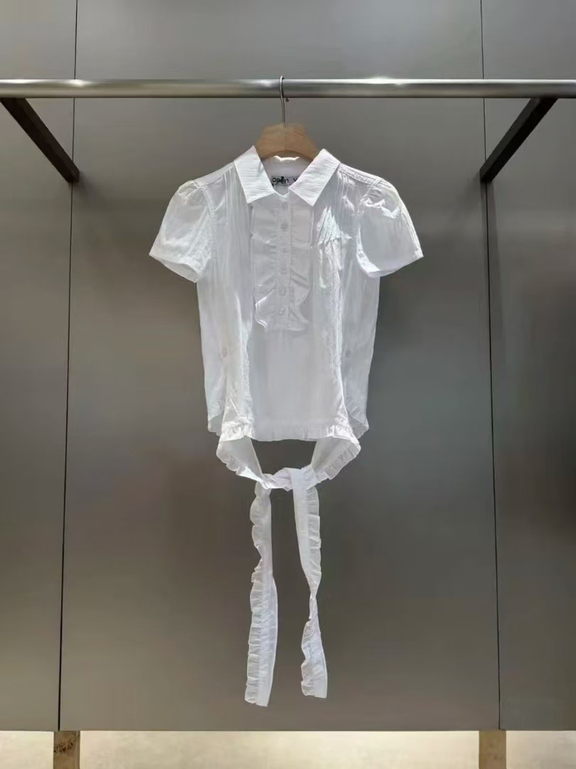 YB 오픈 버전은 오리지널 버전과 비교할 수 있습니다. OPENYY 버섯 모양 스트리머 라펠 플리츠 반팔 셔츠 여성 25 봄 여름 신상스토어 가기
