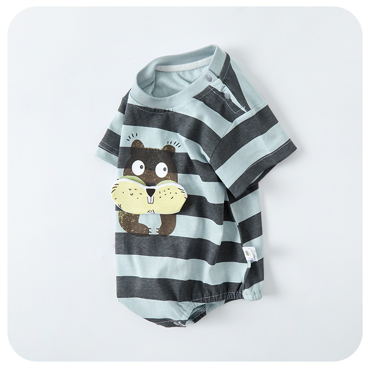 아기의 넓은 줄무늬 만화 가방 뚱뚱한 옷 2025 여름 새로운 신생아 귀여운 토끼 옷 외출 아기 등반 옷스토어 가기
