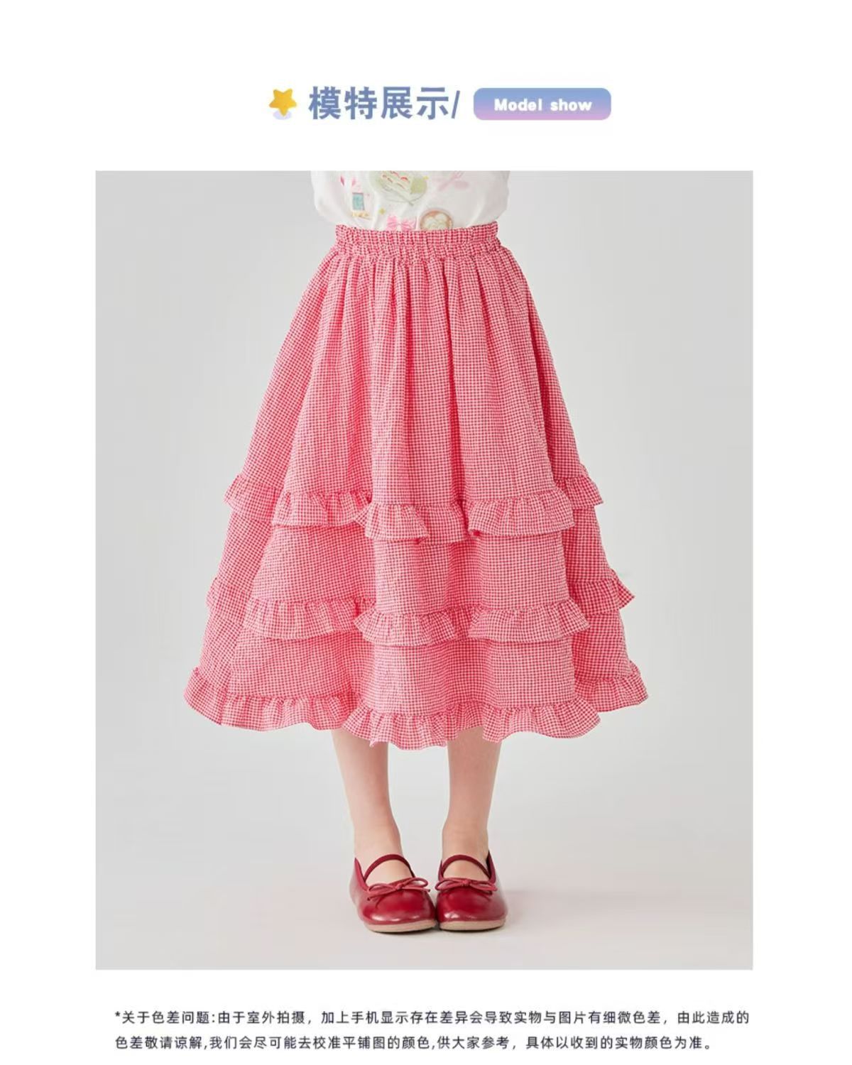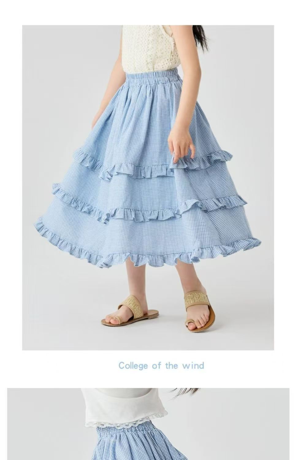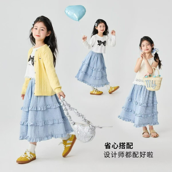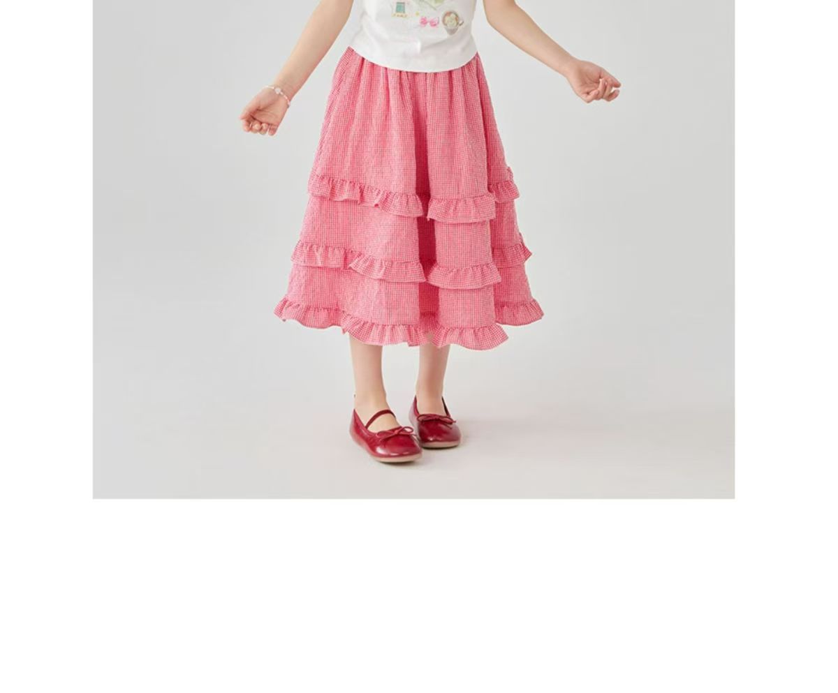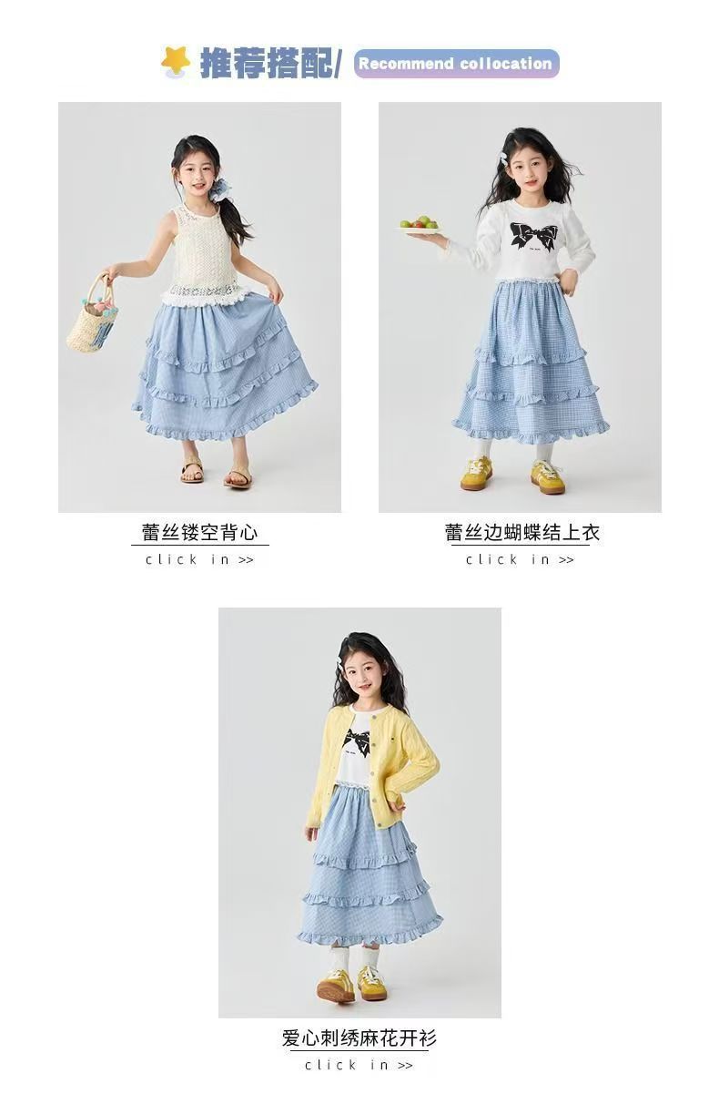 소녀 스커트 봄과 여름 새로운 어린이 러플 격자 무늬 스커트 한국 중간 길이 소녀의 서양식 케이크 스커트스토어 가기