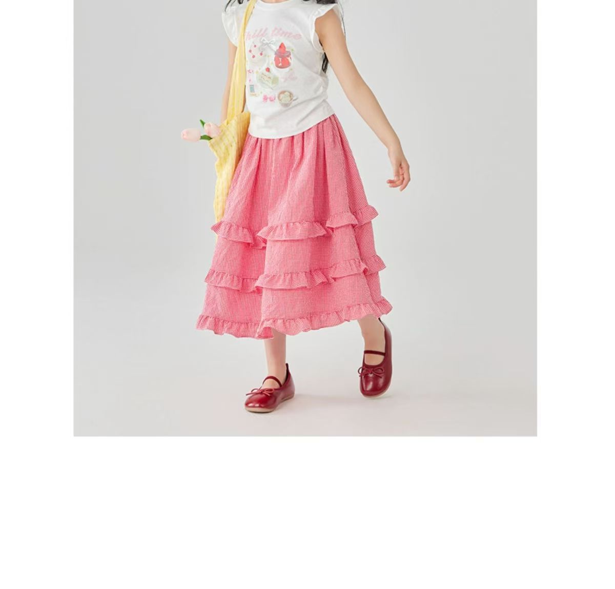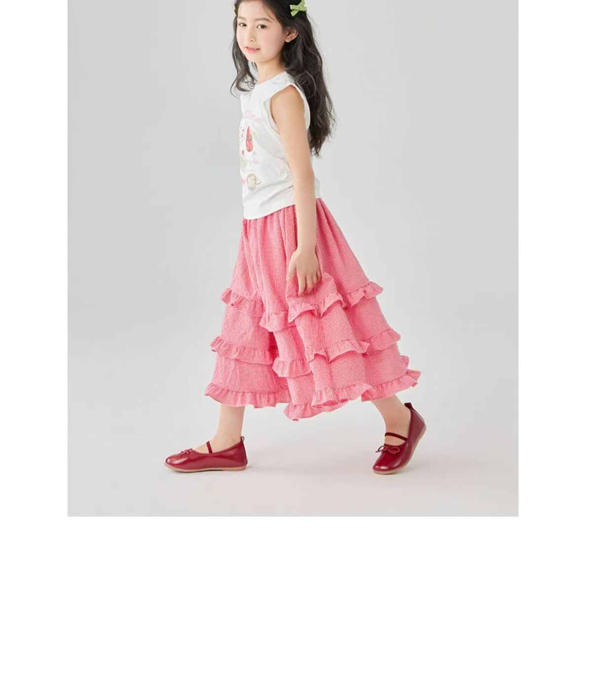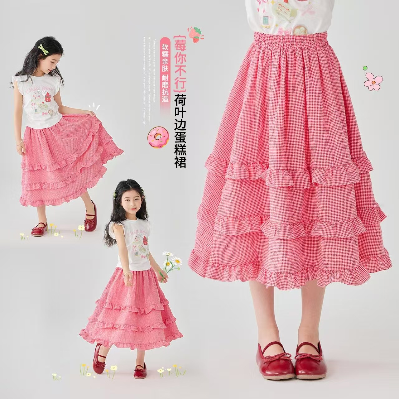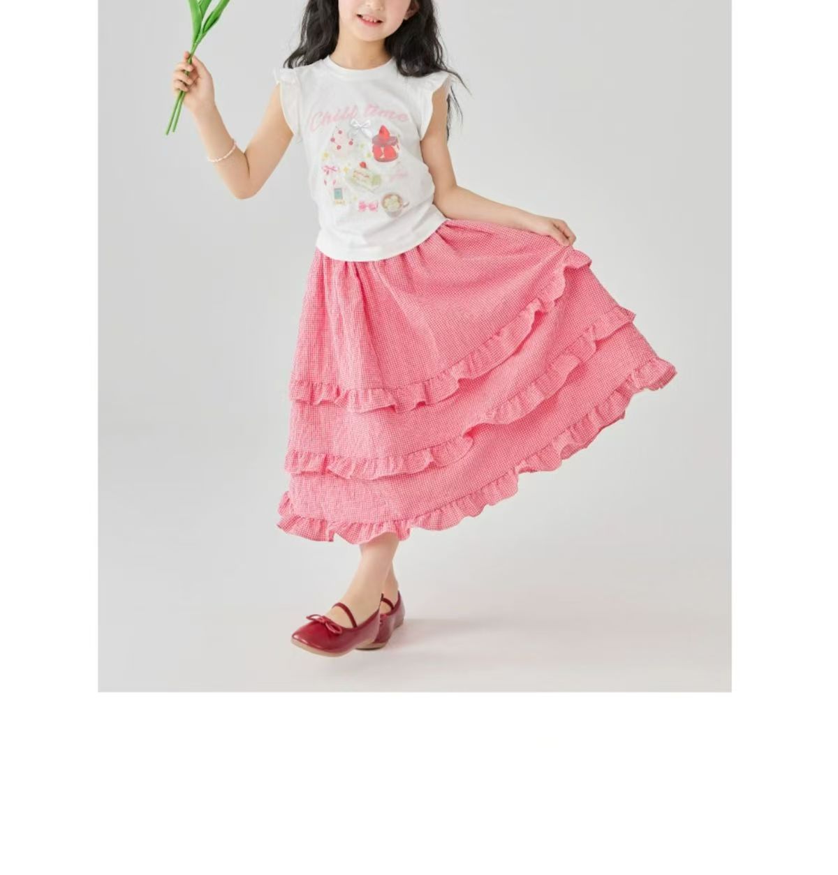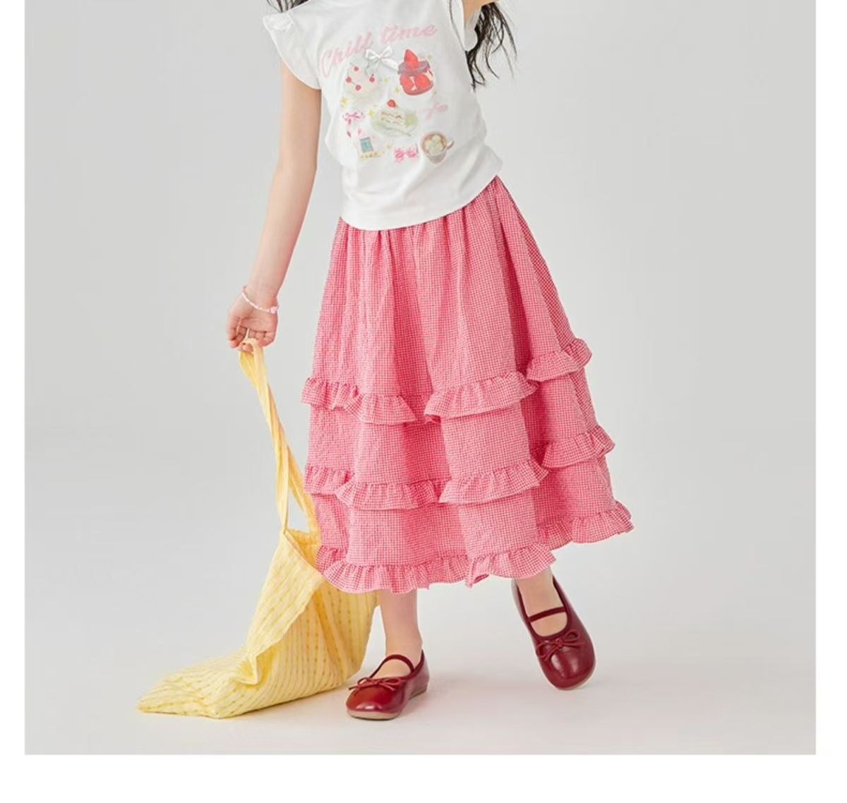 소녀 스커트 봄과 여름 새로운 어린이 러플 격자 무늬 스커트 한국 중간 길이 소녀의 서양식 케이크 스커트스토어 가기