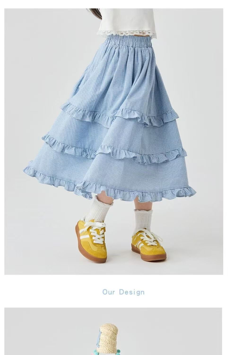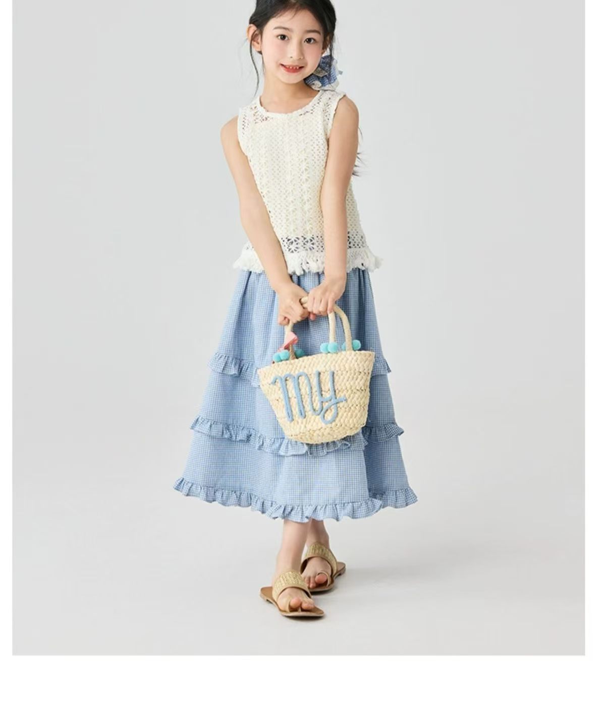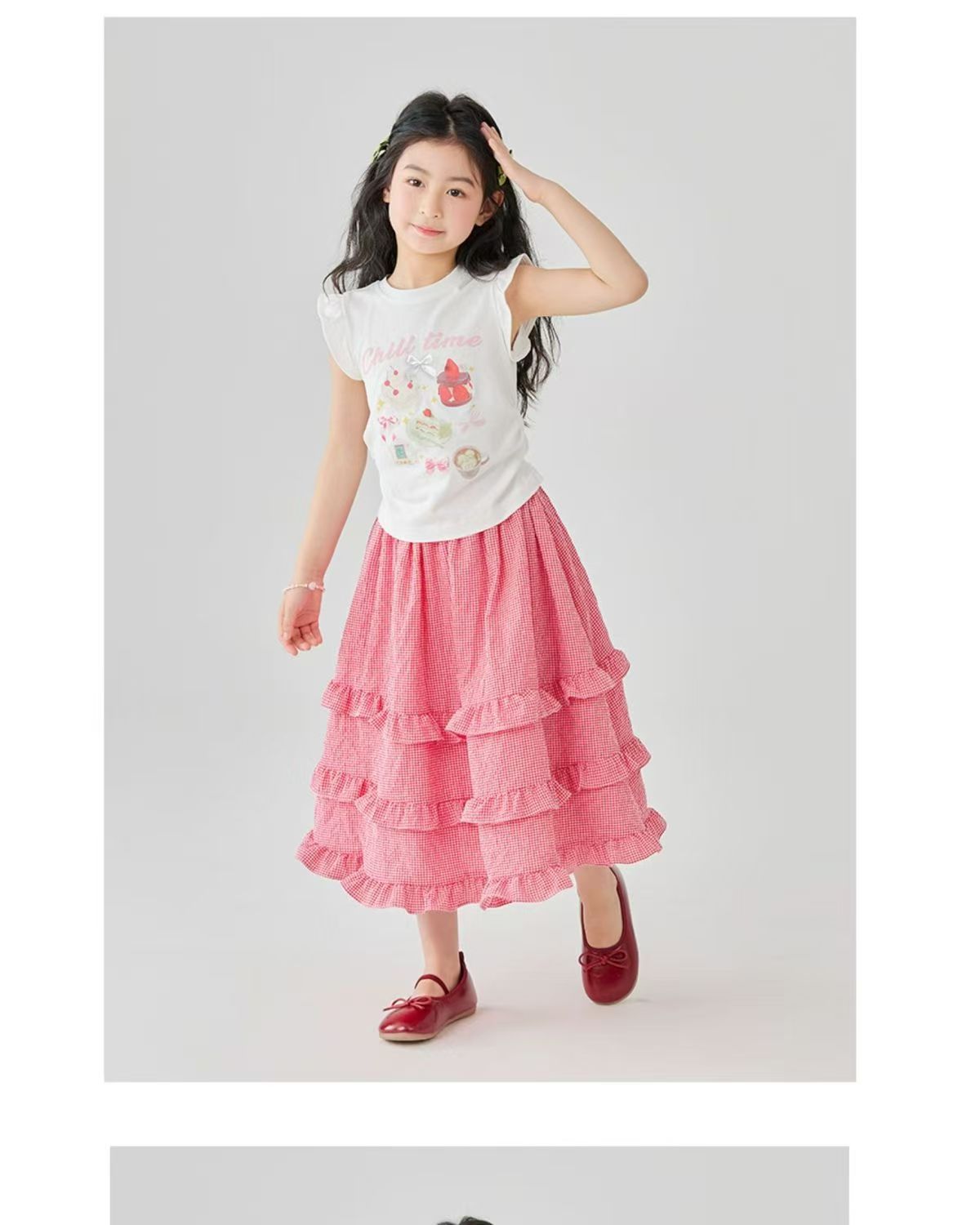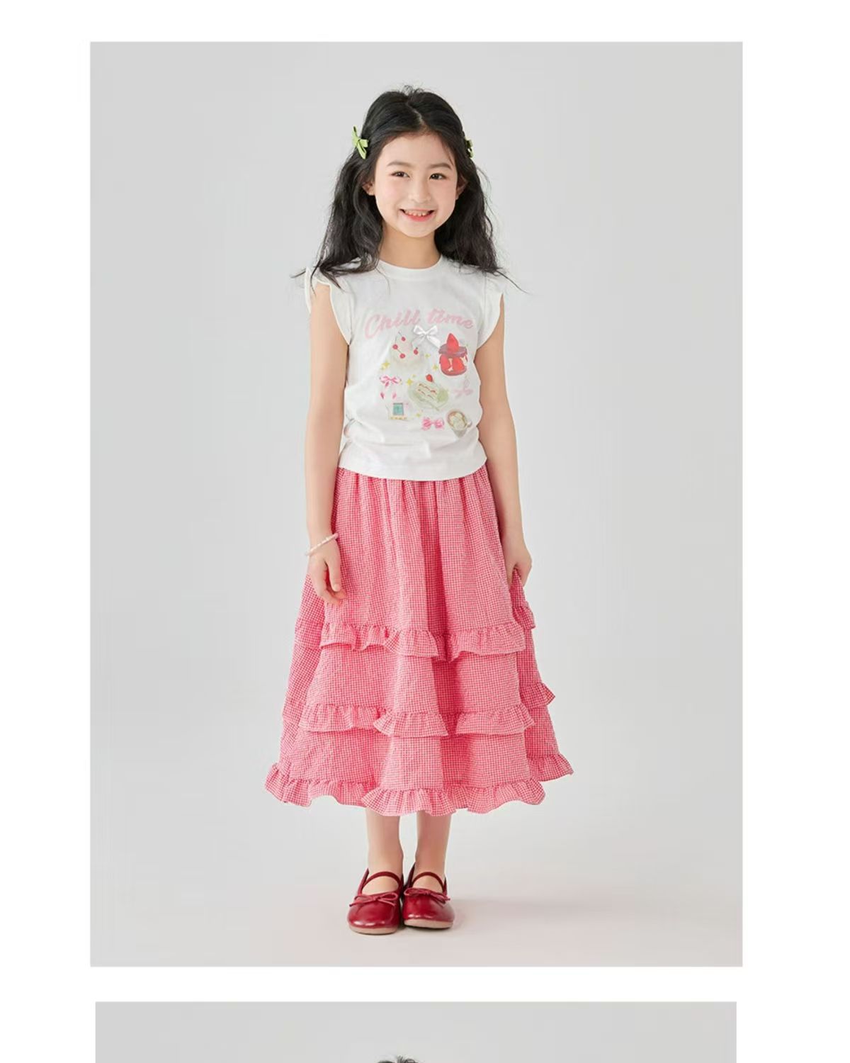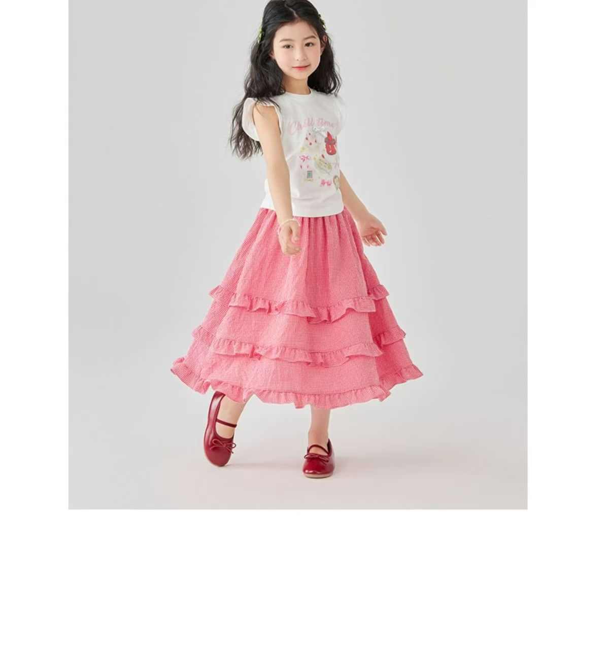 소녀 스커트 봄과 여름 새로운 어린이 러플 격자 무늬 스커트 한국 중간 길이 소녀의 서양식 케이크 스커트스토어 가기