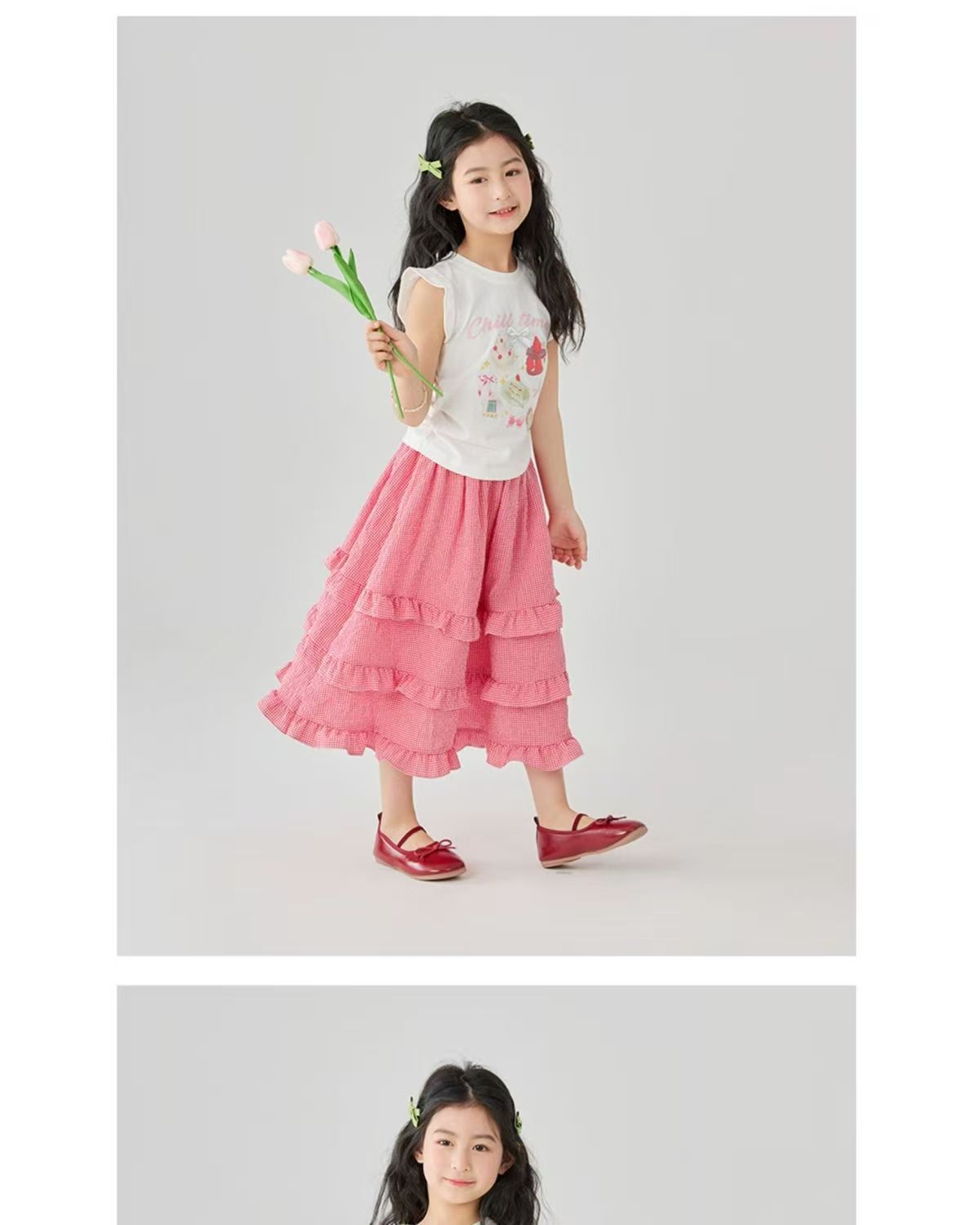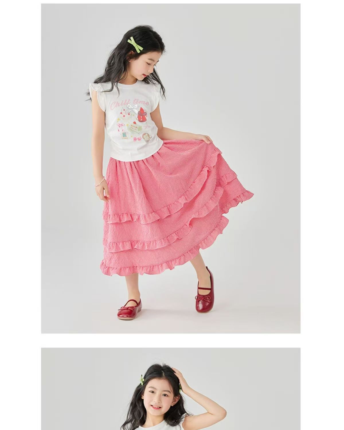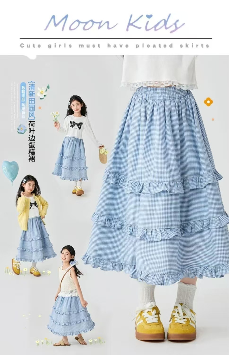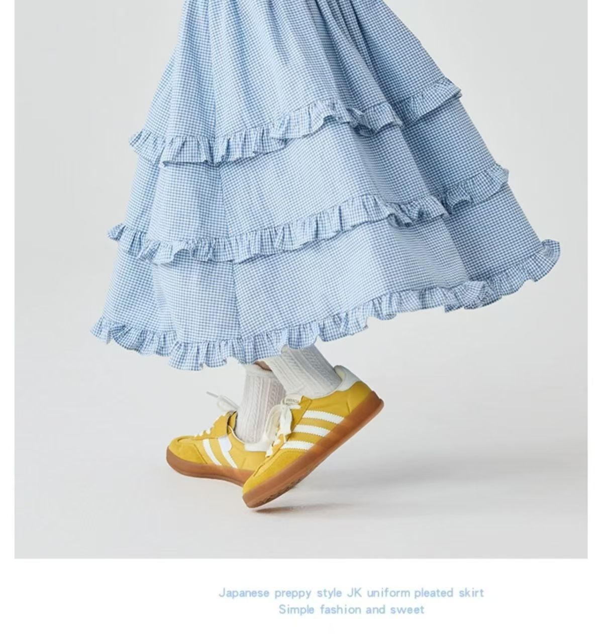 소녀 스커트 봄과 여름 새로운 어린이 러플 격자 무늬 스커트 한국 중간 길이 소녀의 서양식 케이크 스커트스토어 가기