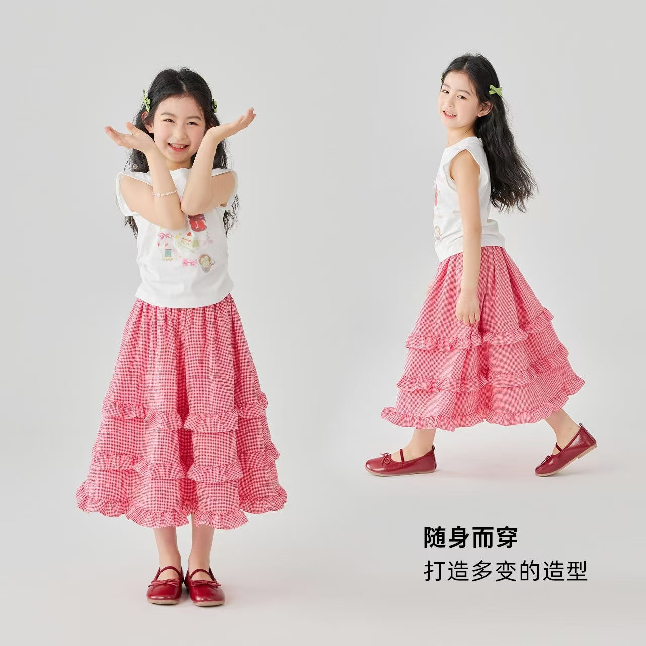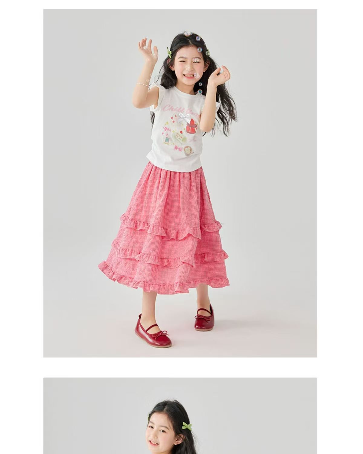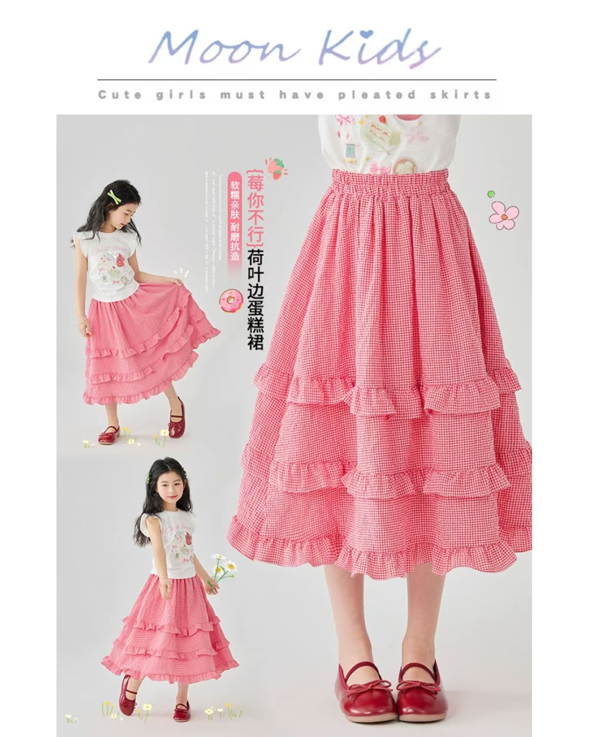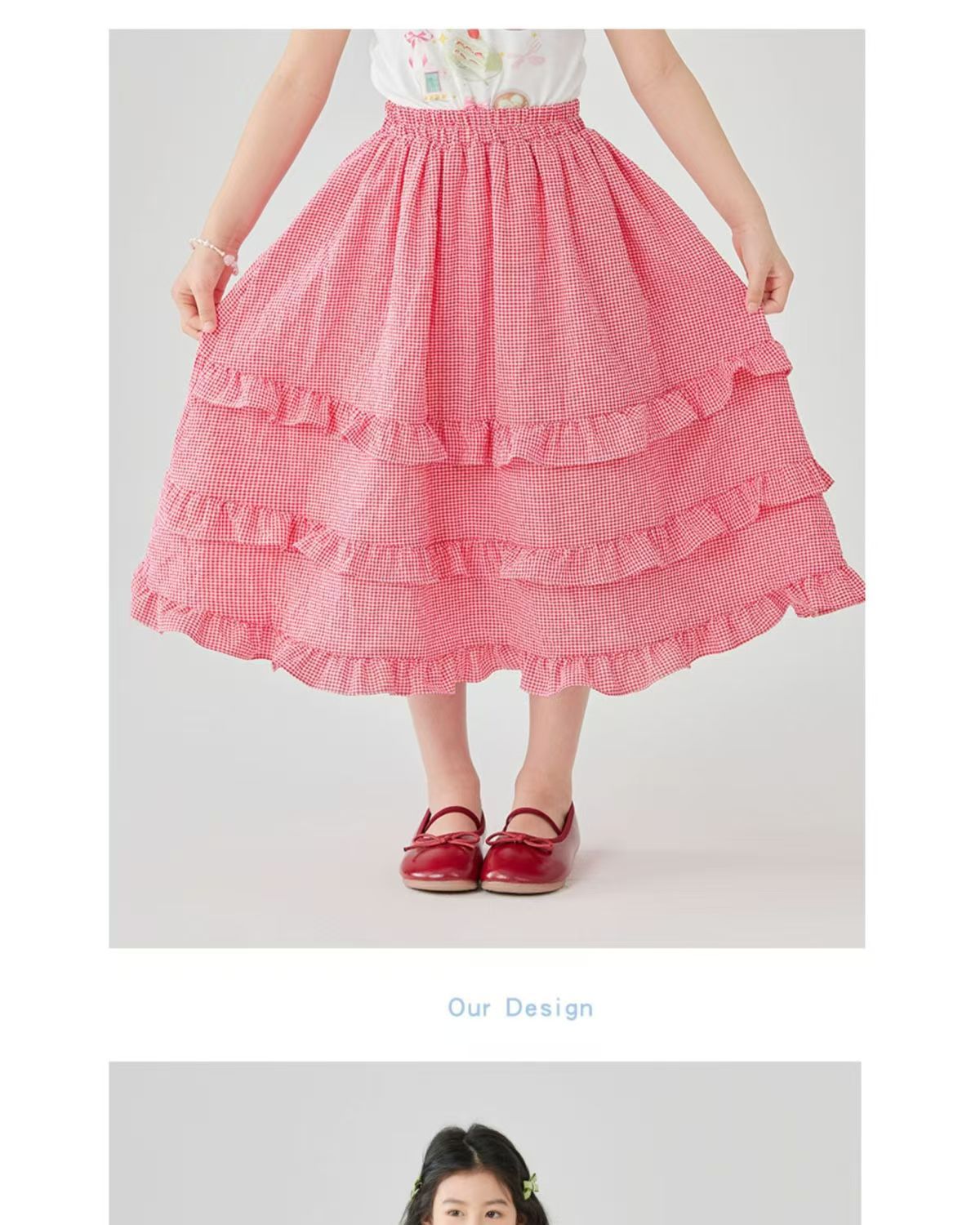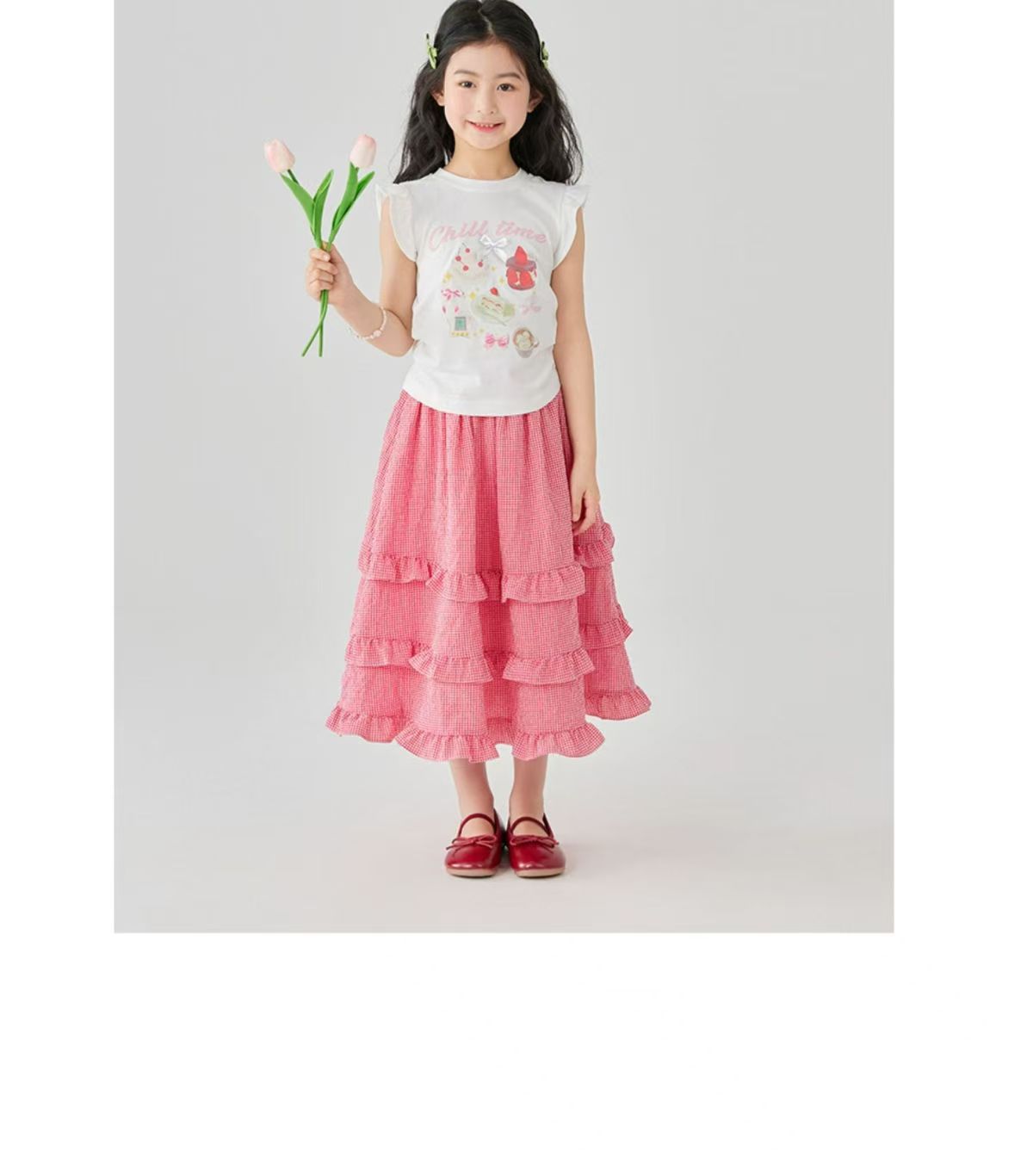 소녀 스커트 봄과 여름 새로운 어린이 러플 격자 무늬 스커트 한국 중간 길이 소녀의 서양식 케이크 스커트스토어 가기