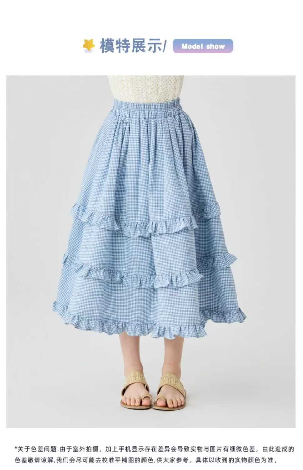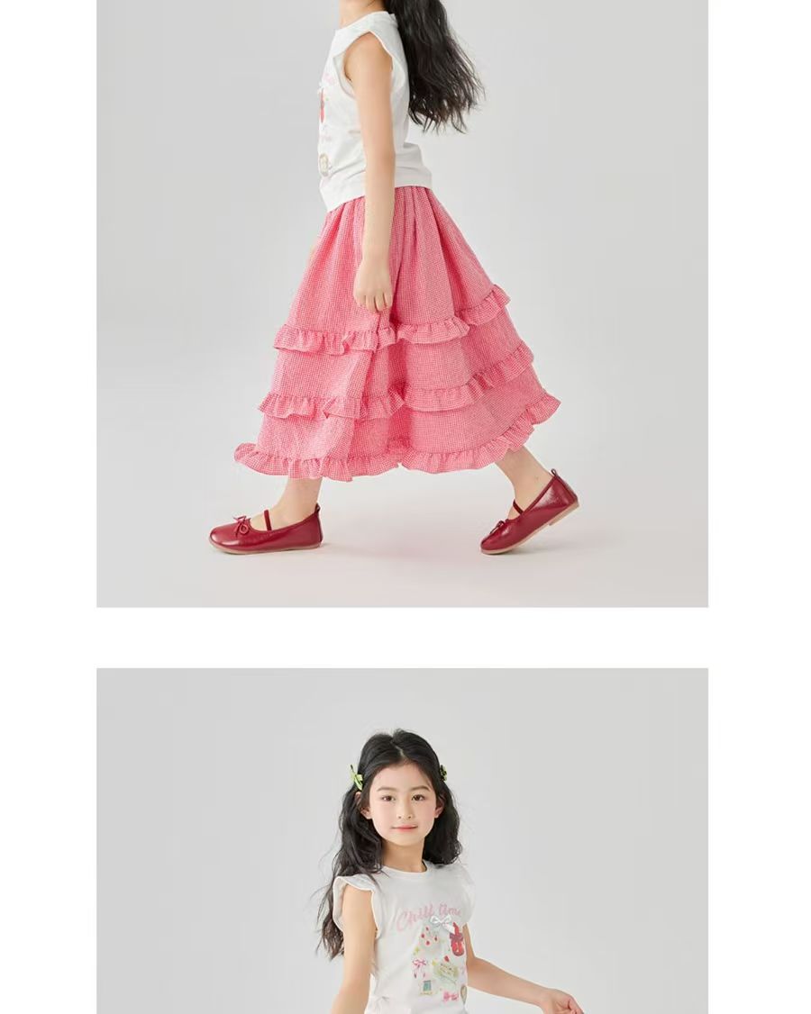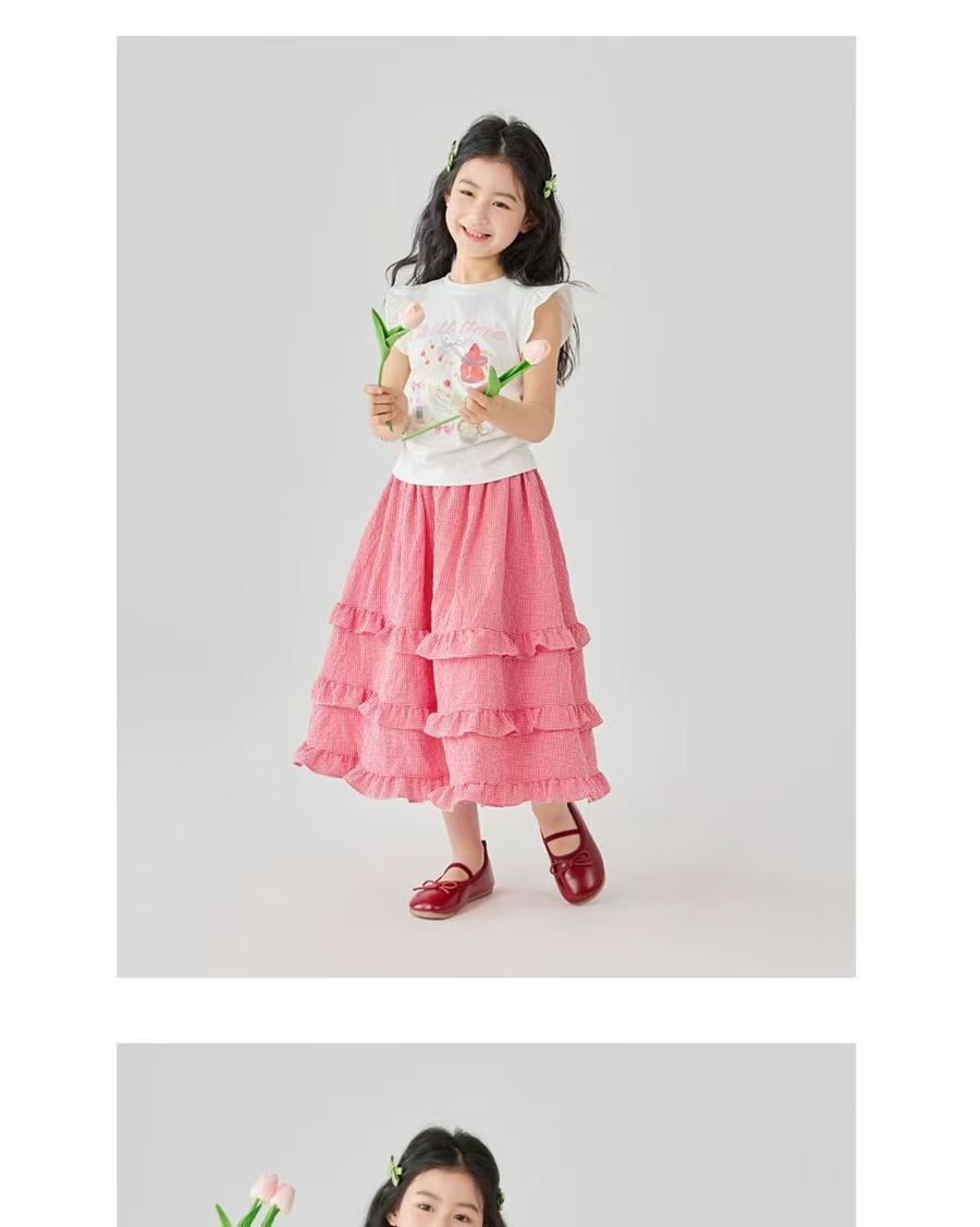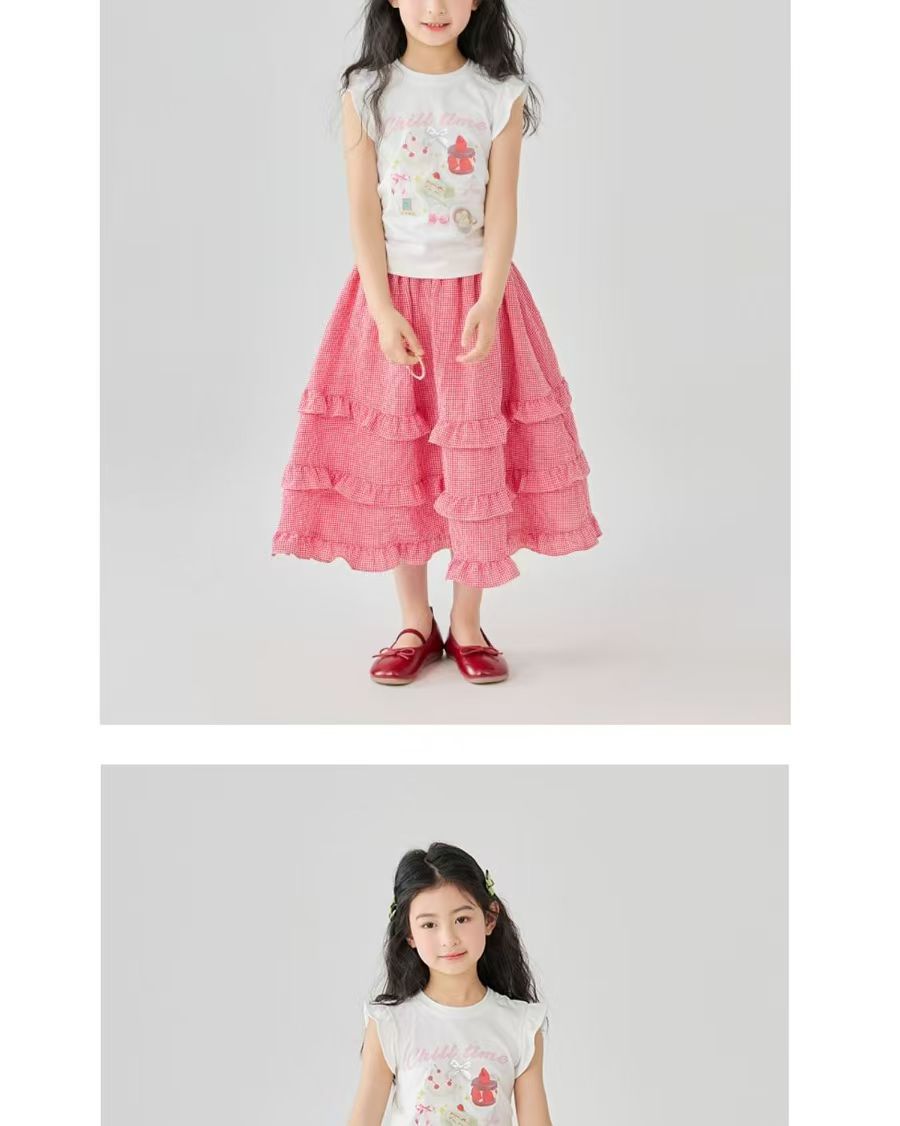 소녀 스커트 봄과 여름 새로운 어린이 러플 격자 무늬 스커트 한국 중간 길이 소녀의 서양식 케이크 스커트