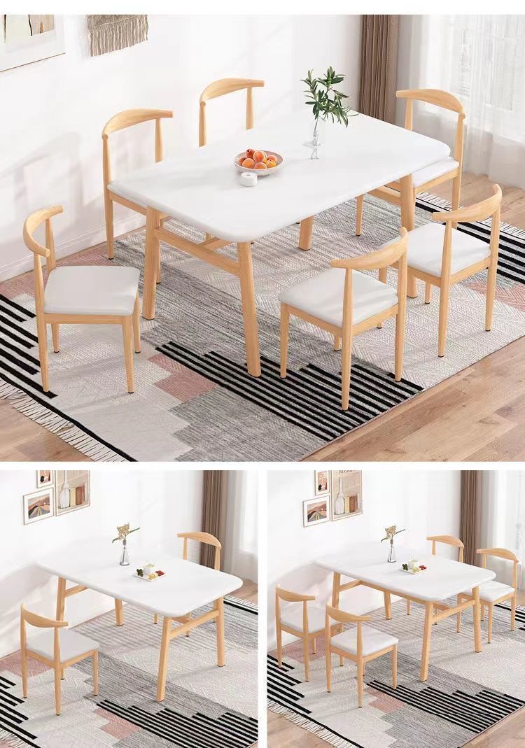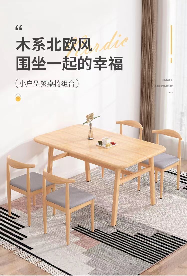 북유럽 식탁 가정용 작은 아파트 간단한 식탁 가벼운 고급 식탁과 의자 조합 모조 단단한 나무 식탁 Changchangzhen