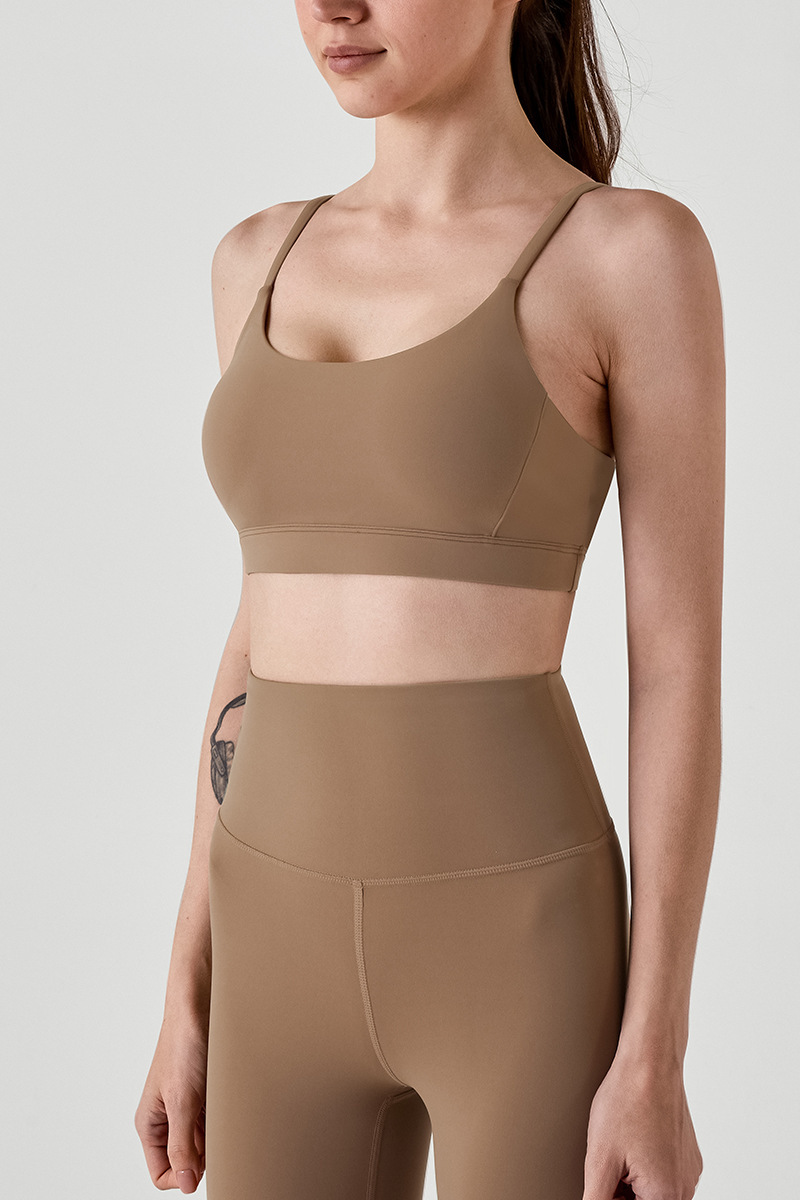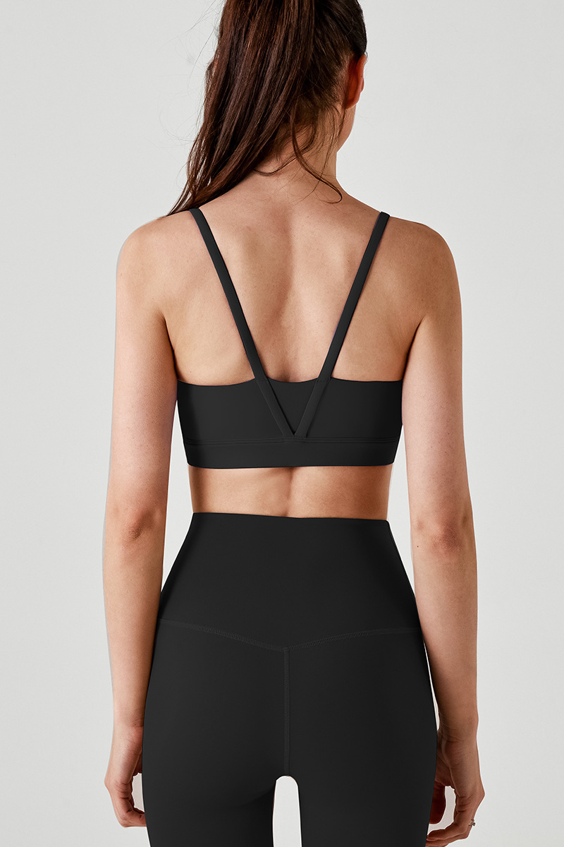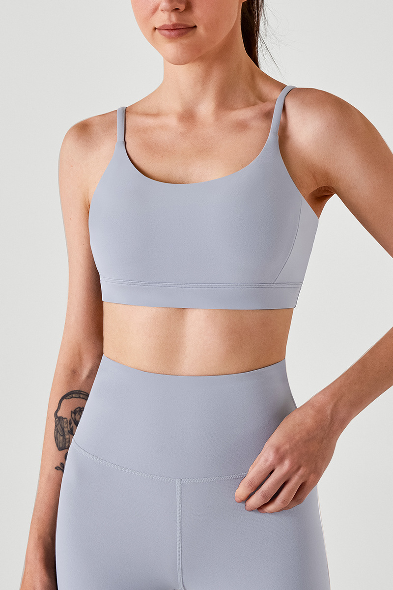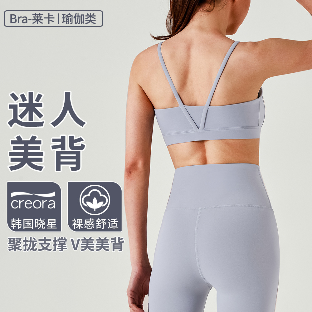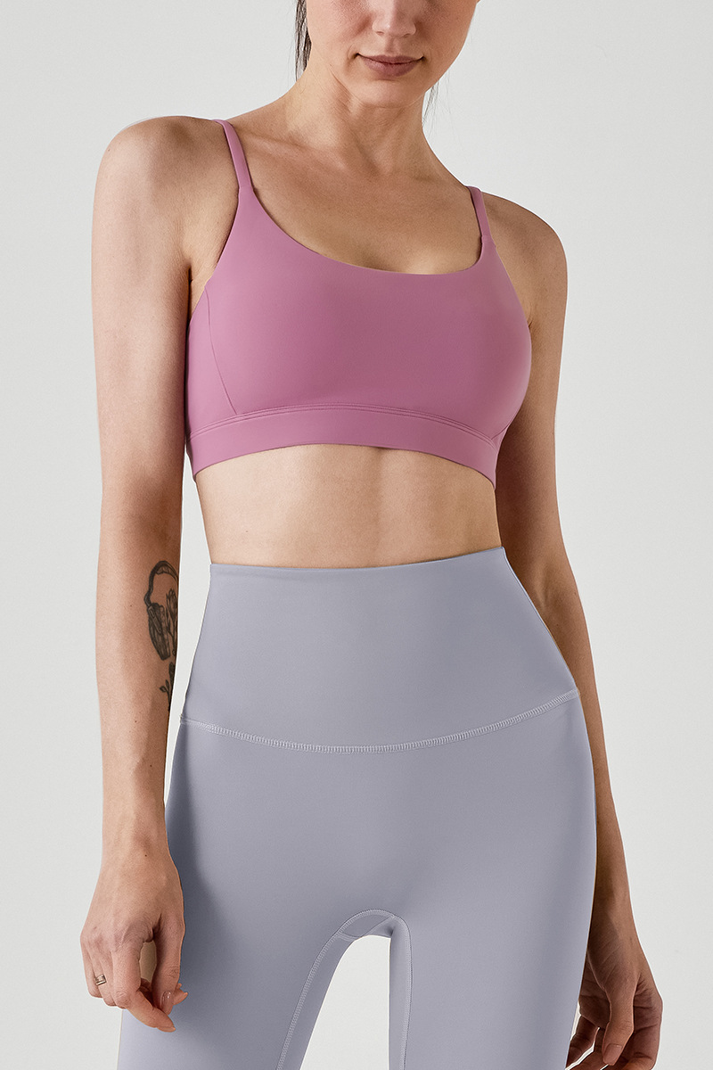 통기성 스포츠 브라, 스파게티 스트랩, 피트니스 조끼, 삼각형 슬링, 요가 브라, U넥 타이, 가슴 패드, 여성용 아름다운 등 여름