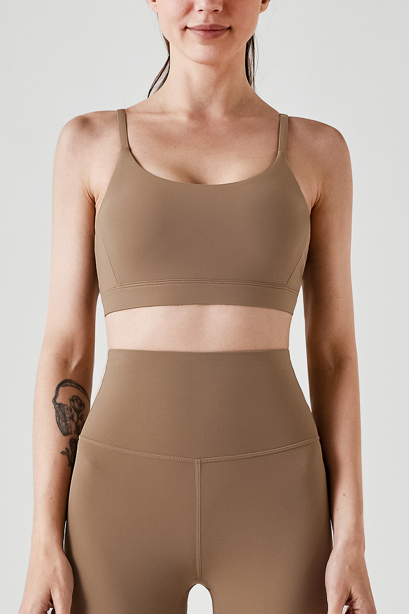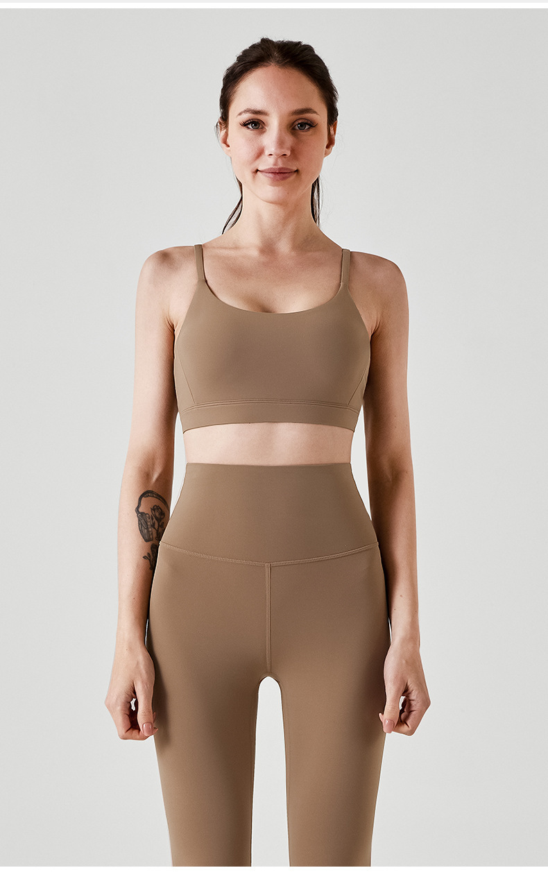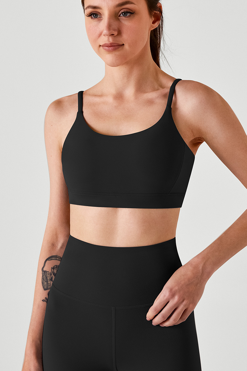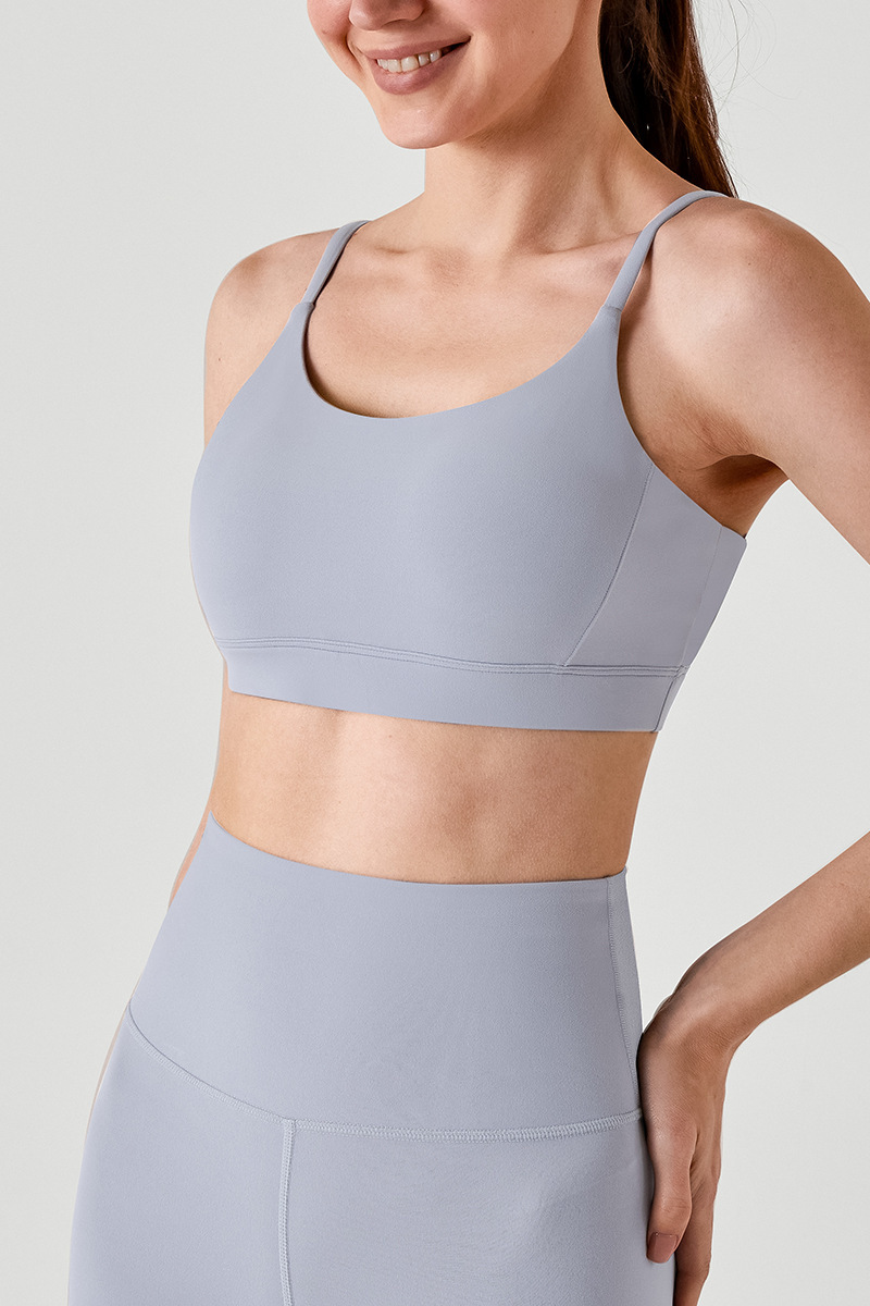 통기성 스포츠 브라, 스파게티 스트랩, 피트니스 조끼, 삼각형 슬링, 요가 브라, U넥 타이, 가슴 패드, 여성용 아름다운 등 여름
