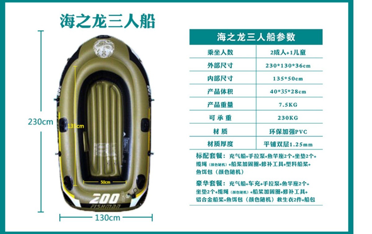 • Sea Dragon 두꺼워진 3인용 표준 패키지(주문 시 무료 보트 가방)