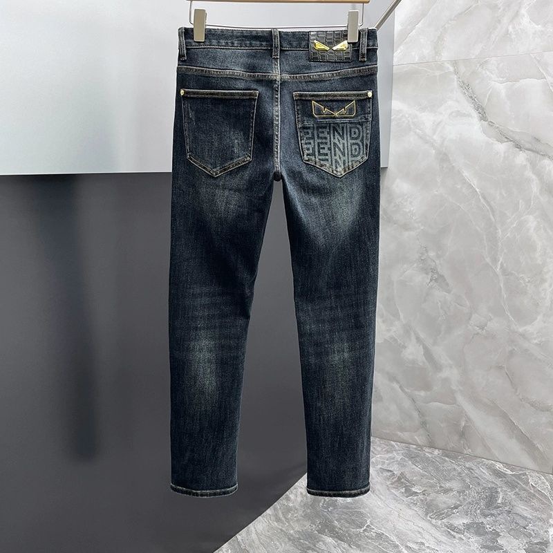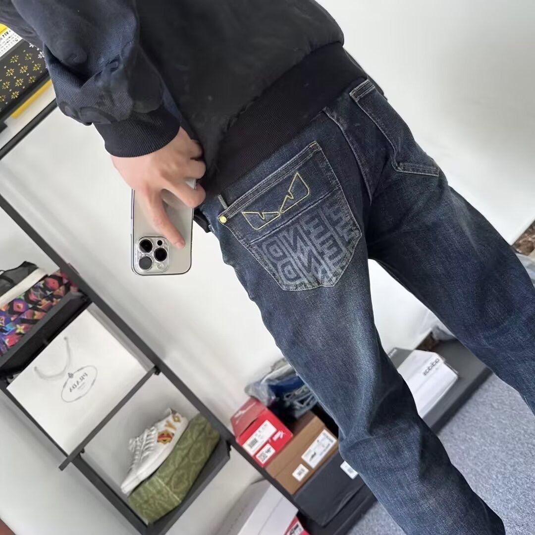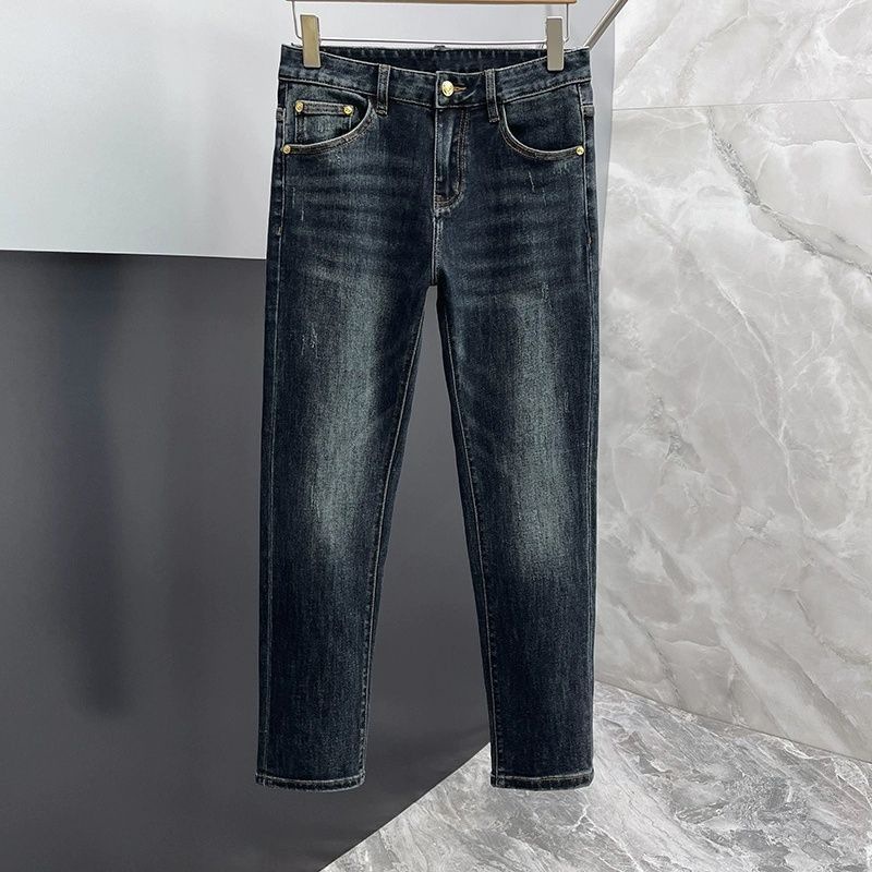 2025 봄 여름 라이트 럭셔리 하이 엔드 트렌디 브랜드 유럽 제품 리틀 몬스터 청바지 남성용 블루 슬림 피트 롱 팬츠스토어 가기