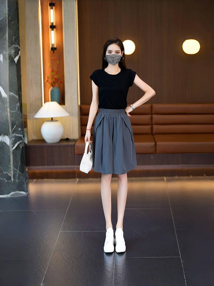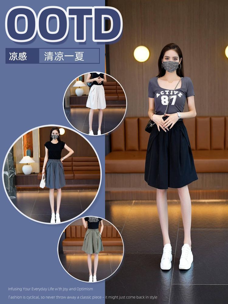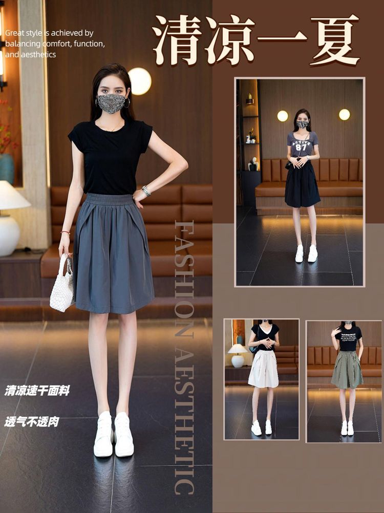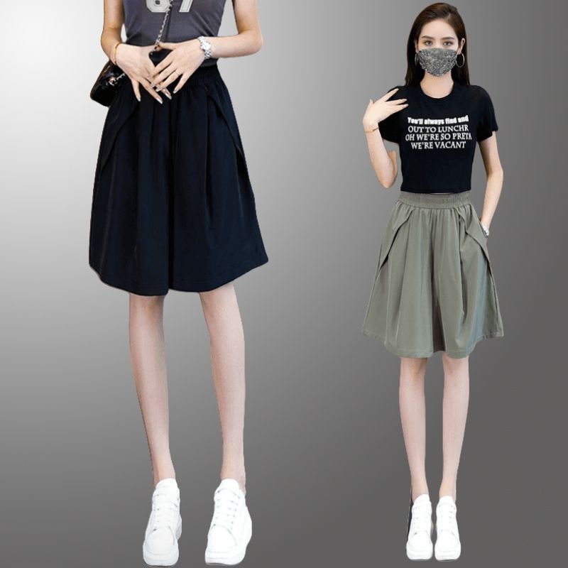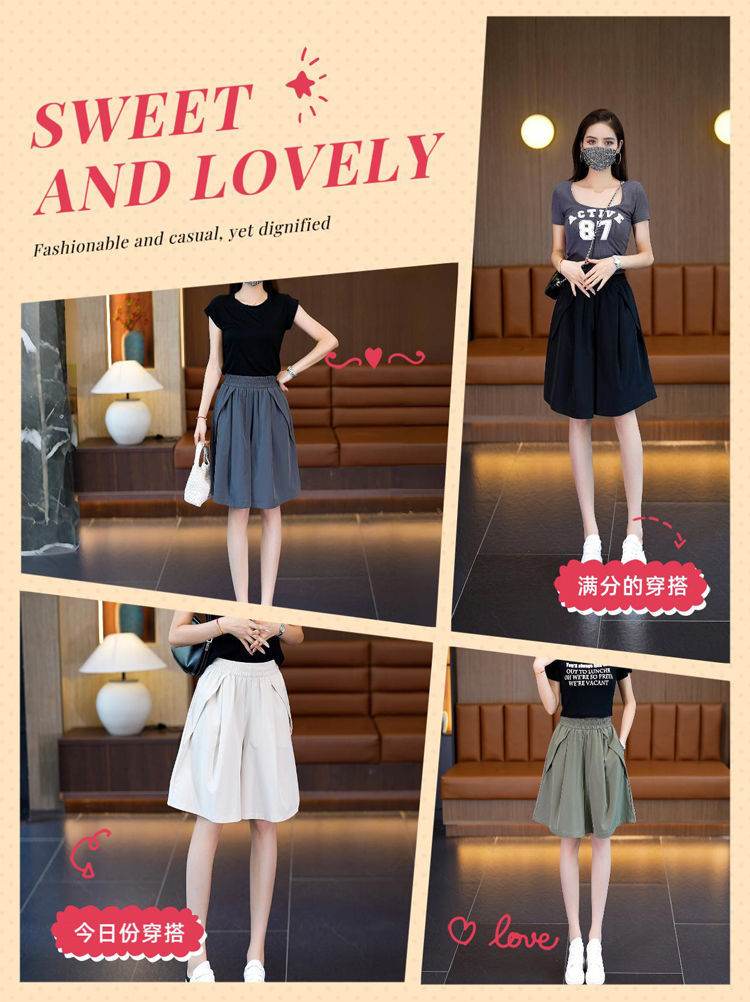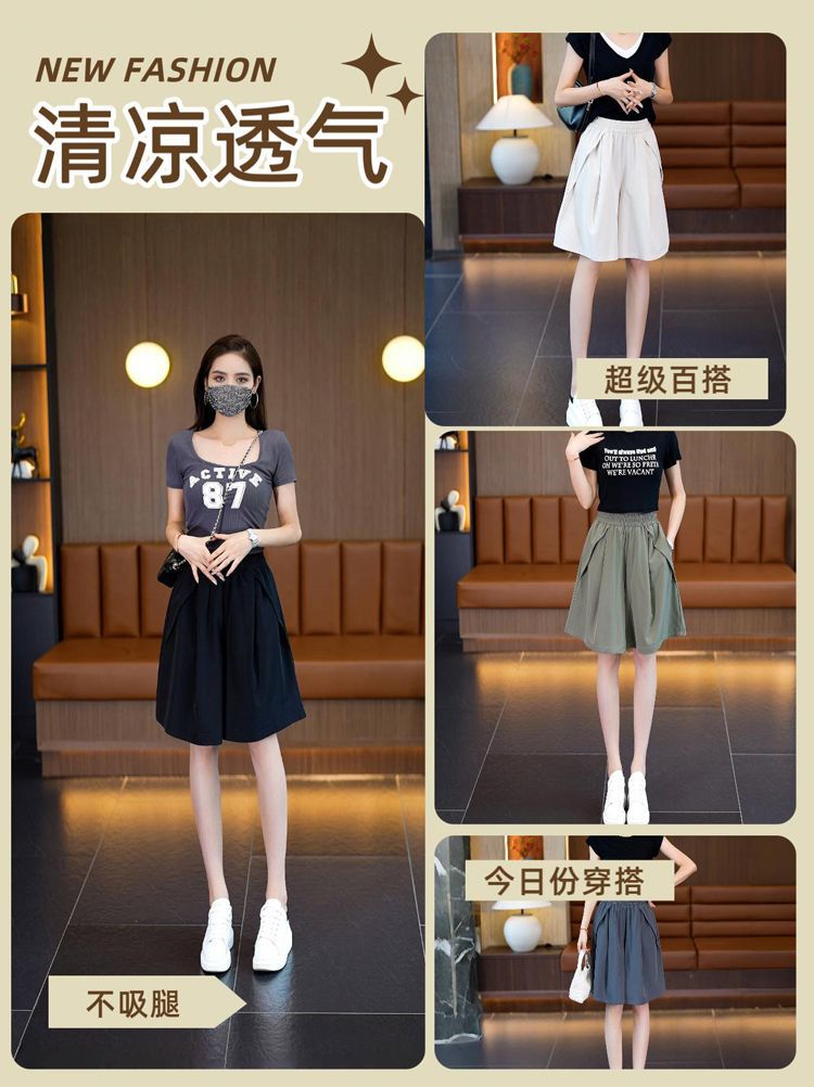 (포켓 포함) 와이드 레그 반바지 여성용 2025 년 여름 얇은 새 도착 하이 웨이스트 아이스 실크 빠른 건조 플러스 사이즈 컬롯스토어 가기