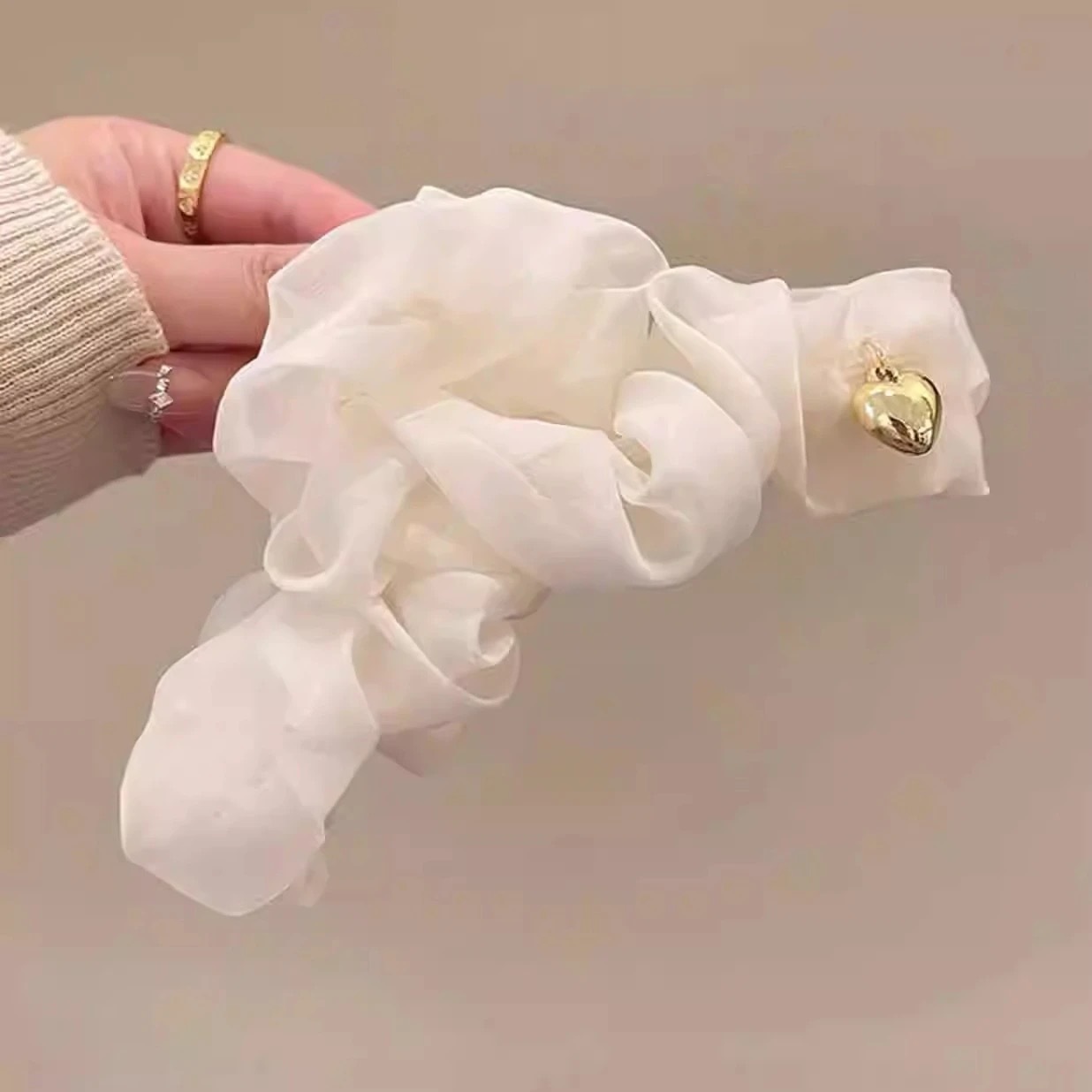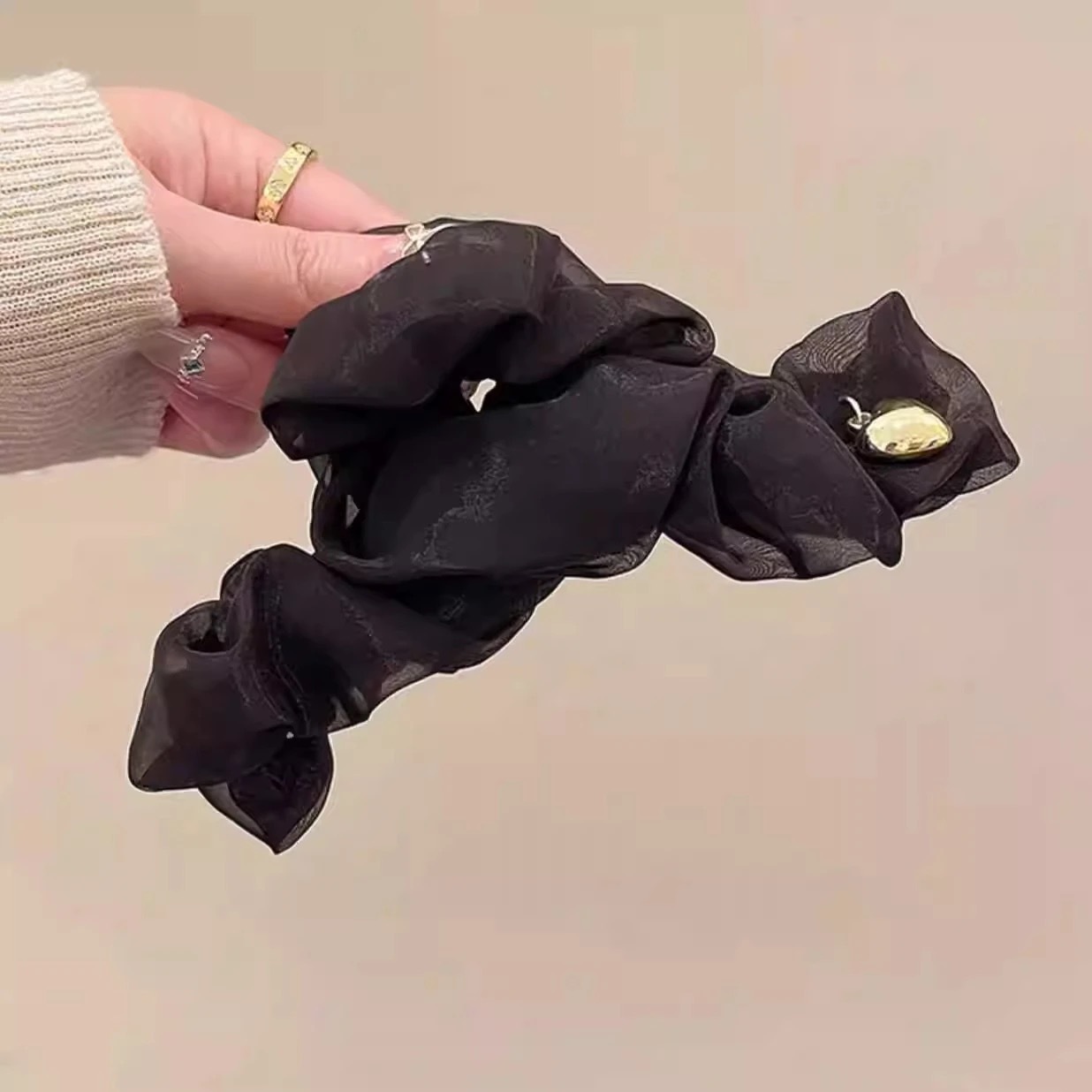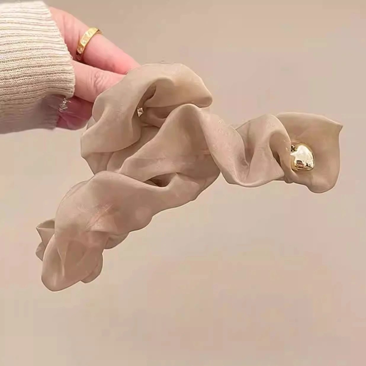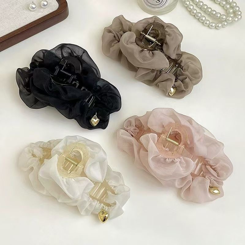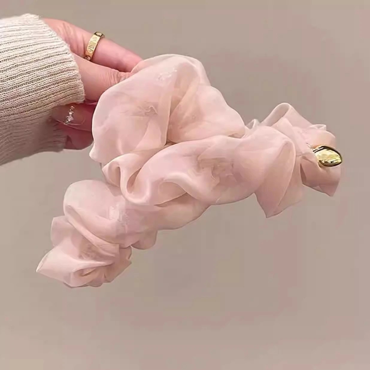 부드러운 우아한 주름 메쉬 대형 그랩 클립 상어 클립 고급 헤어 클립 여성용 2025 신식 백 헤어 액세서리