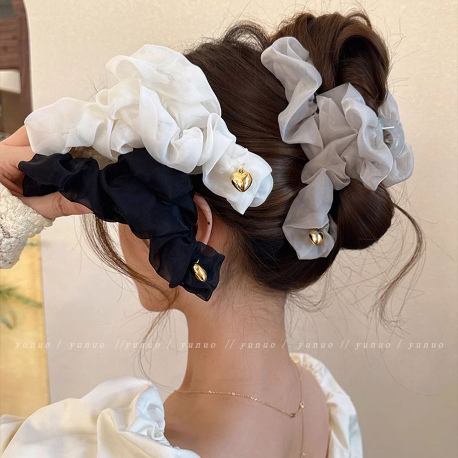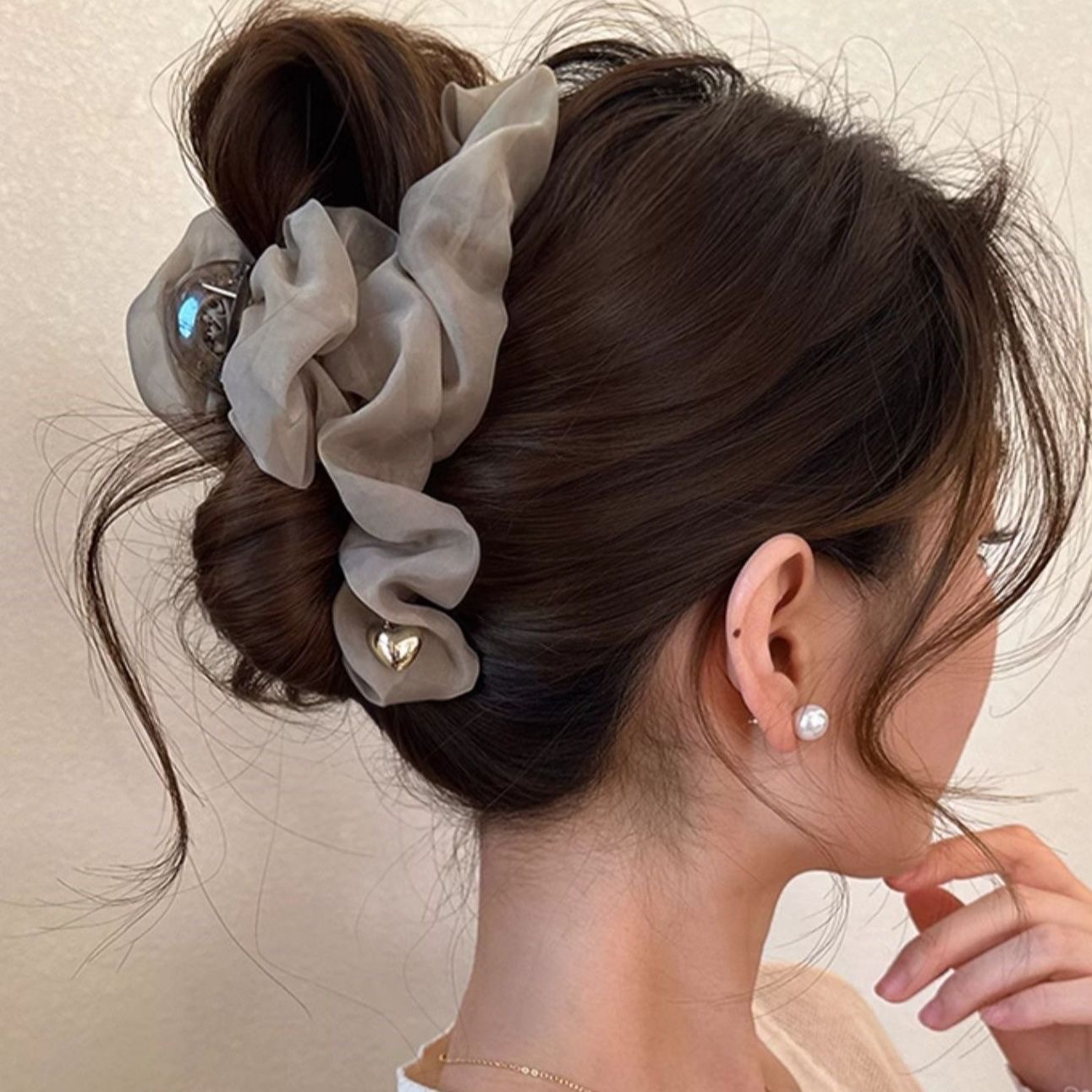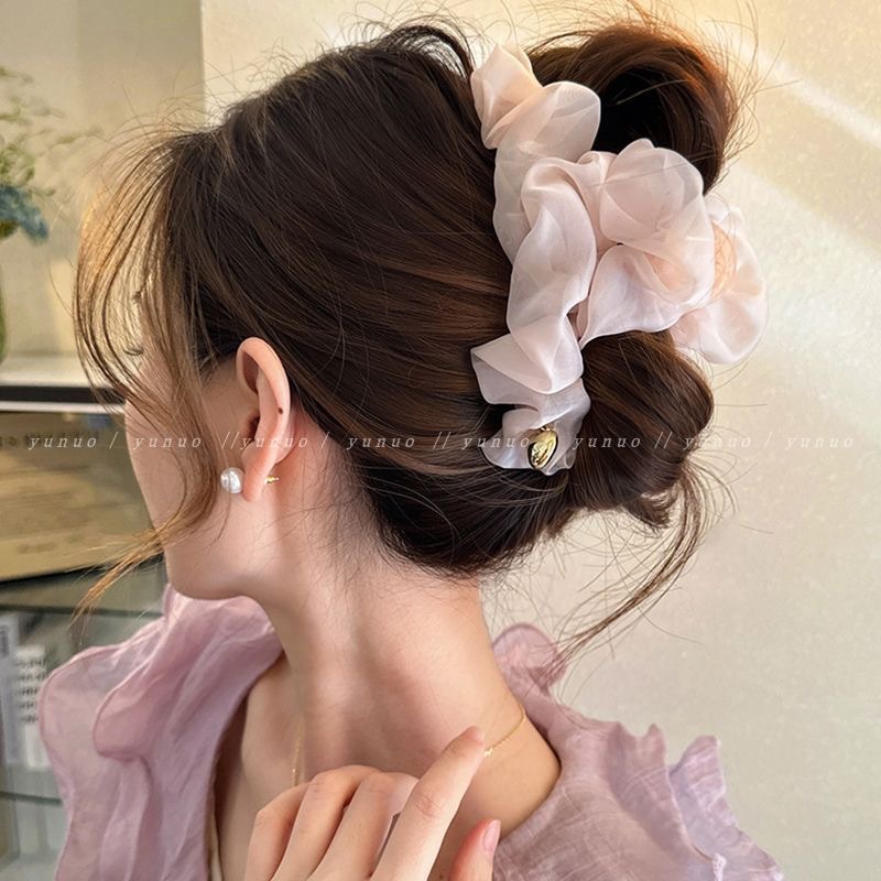 부드러운 우아한 주름 메쉬 대형 그랩 클립 상어 클립 고급 헤어 클립 여성용 2025 신식 백 헤어 액세서리스토어 가기