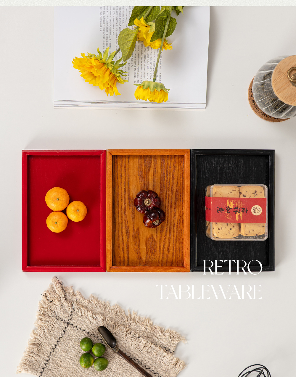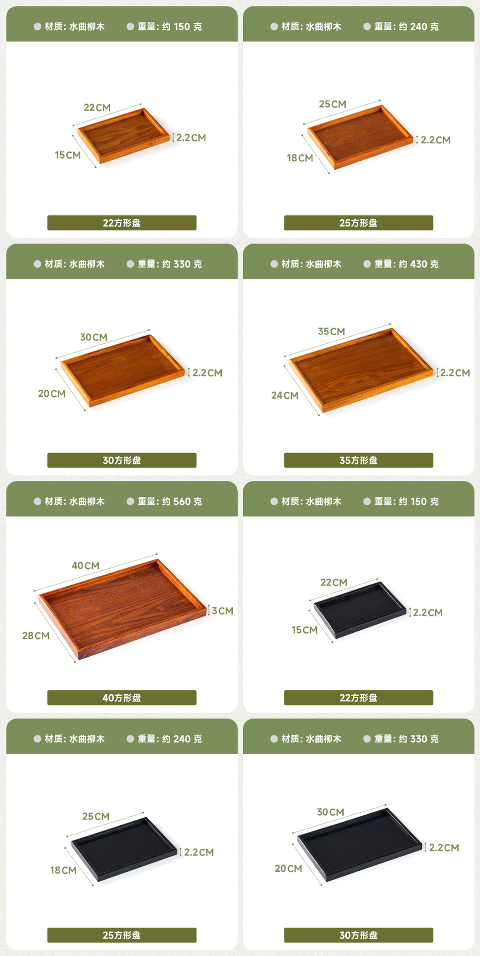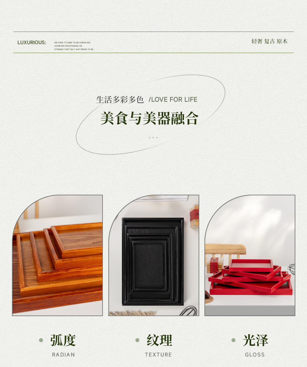 제조 업체 도매 검은 트레이 직사각형 단단한 나무 접시 빨간색 저녁 식사 접시 서빙 트레이 차 트레이 워터 컵 나무 트레이