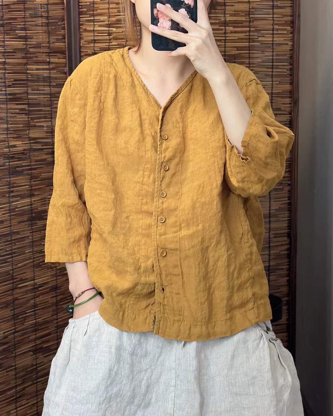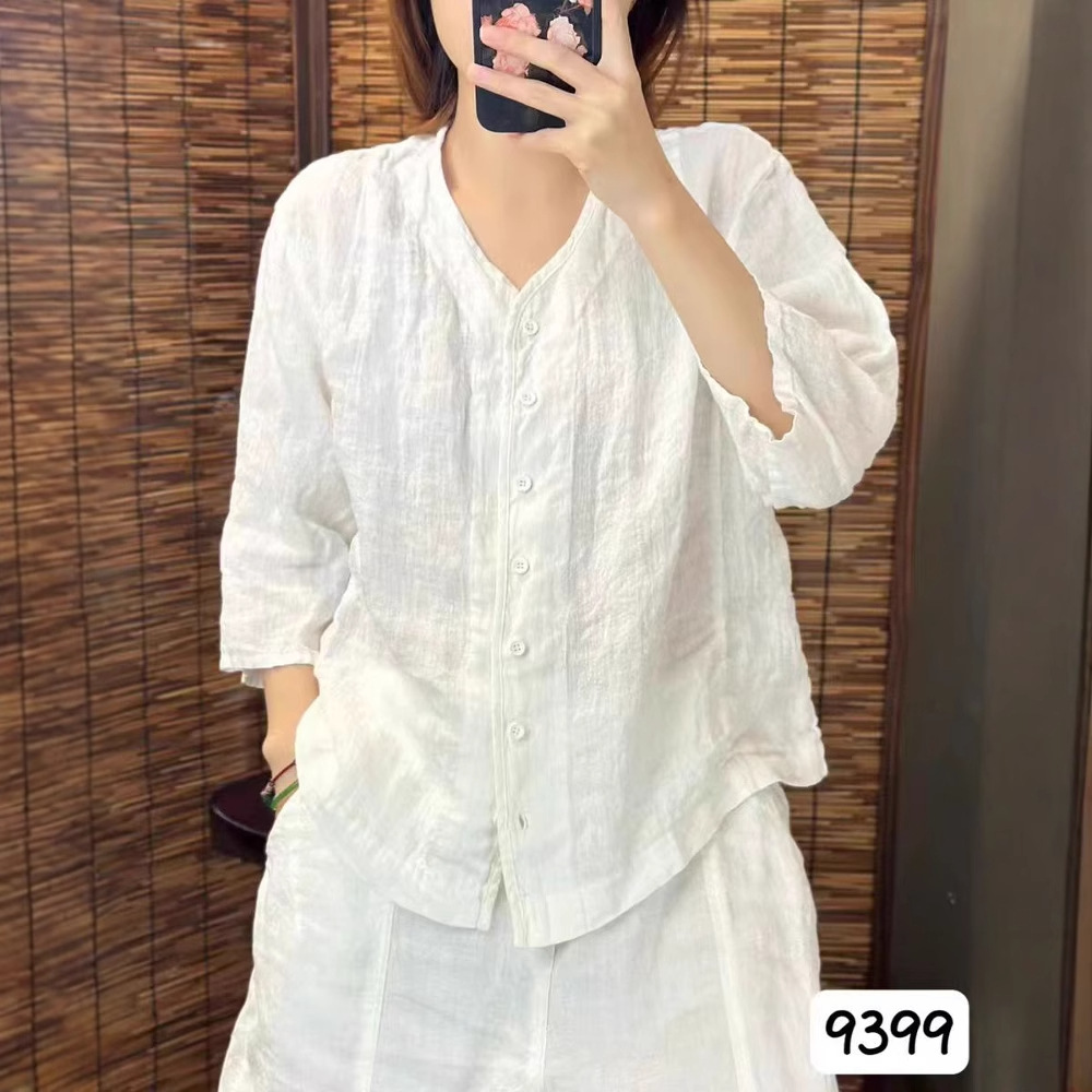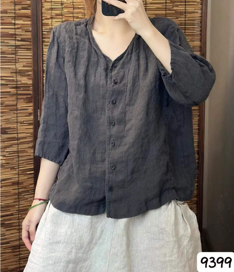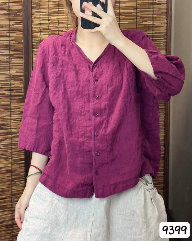 2025 여름 신상 레트로 문학적 린넨 자외선 차단 셔츠 여성용 루즈핏 슬림 캐주얼 다용도 상의 9399스토어 가기