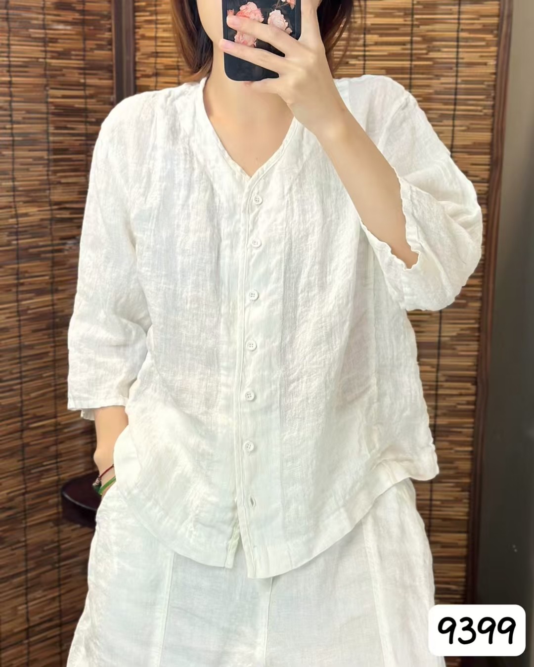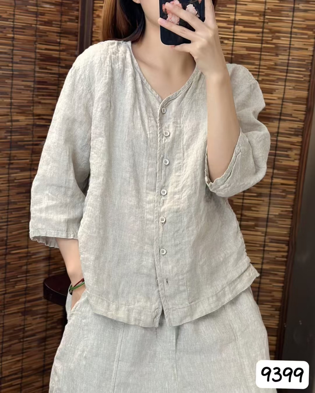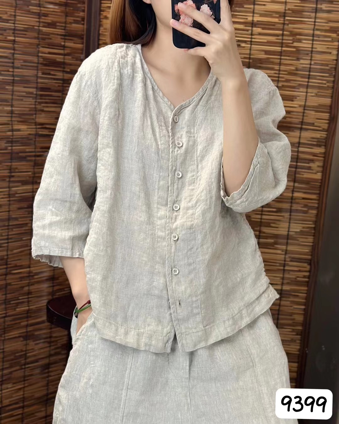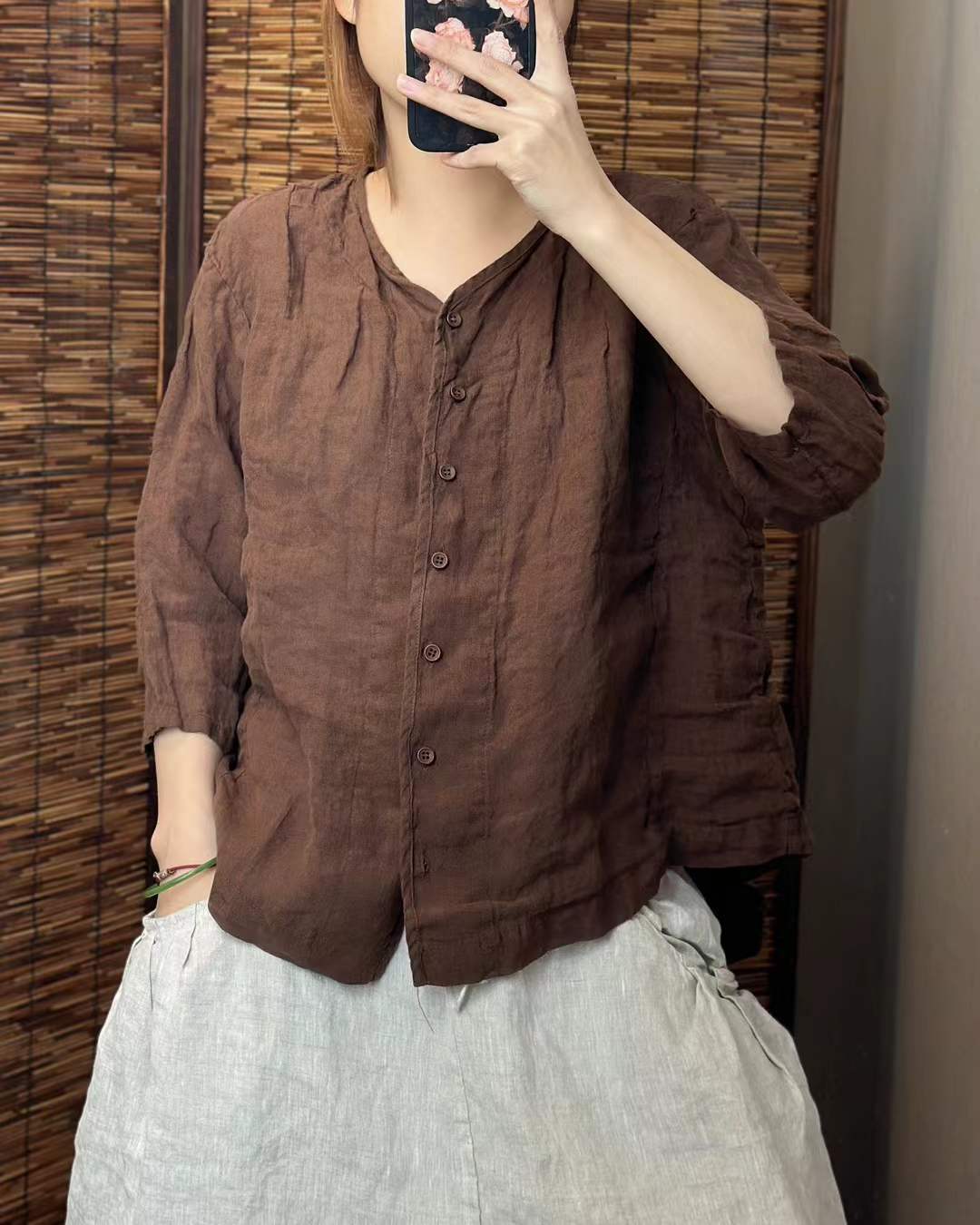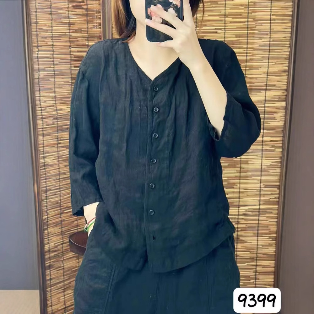 2025 여름 신상 레트로 문학적 린넨 자외선 차단 셔츠 여성용 루즈핏 슬림 캐주얼 다용도 상의 9399