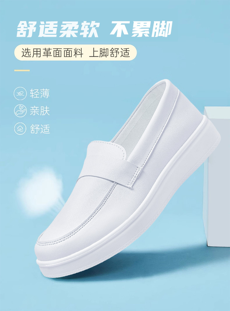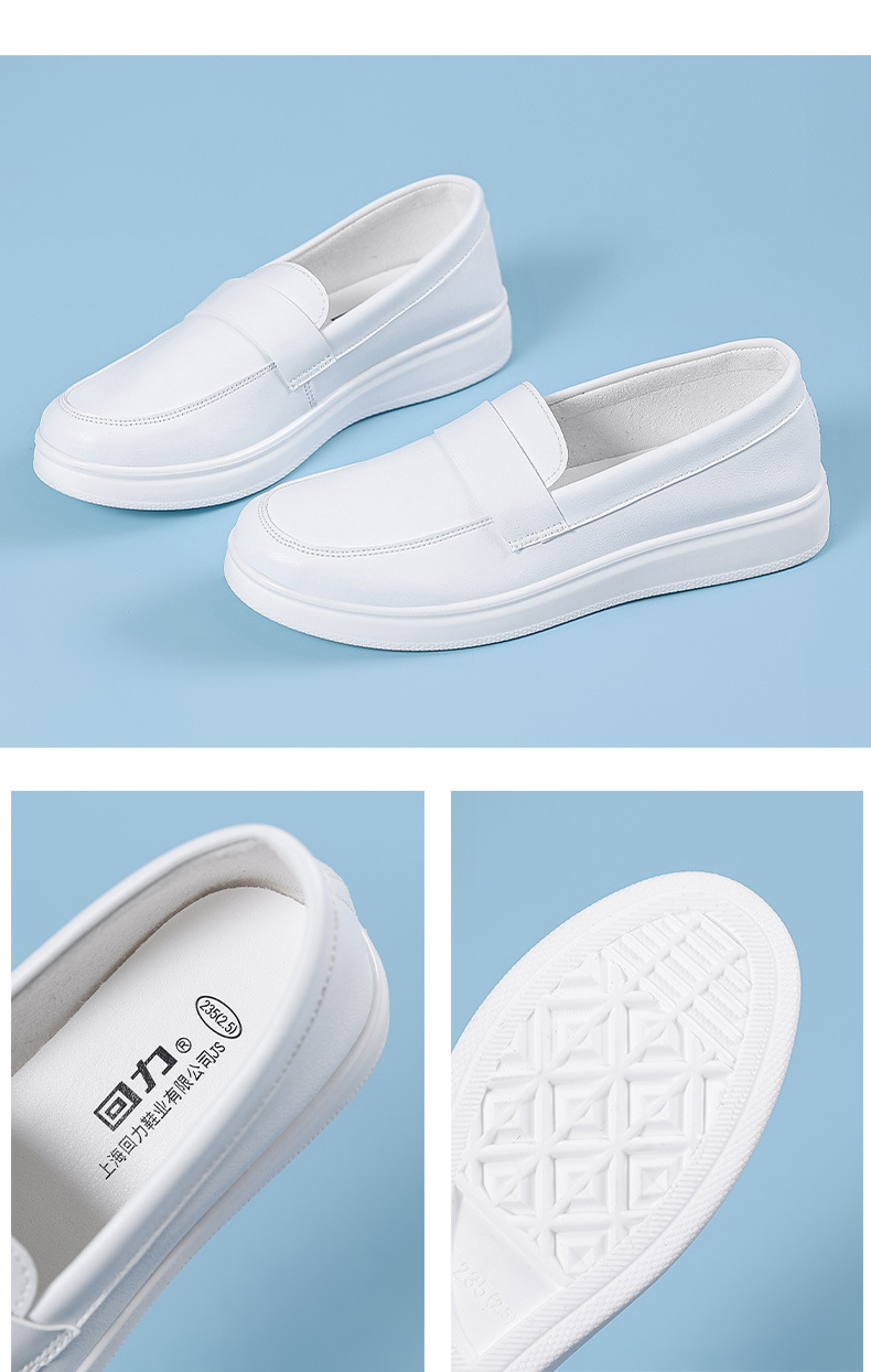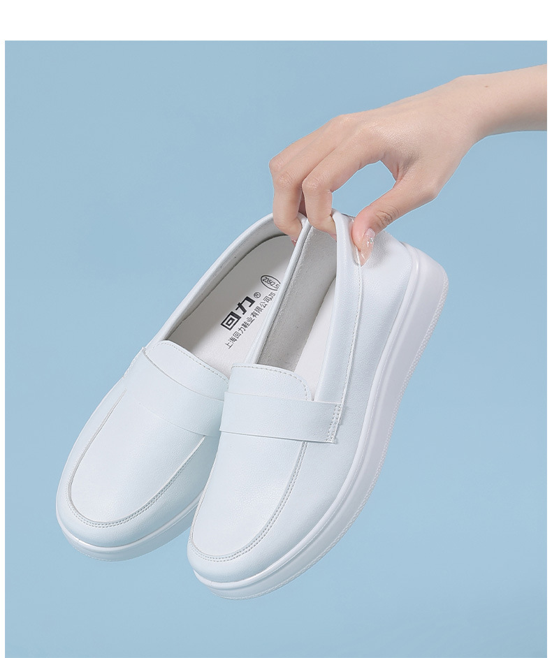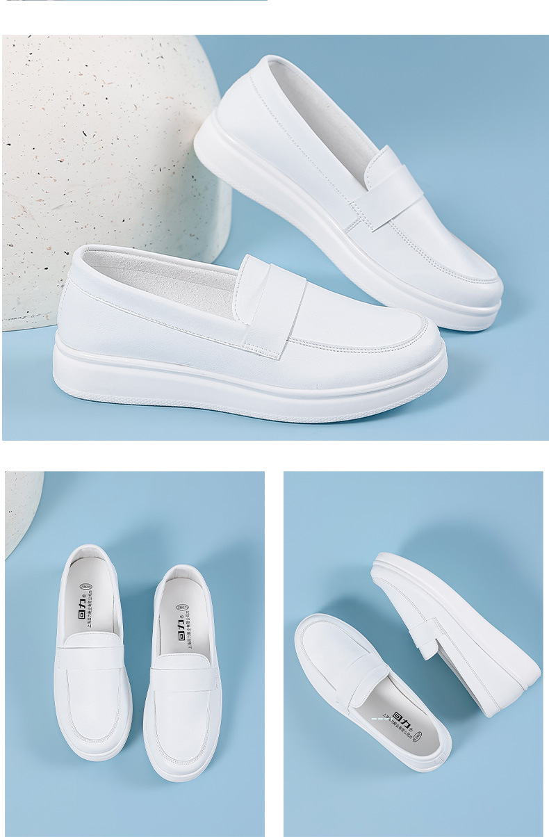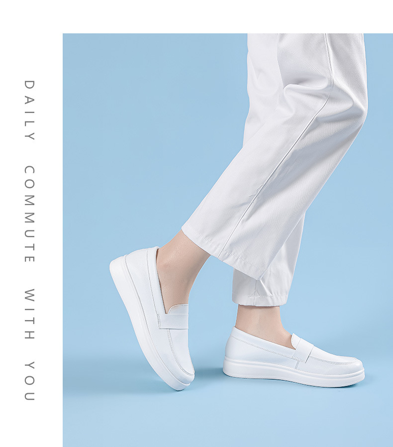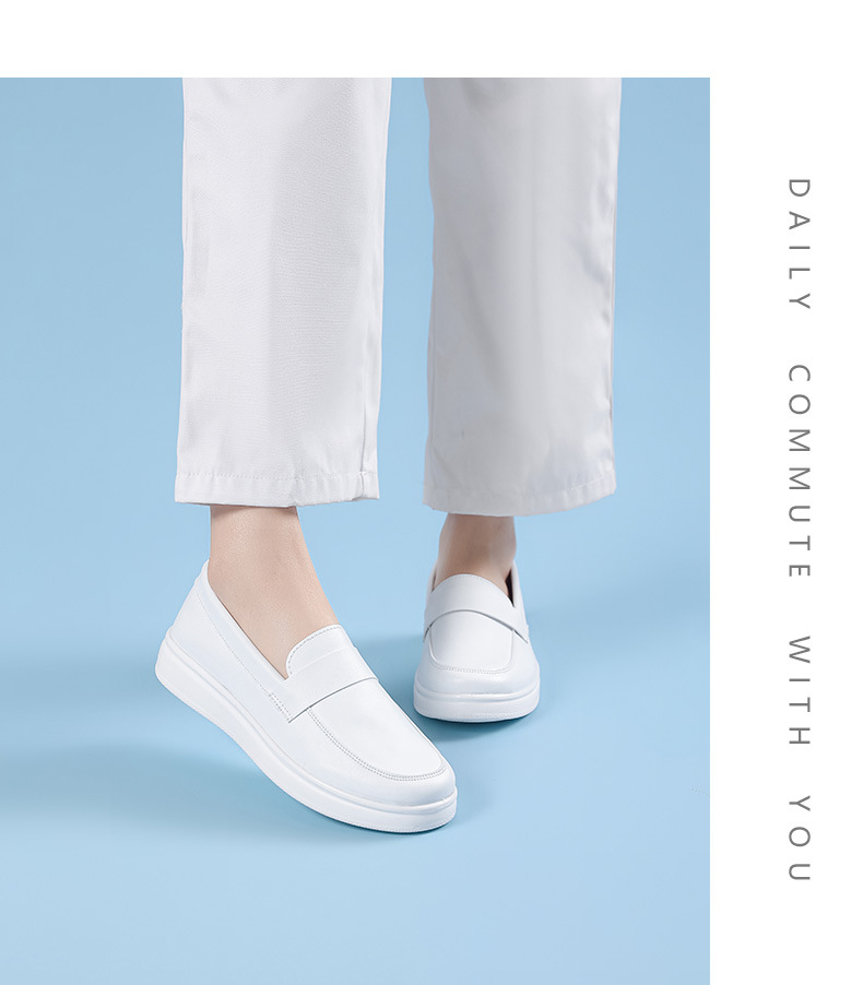 여성용 간호사 신발, 둥근 앞코, 통기성, 부드러운 밑창, 슬립온 로퍼, 냄새 방지, 흰색, 발이 피곤하지 않은 작업화