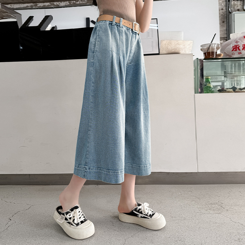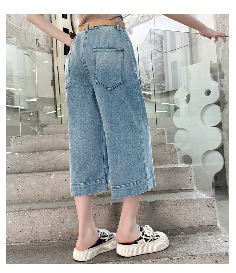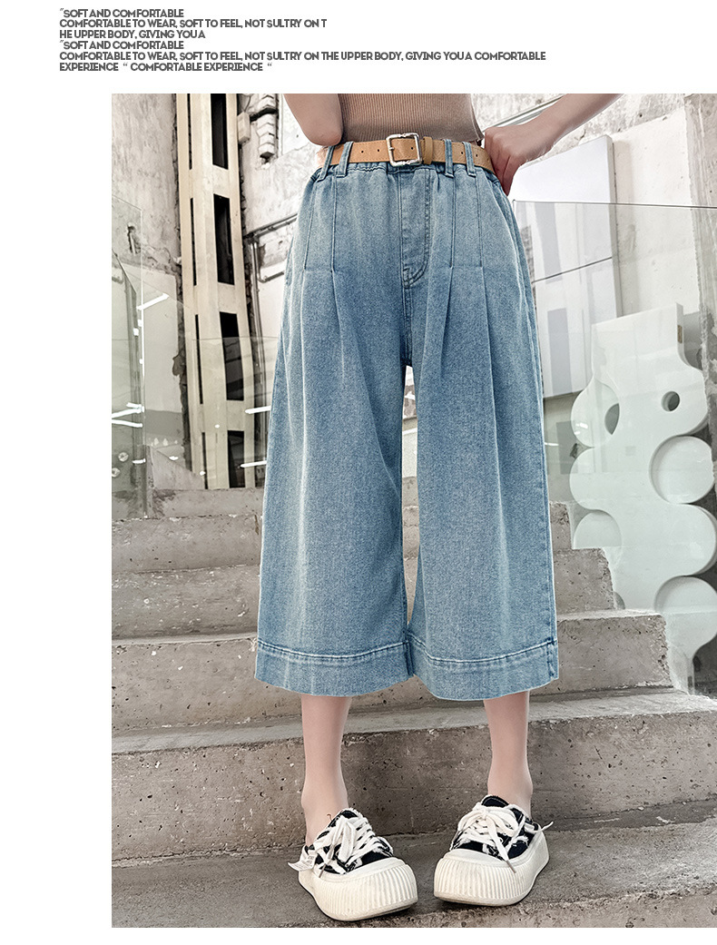 소녀 데님 자른 바지 여름 얇은 2025 새로운 어린이 여름 서양식 소녀 넓은 다리 바지