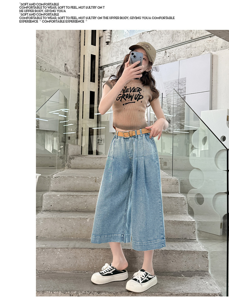 소녀 데님 자른 바지 여름 얇은 2025 새로운 어린이 여름 서양식 소녀 넓은 다리 바지스토어 가기
