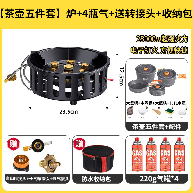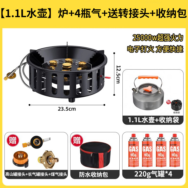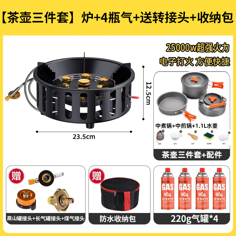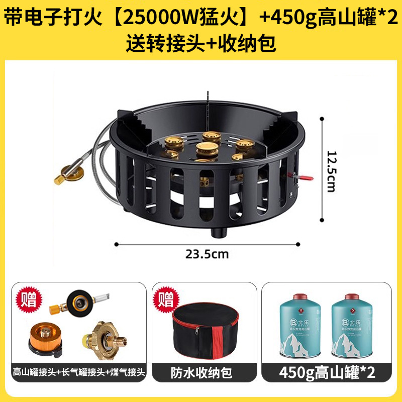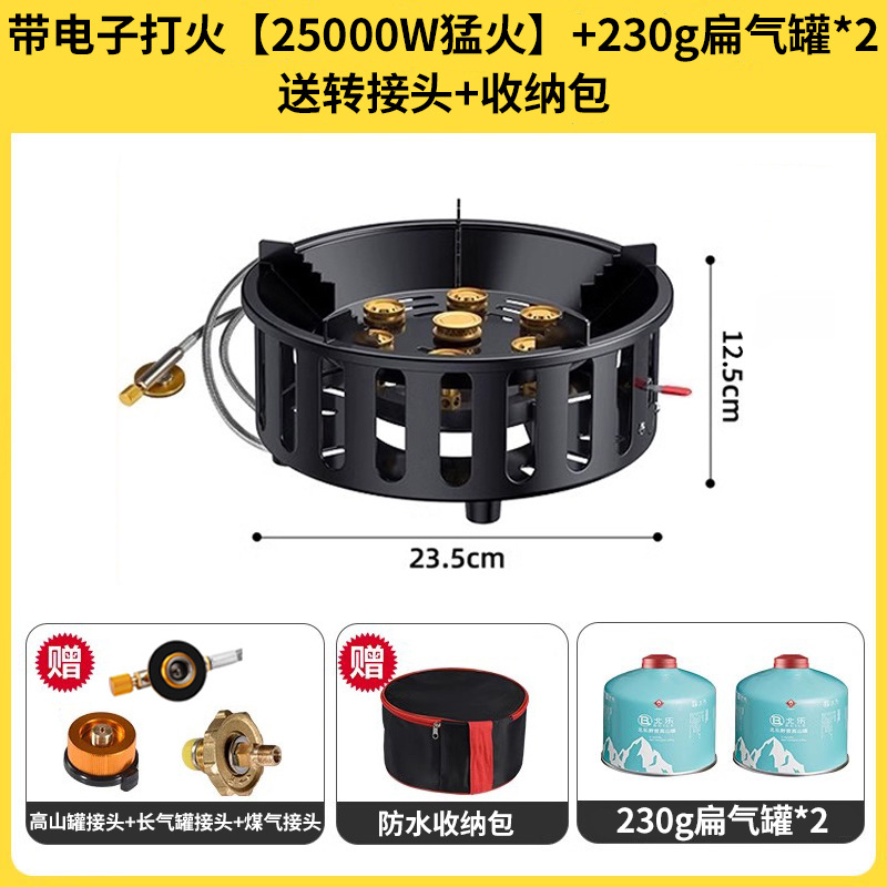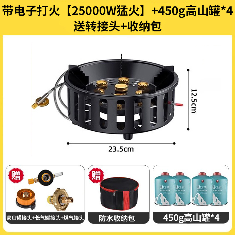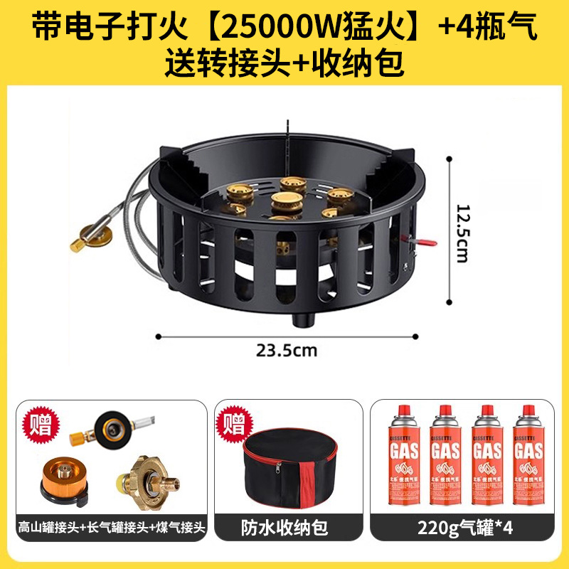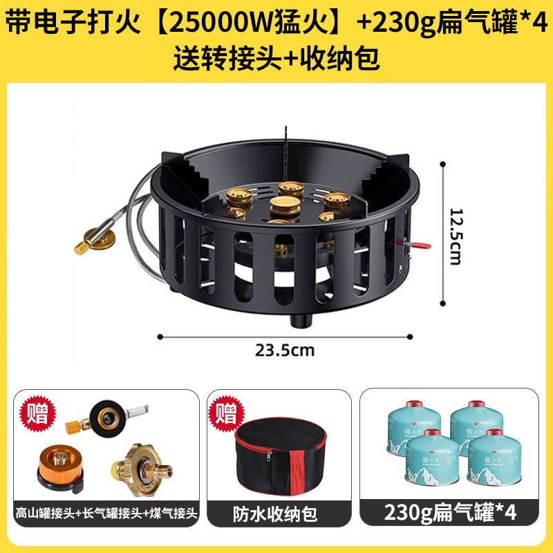 • 전자 점화 장치 [25000W 강력한 화재] + 230g 평면 가스 탱크 * 4 + 무료 어댑터 + 보관 가방