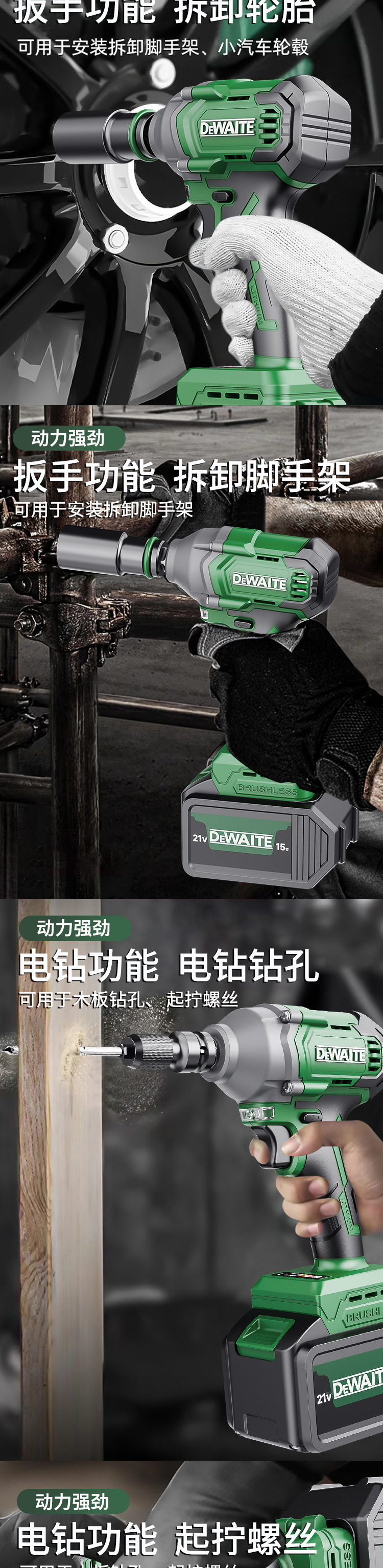 신제품 Dongyicheng Witt 브러시리스 리튬 배터리 충격 전기 렌치 랙 목공 자동차 수리 대형 토크 전기 렌치