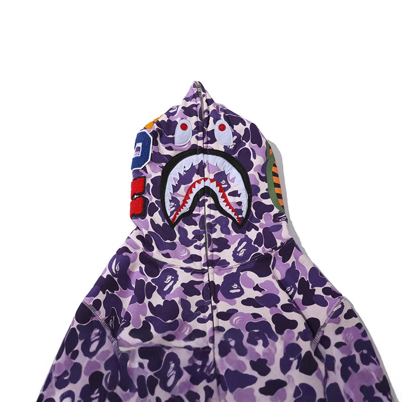 국경 간 대외 무역 도매 타로 보라색 자수 편지 스웨터 남성 카디건 지퍼 후드 느슨한 조수 브랜드 상어 코트