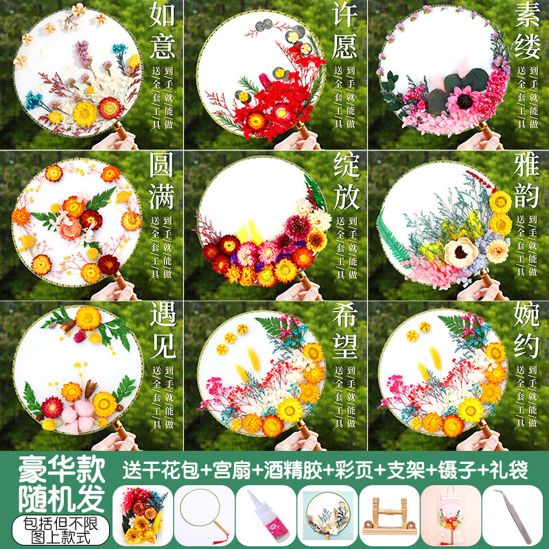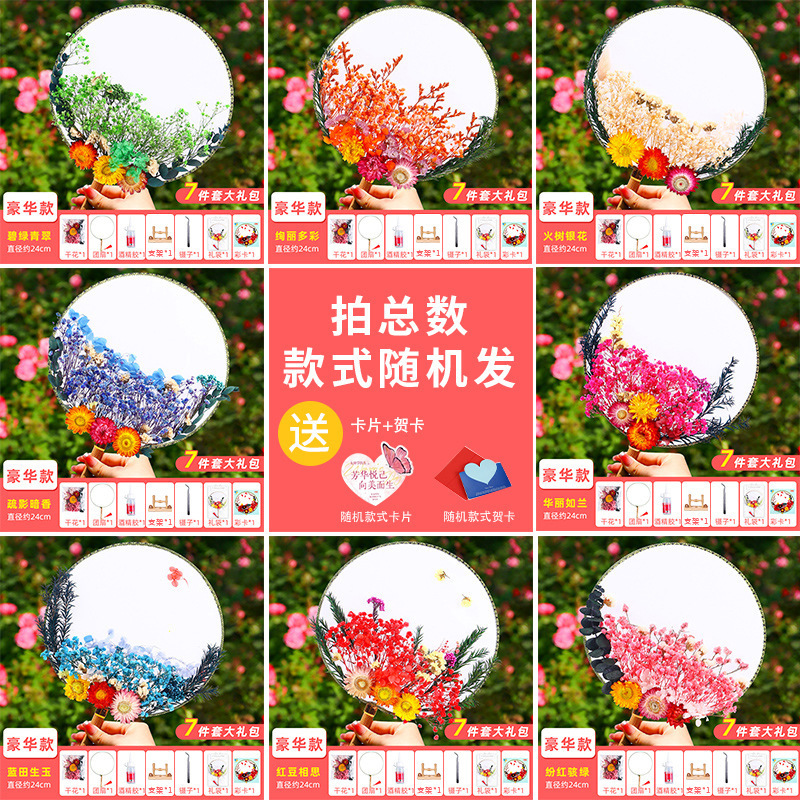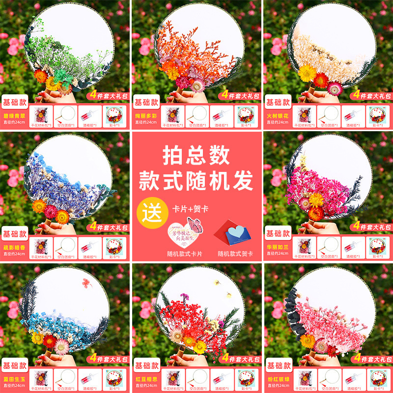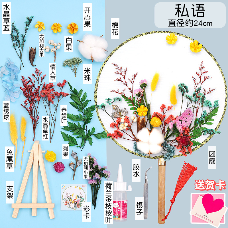 어버이날 선물, 드라이플라워 부채, DIY 재료 패키지, 영원한 꽃, 핸드메이드 데칼 부채, 기념품 이벤트