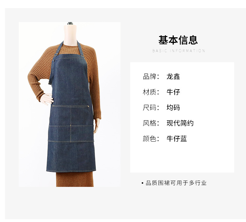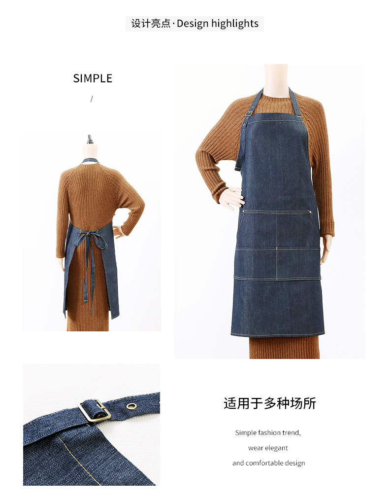 대외 무역 국경 간 방수 및 내유성 데님 앞치마 커피 숍 주방 가정용 앞치마 원예 작업 앞치마를 맞춤 설정할 수 있습니다.
