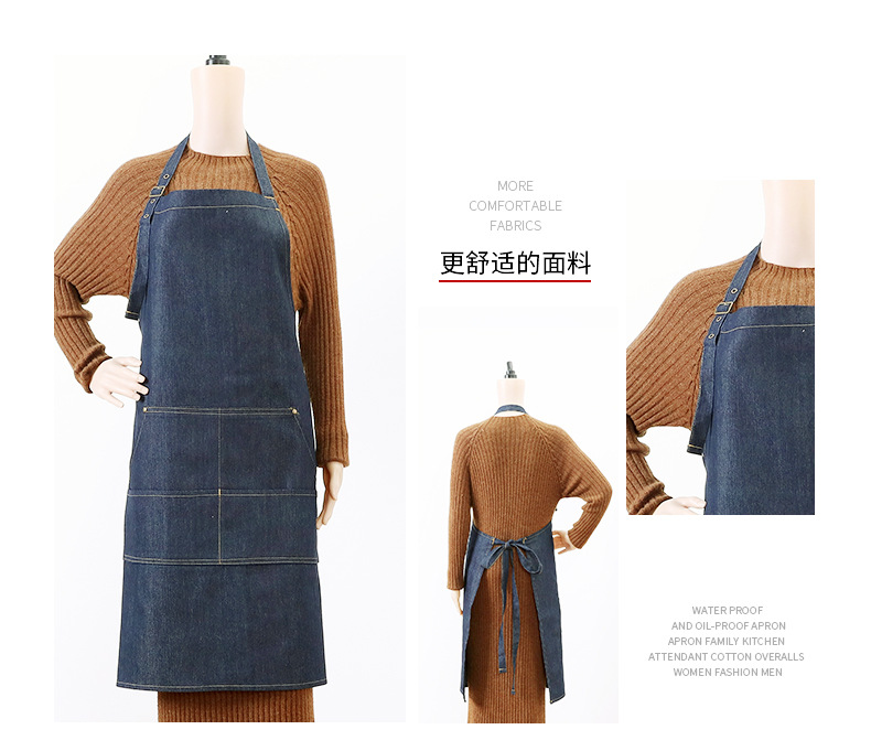 대외 무역 국경 간 방수 및 내유성 데님 앞치마 커피 숍 주방 가정용 앞치마 원예 작업 앞치마를 맞춤 설정할 수 있습니다.스토어 가기