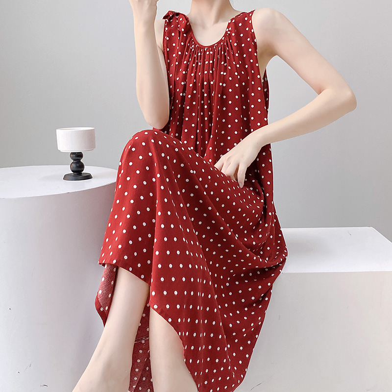 나이트 드레스 프렌치 슬링 원피스 여성의 여름 민소매 주름 꽃병 원피스 해변 원피스 휴일 긴 원피스 홈 옷스토어 가기