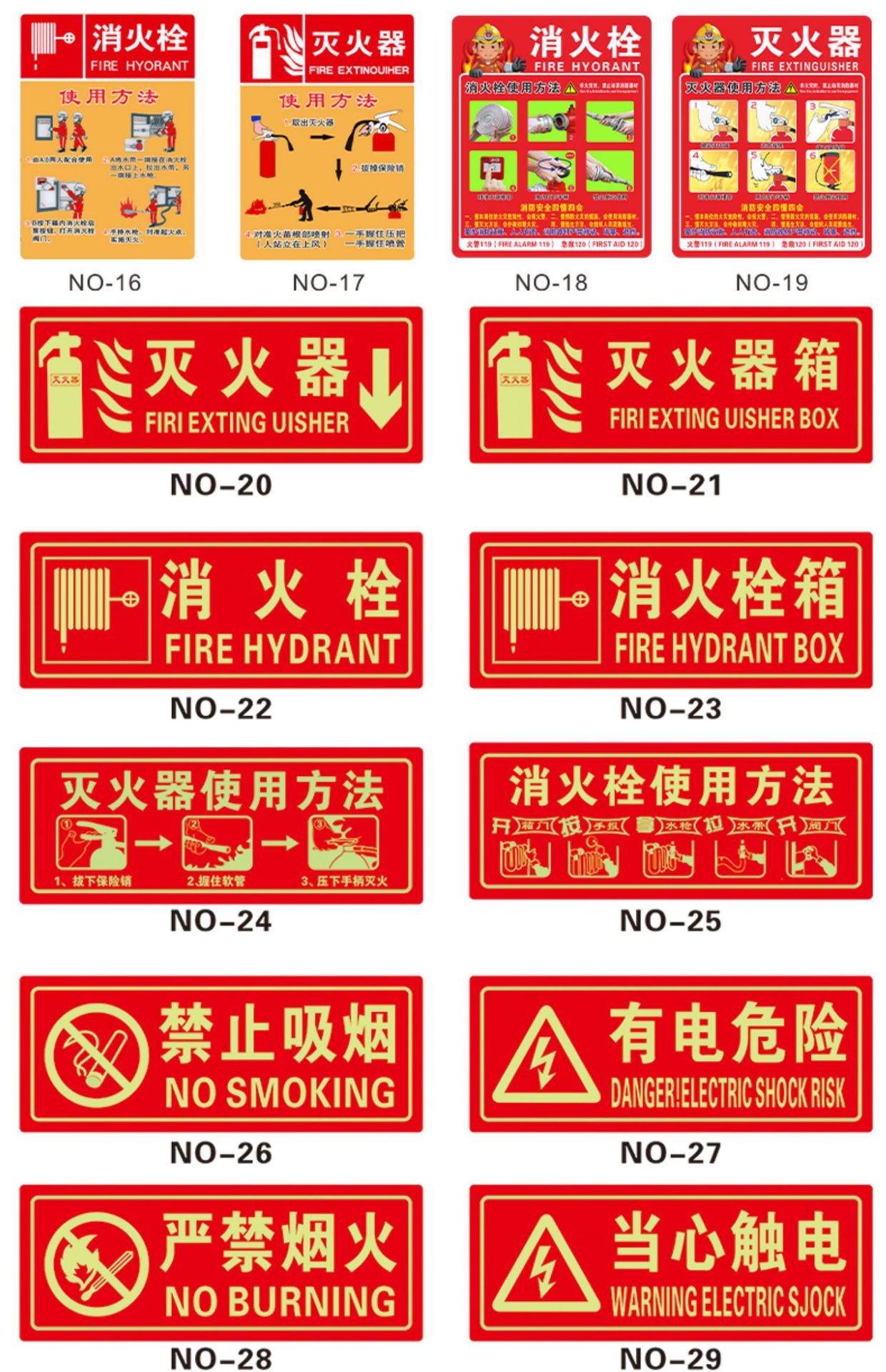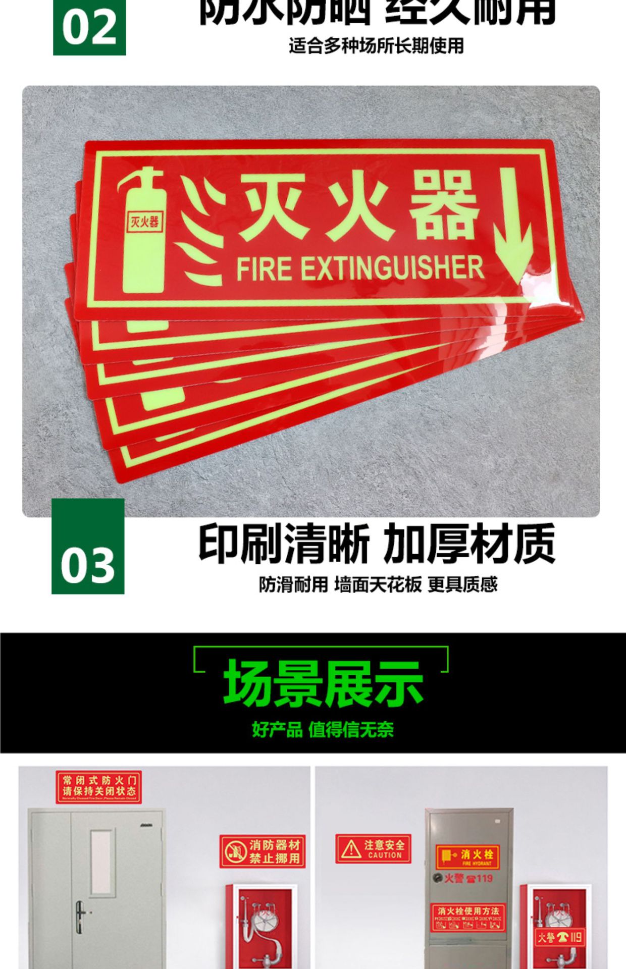 야광 소화기 표시, 화재 표시, 자체 발광 형광 프롬프트 표시, PVC 경고 소화전