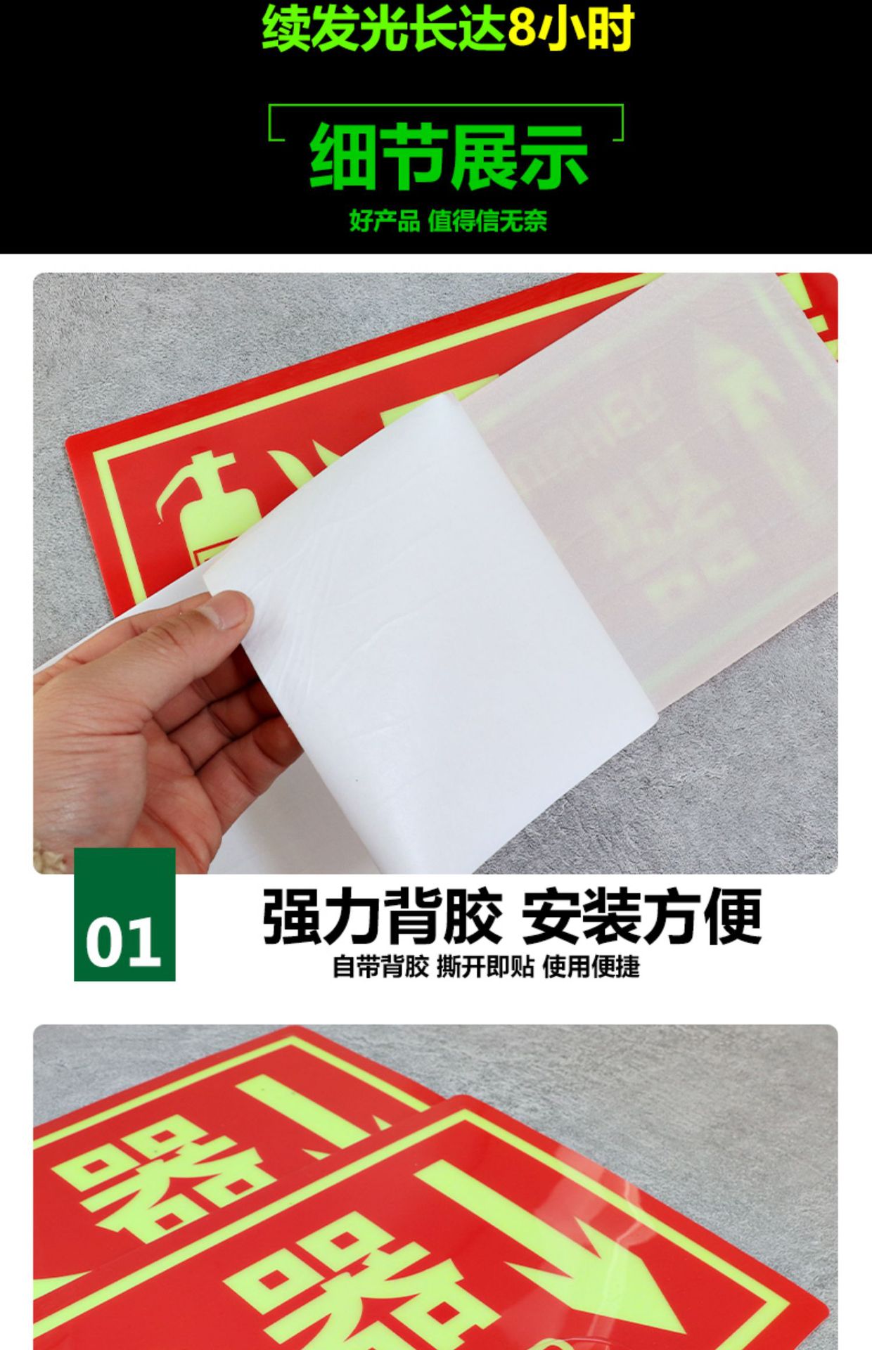 야광 소화기 표시, 화재 표시, 자체 발광 형광 프롬프트 표시, PVC 경고 소화전스토어 가기