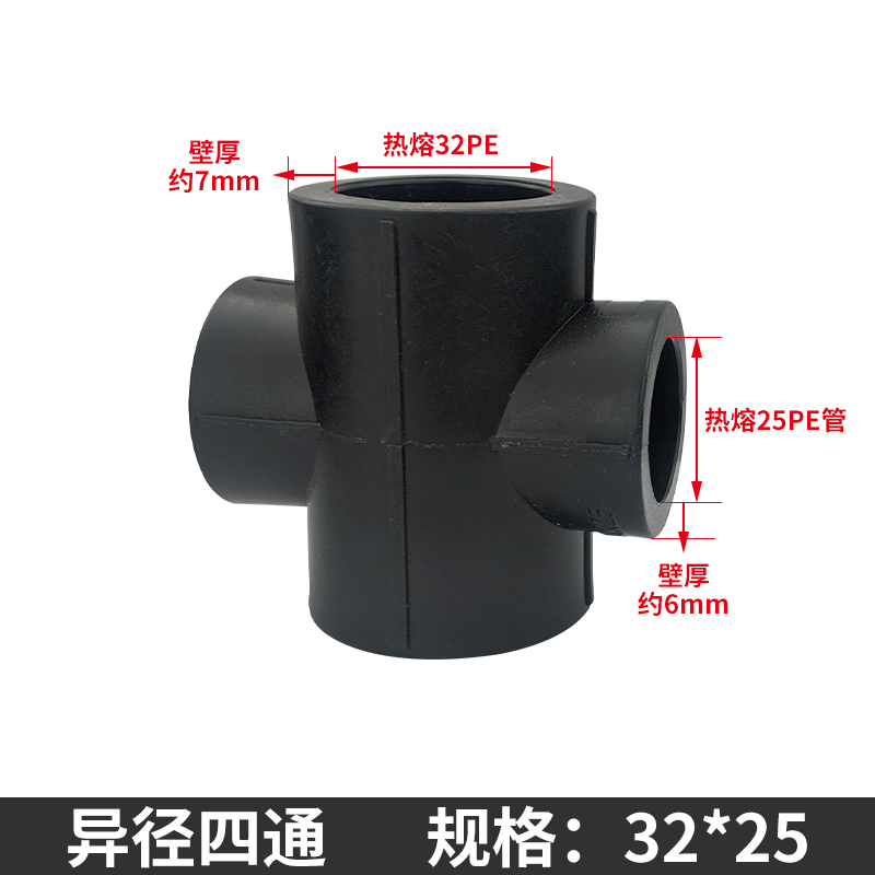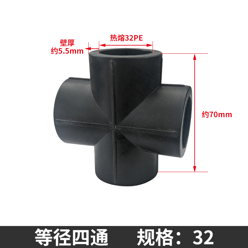 블랙 튜브 PE 가변 직경 4방향 가변 직경 조인트 20/25/32/50/63 ~ 4포인트 6포인트 1인치 4방향 핫멜트 튜브 헤드스토어 가기