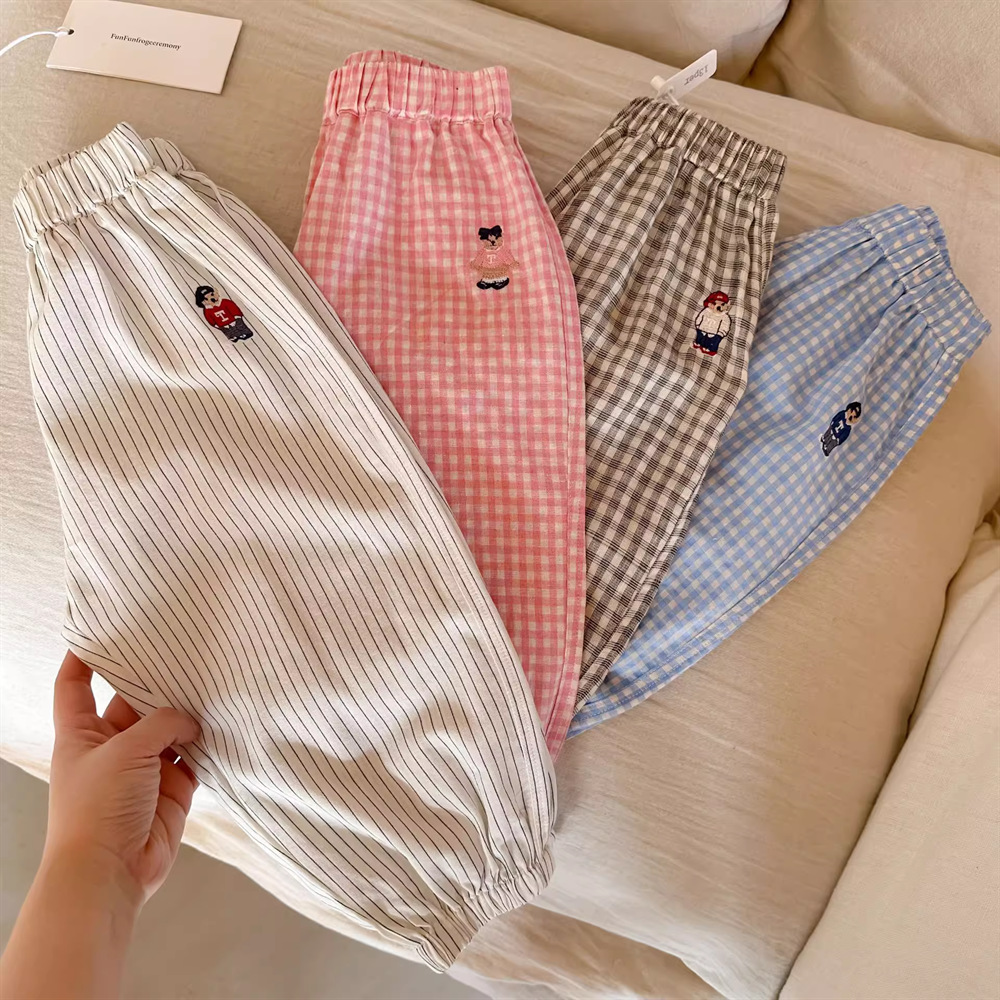 어린이 모기 방지 바지 2025 소년 소녀를위한 여름 격자 무늬 바지 얇은 세련된 다리 발가락 패션 캐주얼 바지 도매