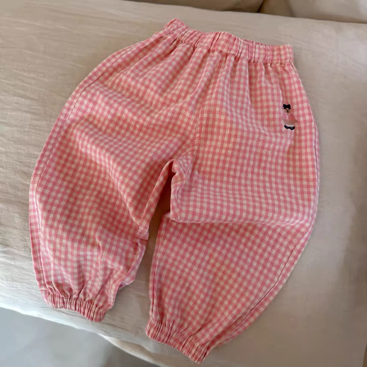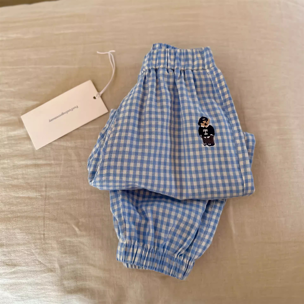 어린이 모기 방지 바지 2025 소년 소녀를위한 여름 격자 무늬 바지 얇은 세련된 다리 발가락 패션 캐주얼 바지 도매스토어 가기