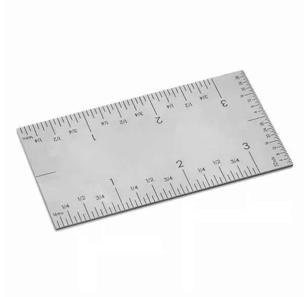 正面蚀刻英制测量值,背面有分数/小数/公制换算表