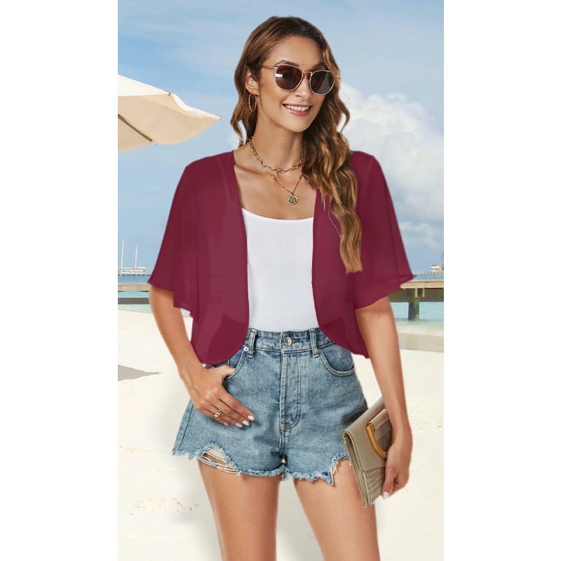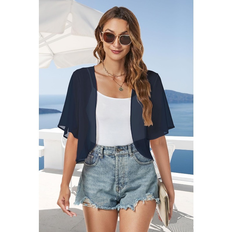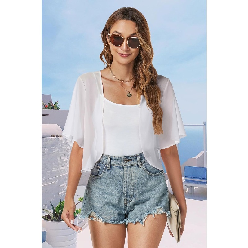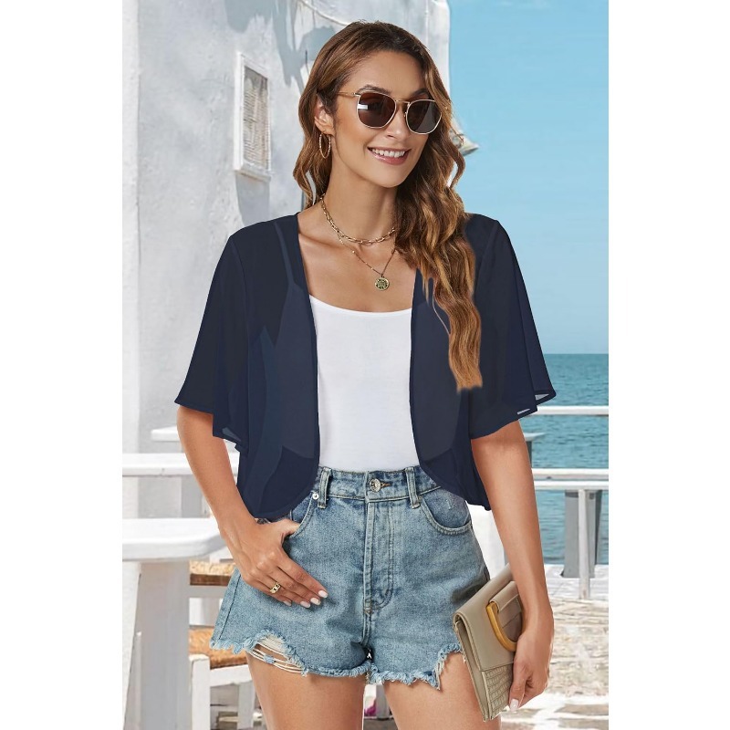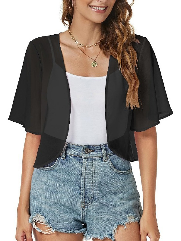 유럽과 미국의 크로스보더 여름 얇은 쉬폰 셔츠 단층 반팔 카디건 탑 코트 서스펜더 드레스 여성용 양복 조끼
