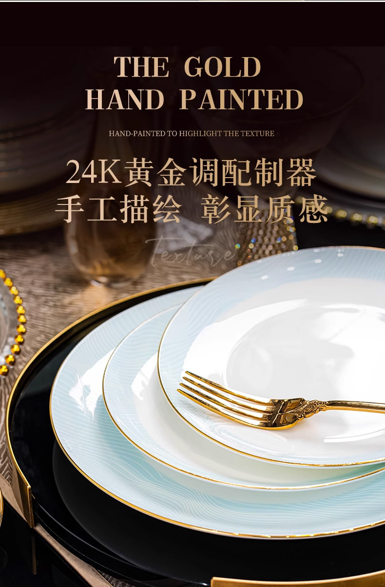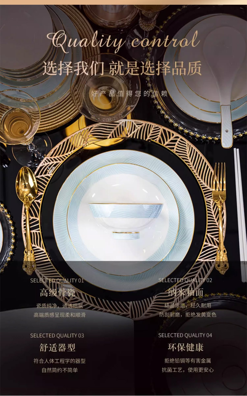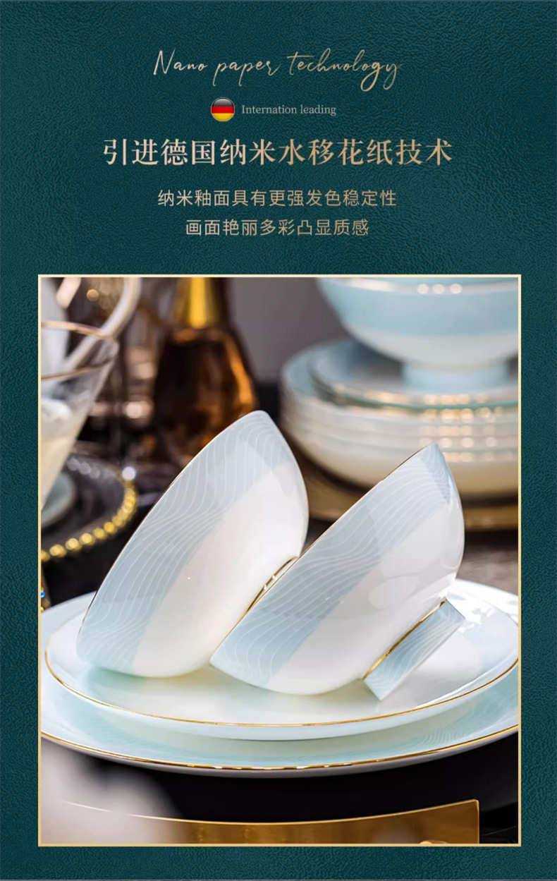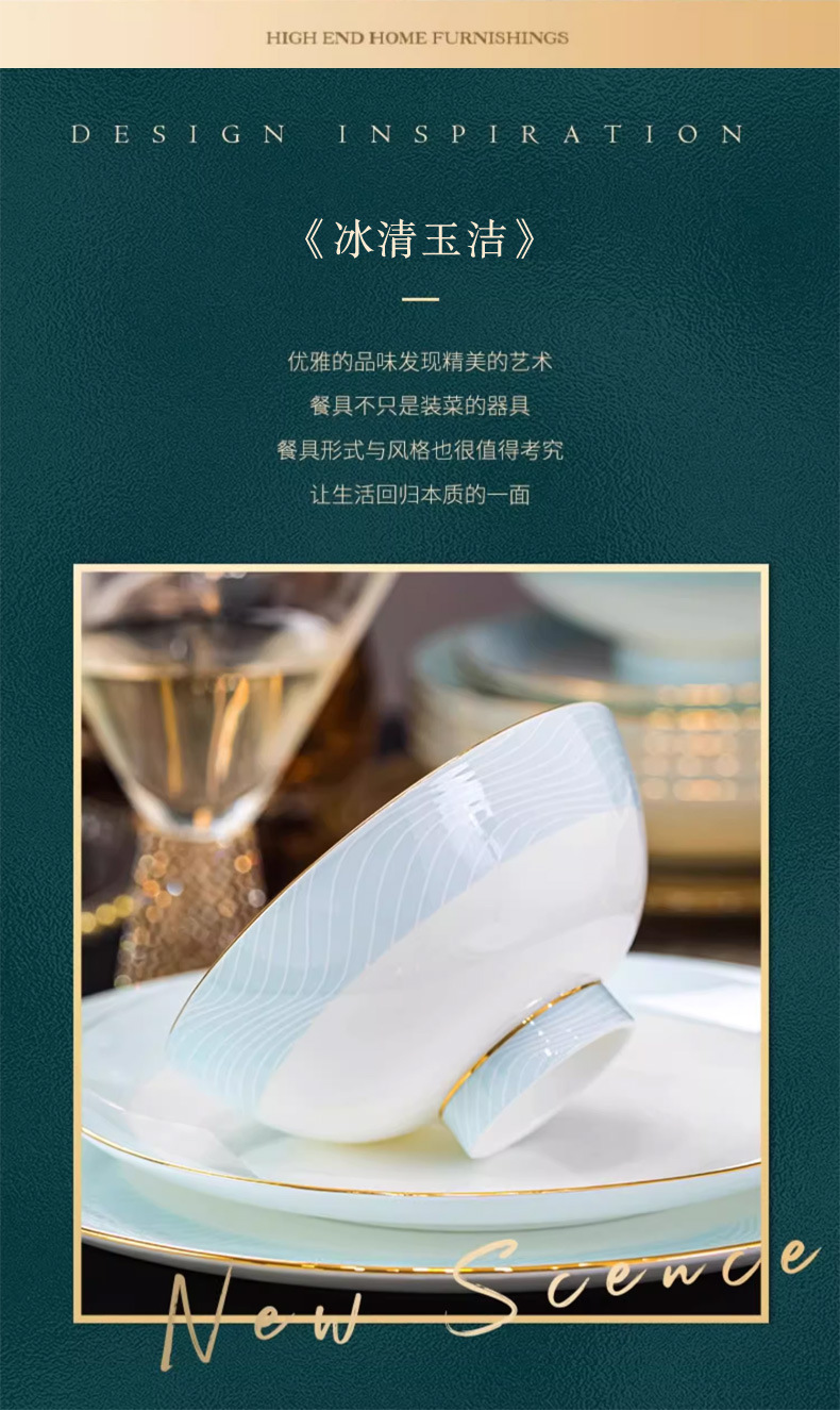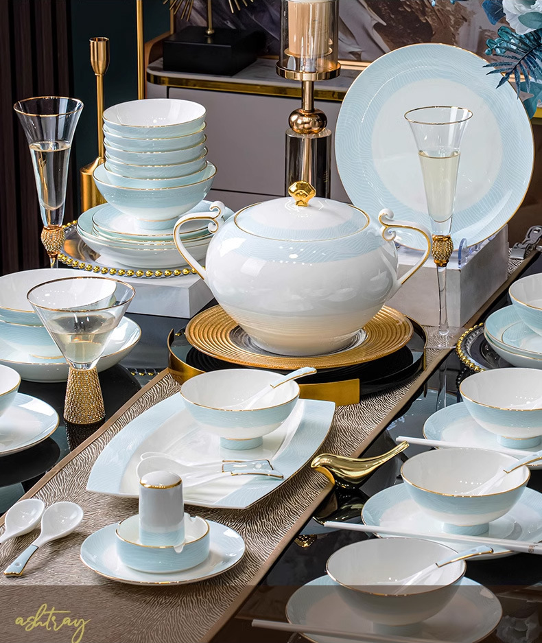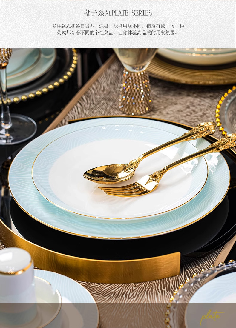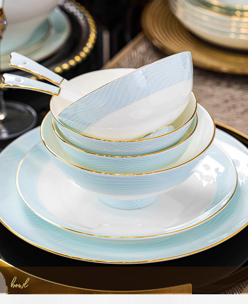 Jingdezhen 세라믹 식기 얼음 맑고 옥 깨끗한 꿈 블루 하이 컬러 값 라이트 럭셔리 뉴 본 중국 그릇 및 접시 세트 선물