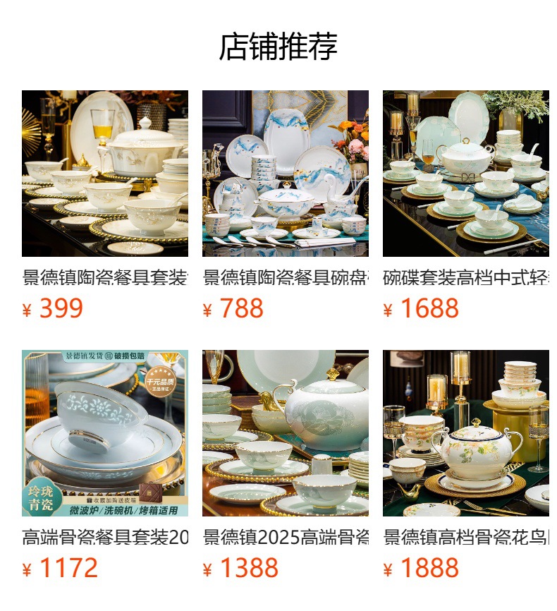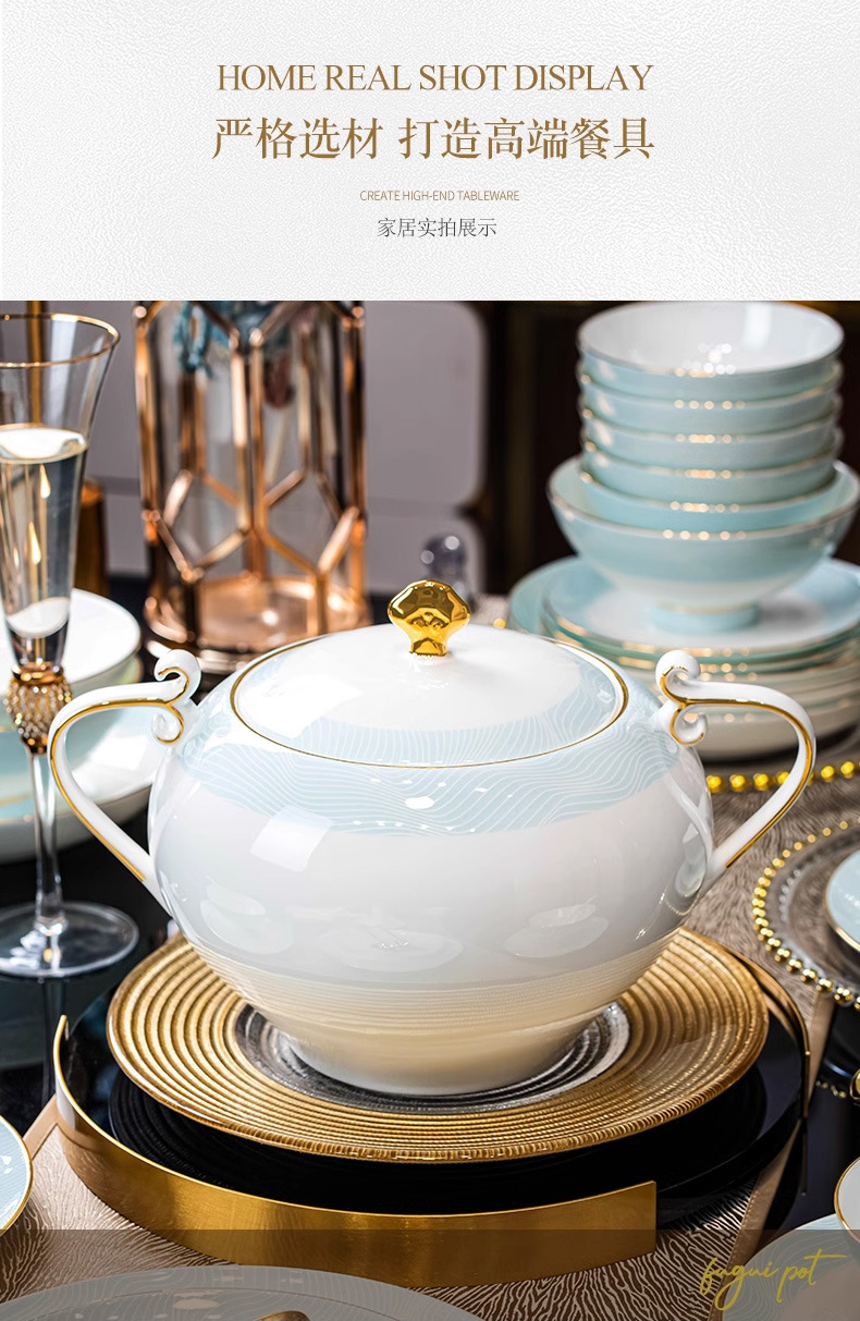 Jingdezhen 세라믹 식기 얼음 맑고 옥 깨끗한 꿈 블루 하이 컬러 값 라이트 럭셔리 뉴 본 중국 그릇 및 접시 세트 선물스토어 가기