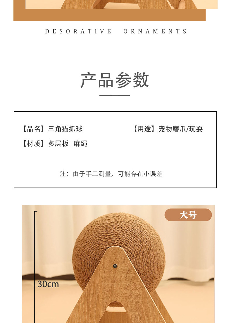 나무 고양이 스크래치 보드 고양이 스크래치 공 장난감 연삭 발톱 손으로 감싼 사이 잘 로프 고양이 등반 프레임 내구성 내마모성 애완 동물 용품 도매