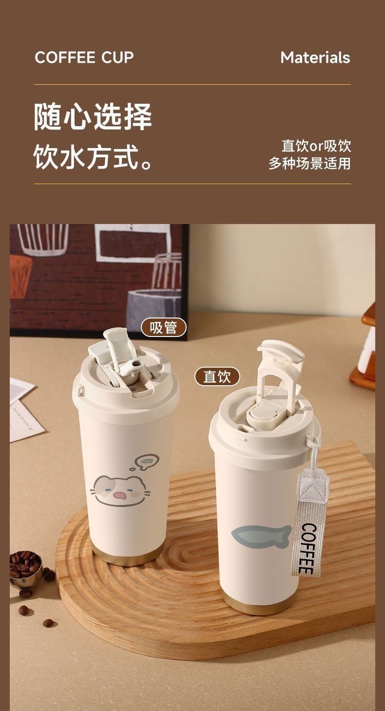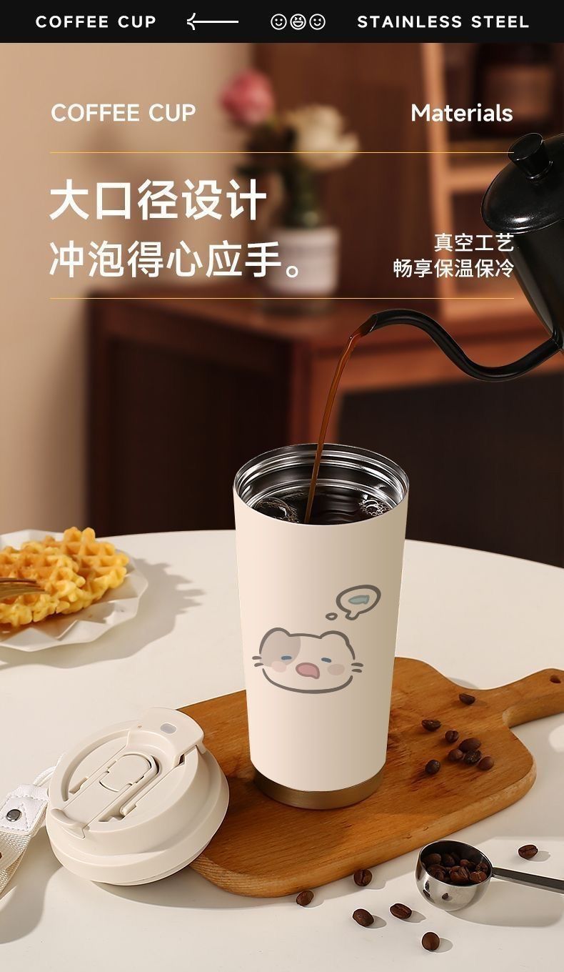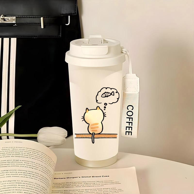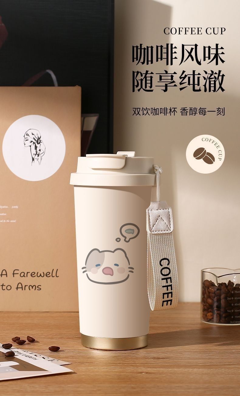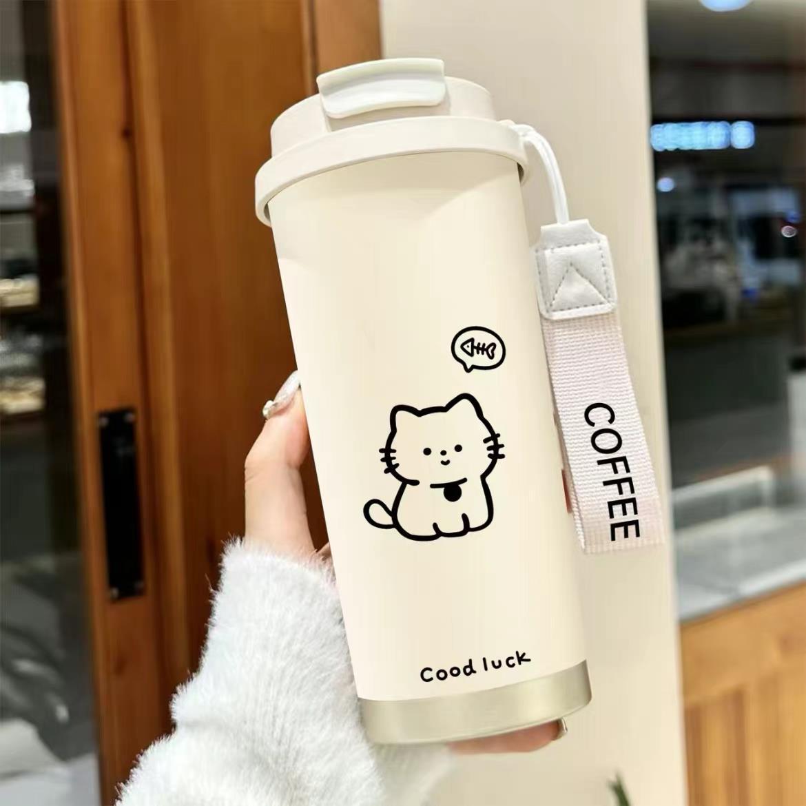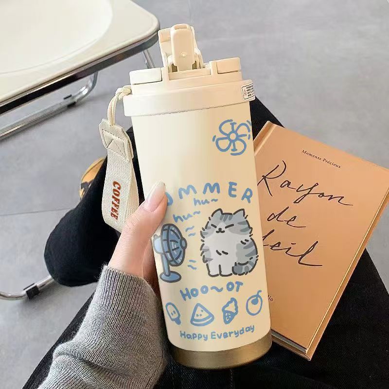 남학생과 여학생 학교 컵 만화 보온병 컵 더블 마시는 컵 마시는 컵 대용량 졸린 새끼 고양이 스포츠 휴대용스토어 가기