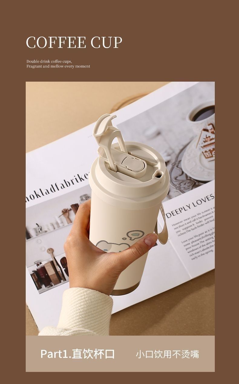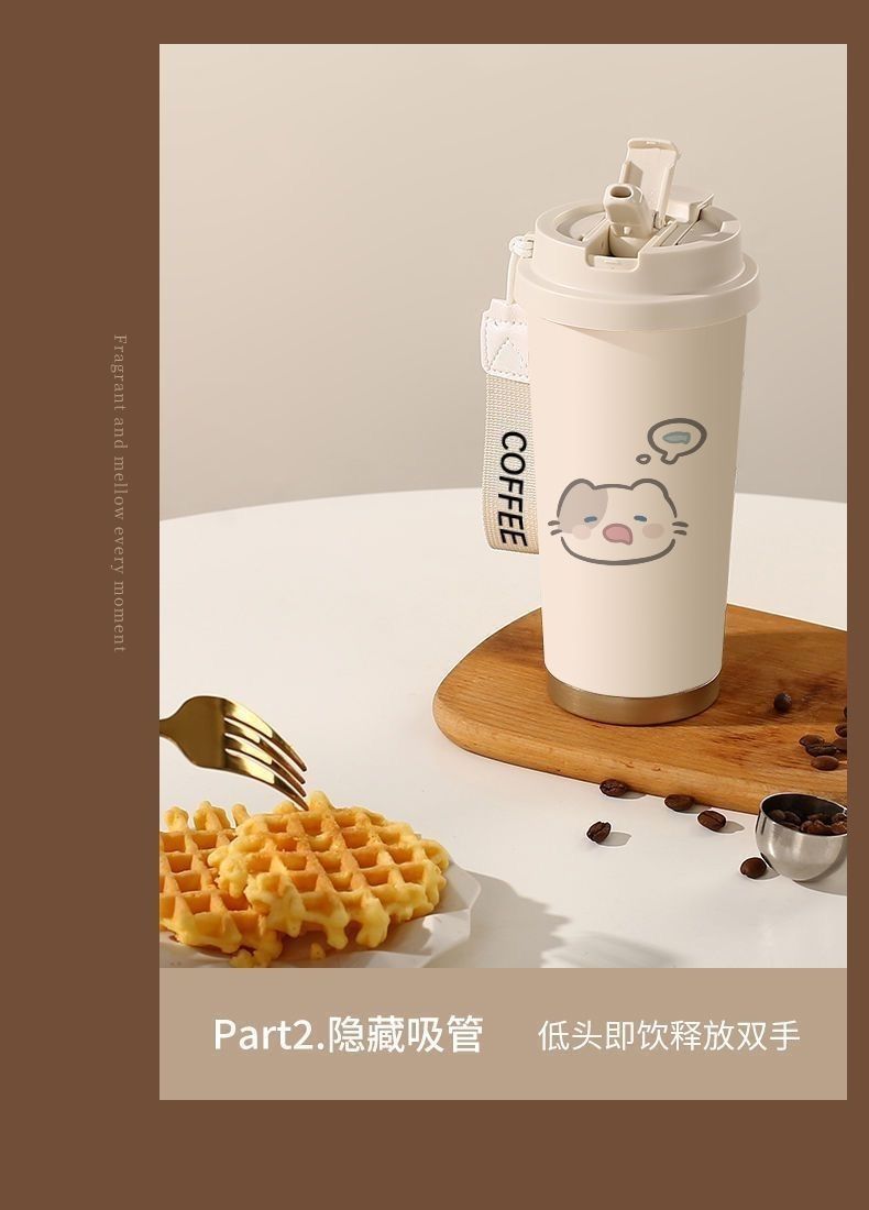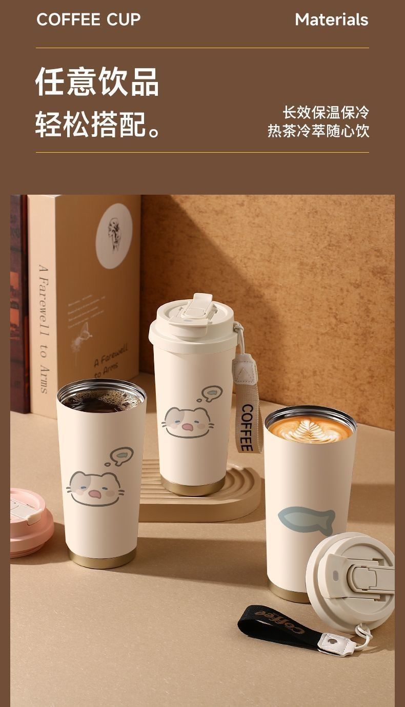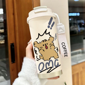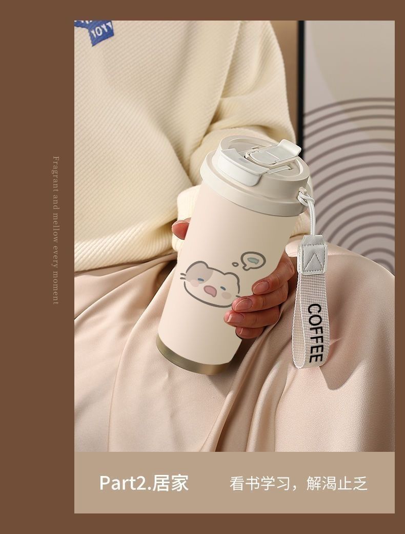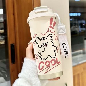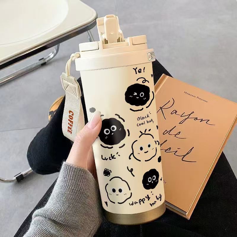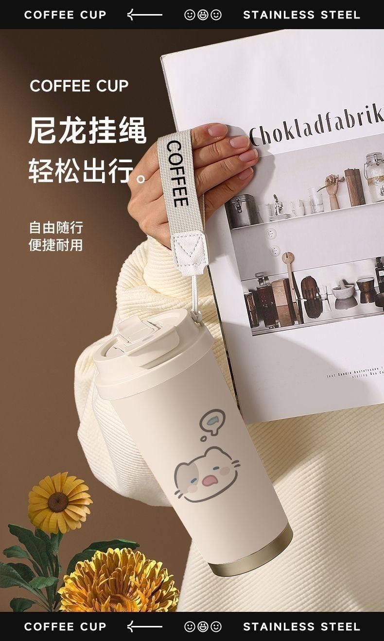 남학생과 여학생 학교 컵 만화 보온병 컵 더블 마시는 컵 마시는 컵 대용량 졸린 새끼 고양이 스포츠 휴대용스토어 가기