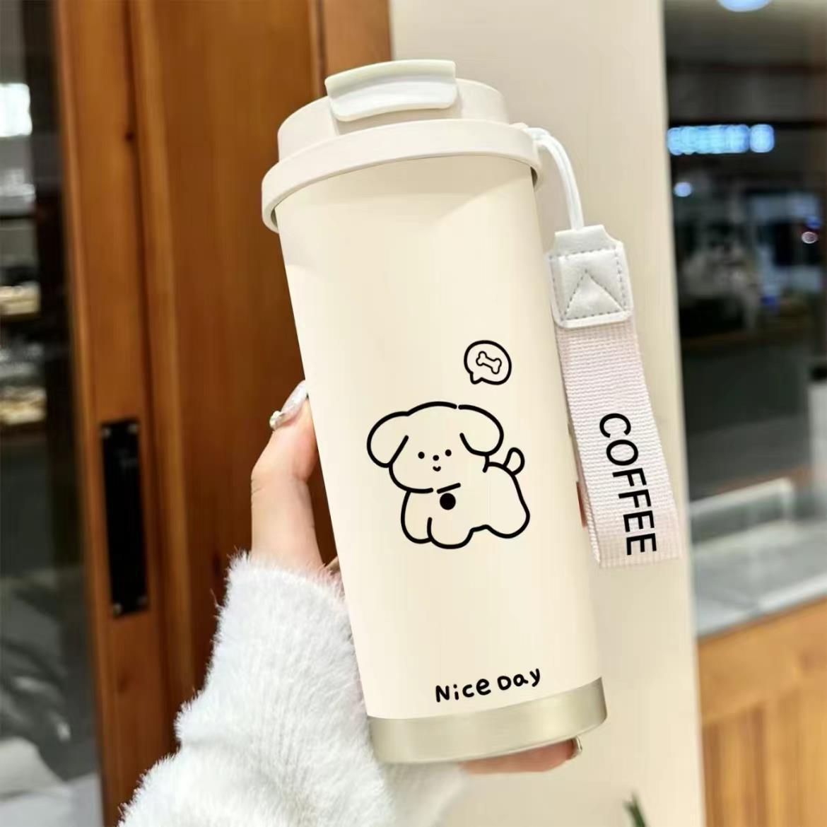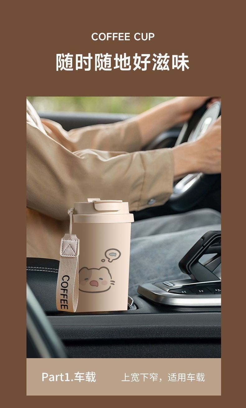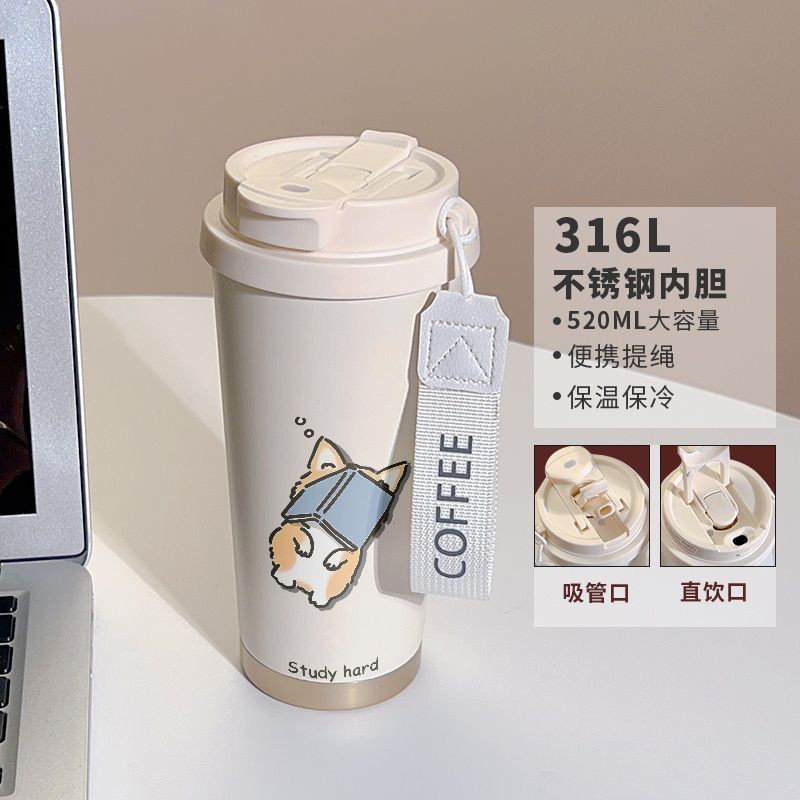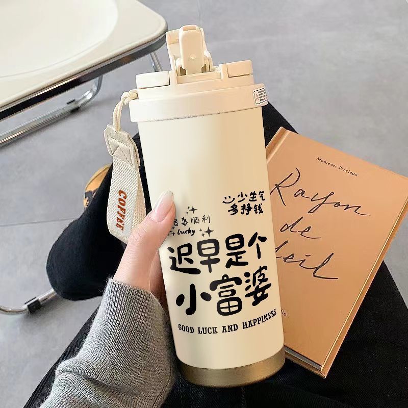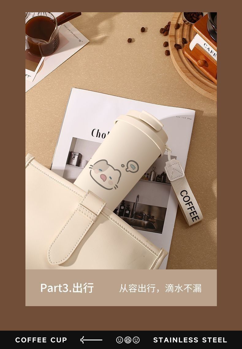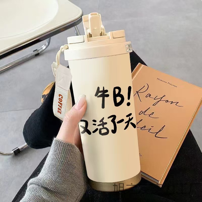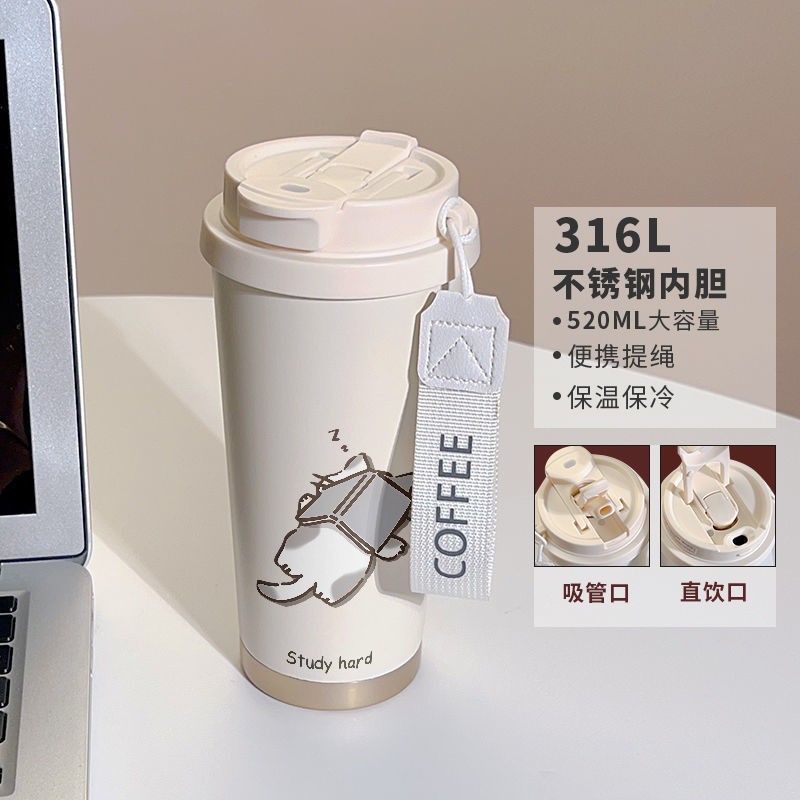 남학생과 여학생 학교 컵 만화 보온병 컵 더블 마시는 컵 마시는 컵 대용량 졸린 새끼 고양이 스포츠 휴대용스토어 가기
