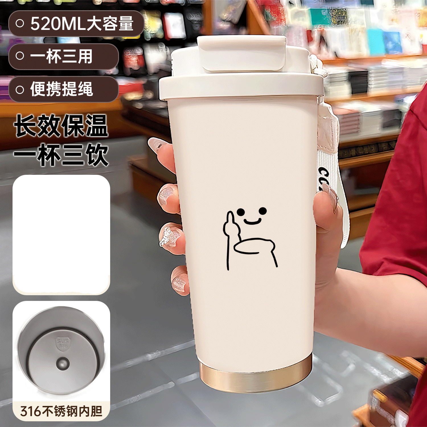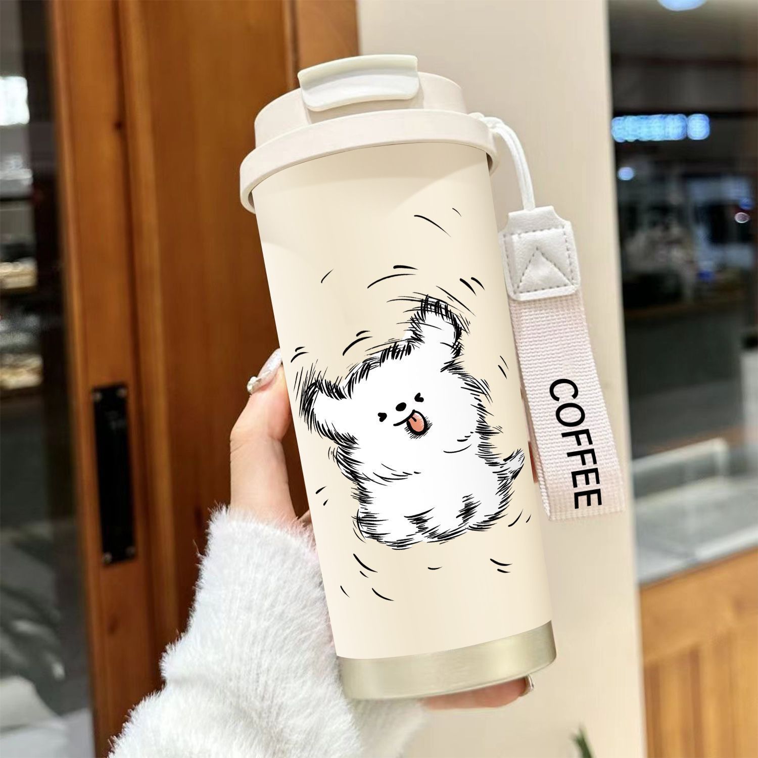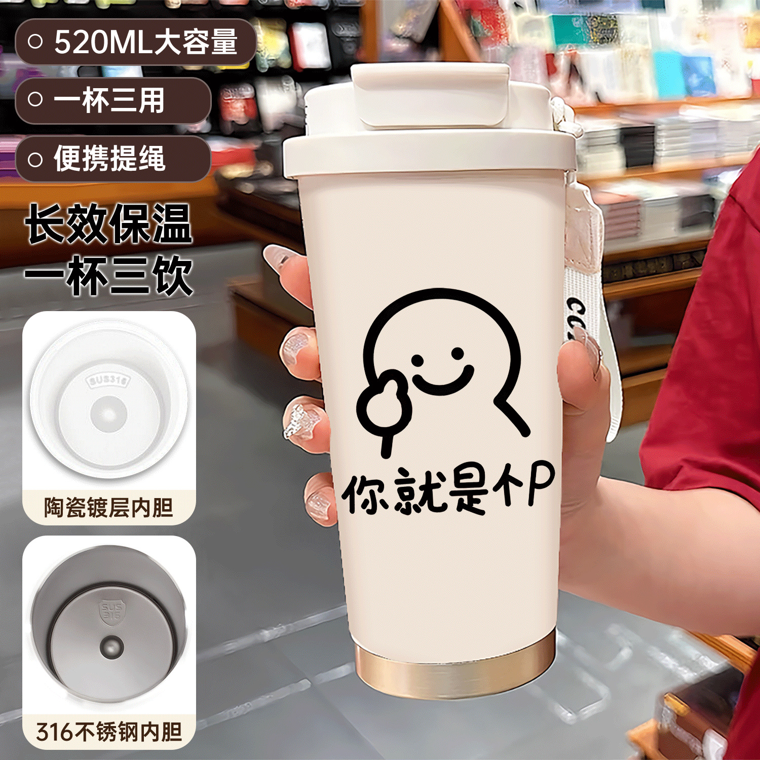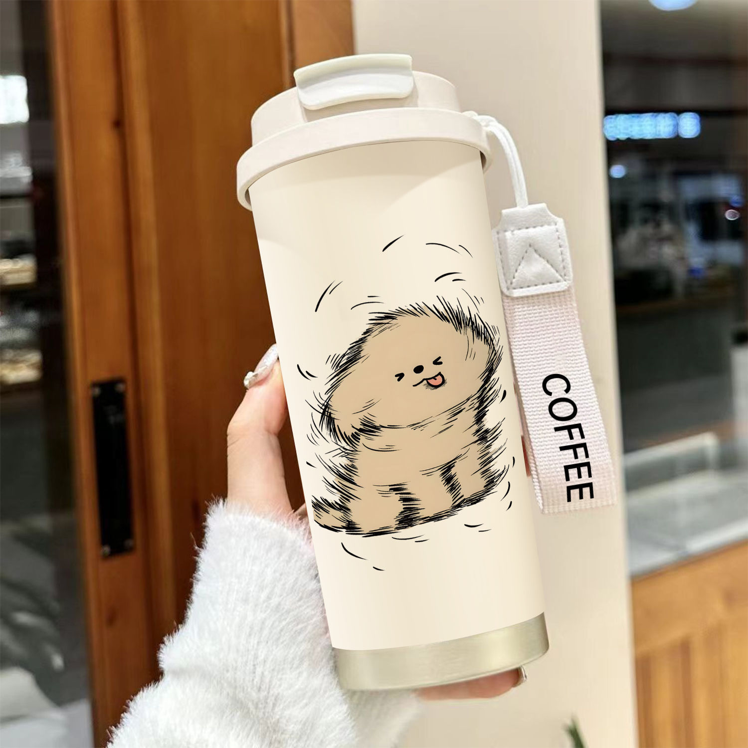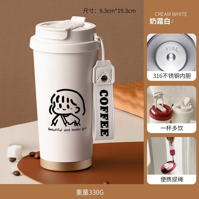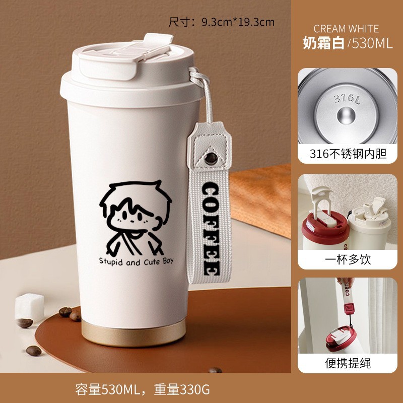 남학생과 여학생 학교 컵 만화 보온병 컵 더블 마시는 컵 마시는 컵 대용량 졸린 새끼 고양이 스포츠 휴대용스토어 가기