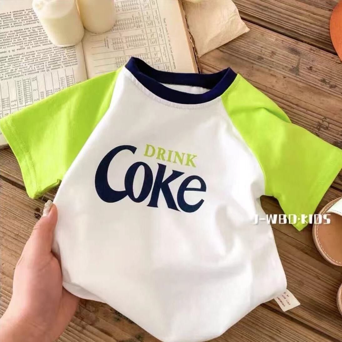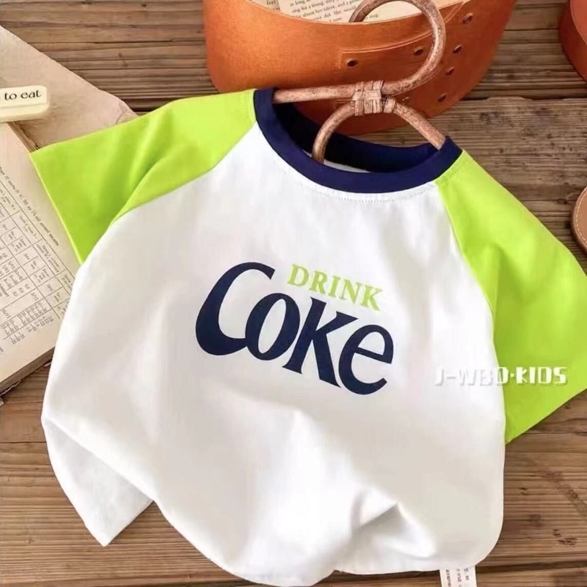 여름 남녀 아동복 반팔 티셔츠, 유아용 패셔너블한 아동 맞춤형 트렌디 브랜드 패셔너블한 컬러 블록 문자 순면 반팔