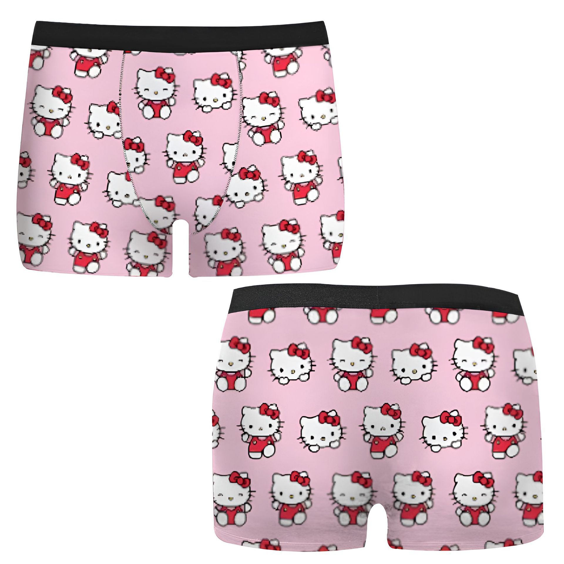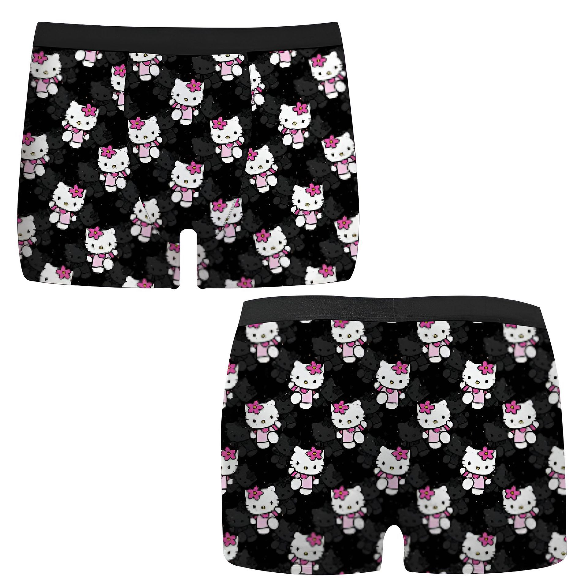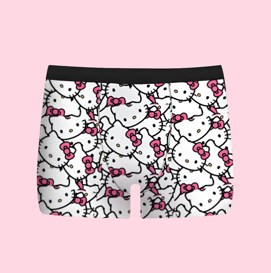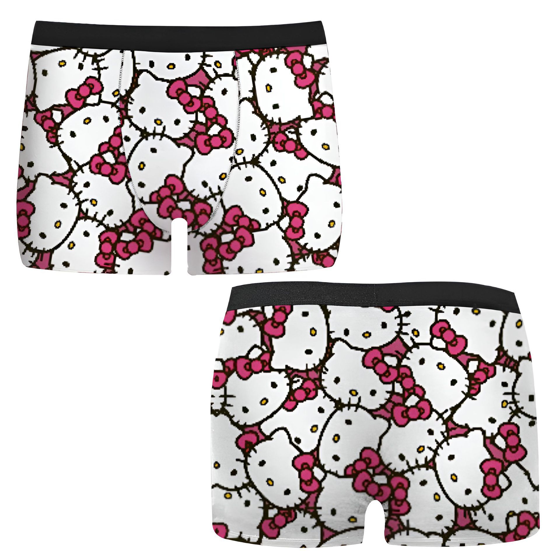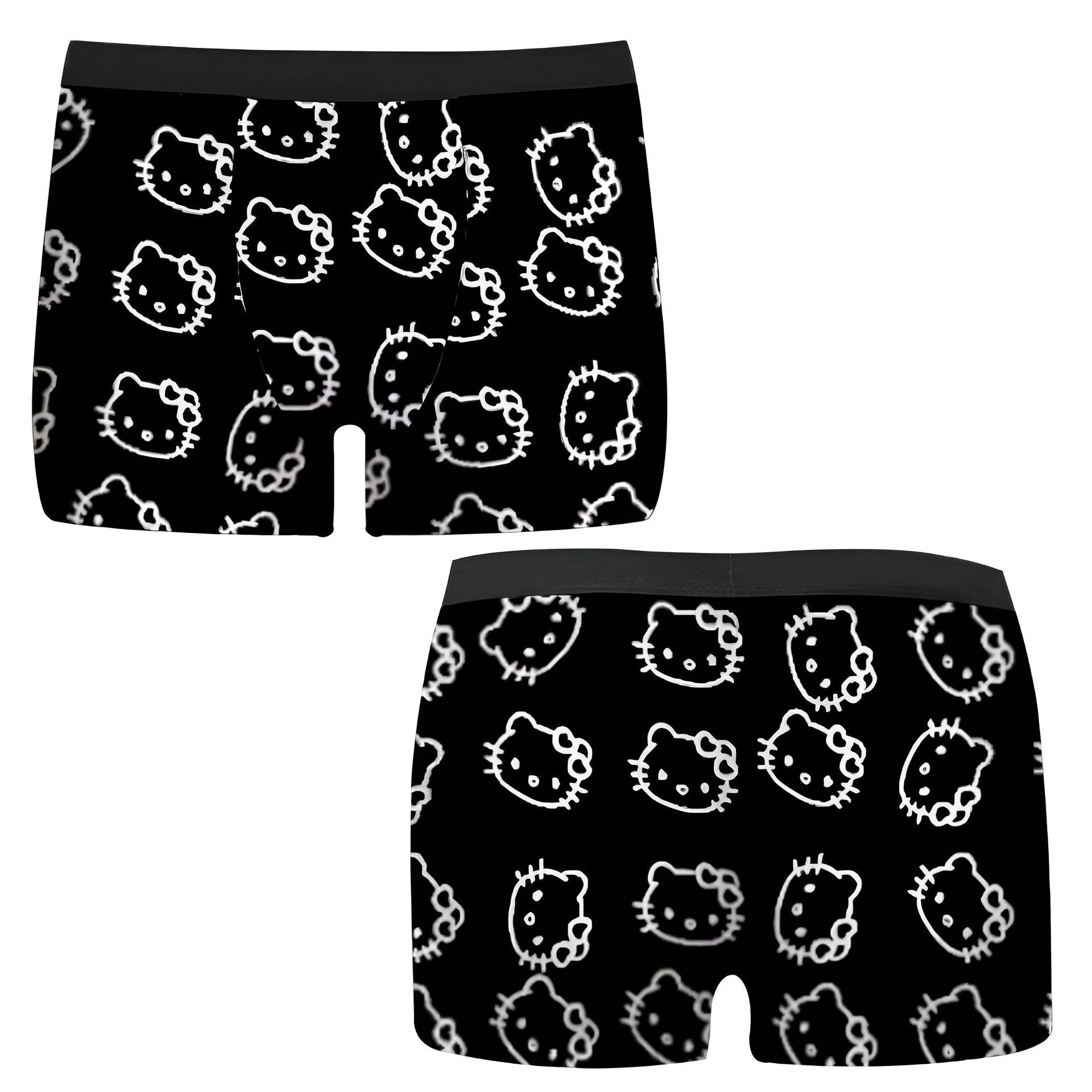 도매 우유 실크 남자의 복서 팬티 헬로 키티 고양이 귀여운 3D 인쇄 중간 허리 남자 복서 팬티스토어 가기
